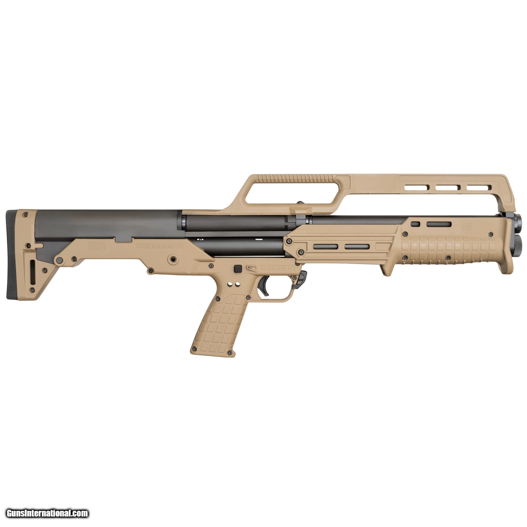 Description: Kel-Tec KS7 pump action 12 gauge shotgun 18.5" bbl TAN NEW #KS7TAN Home Defense Shotgun!! The KS7 is designed for many applications, but it lends itself perfectly to home defense, back country hiking or anywhere you need a compact 12ga shotgun. Its intuitive, simple features, optional Picatinny-style rail and M-LOK accessory mounting solutions make it very versatile. Comes with Top Carry Handle and fixed Cylinder Bore Choke.