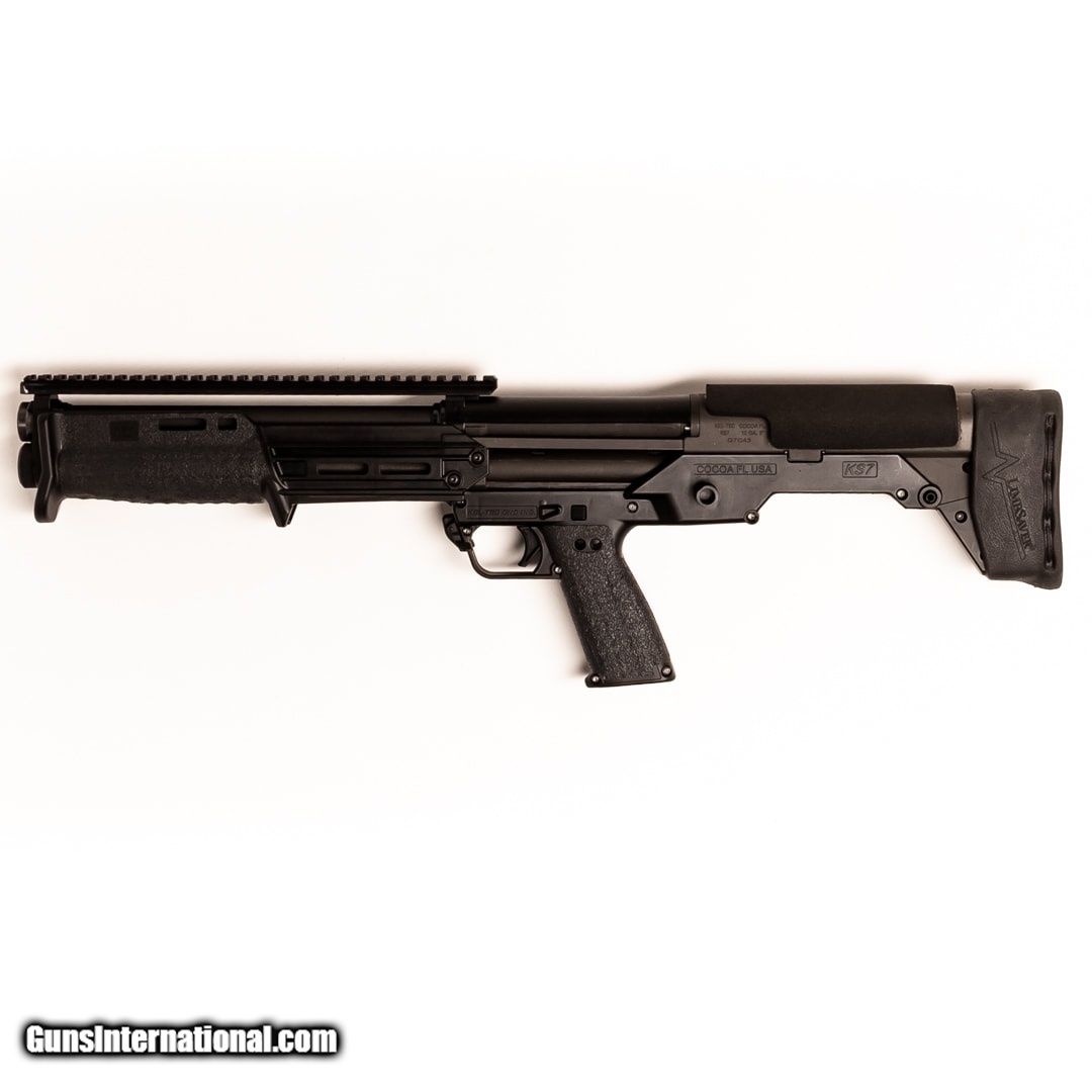Description: Guns Listing ID: 553905 The Kel-Tec KS7 is a 6+1 variant of the iconic KSG. It features a lightweight and compact bullpup design that handles exceptionally well. This shotgun was designed to be an affordable yet cutting-edge option for home defense. This 12-gauge model has a 3\" chamber, cylinder choke, Limbsaver buttstock pad, cheek pad, pistol grip, vertical forend grip, carry handle with 1-2\" side rail, fiber optic sight, 12.2\" top Picatinny rail, QD sling attachment point, and a shell carrier. The original box and owner‚‚s manual are included. SOLD Manufacturer: KEL-TEC Model: KS7 Condition: Used - Certified Barrels: 18.5 BARREL Gauge Info: 12 GA Finish: BLACK |
