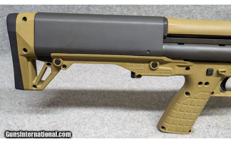 Description: This Kel-Tec KSG shotgun is in overall excellent condition, having been used very little, if at all. Original factory box included. 12 Gauge SOLD Chambers: "12 Gauge, 3"" Chamber Metal Condition: Excellent Bore Condition: Excellent Barrels: 18" Barrel Fore End: Magpul Hand Stop on Pump Butt Pad: Rubber Pad Sights: Optics Rail Chokes: Cylinder Bore Item Location: Greenville, SC |