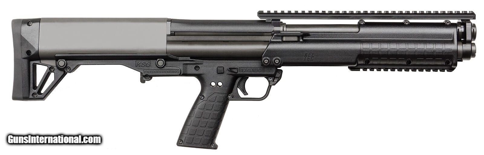 Description: NEW IN STOCK Kel-Tec KSG, Pump Action Shotgun, 12 Gauge, 3" Chamber, 18.5" Barrel, Black Finish, Synthetic Stock, Tactical Handguard with Rails, 7+7 Rounds KSGBLK