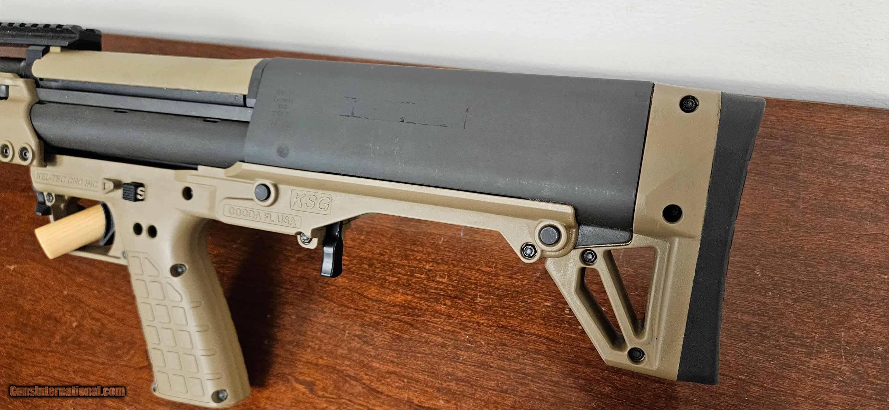 Description: Up for sale is a tan Kel-Tec KSG chambered for 3" 12 gauge shot-shells. Internet sales are managed 10am to 6pm MST M-F. Our inventory listed for sale is not live, meaning just because you click “BUY NOW” doesn’t mean you have purchased the firearm. We consider a sale final once we have received payment. All our listings are also available for sale in our retail store. Shipping starts at $75 for long guns and $50 for handguns We ship to the contiguous United States and Alaska, with some state law restrictions. SOLD Shotgun Gauge: 12 Gauge Manufacturer: Kel-Tec Model: KSG Barrel Length: 18.5 Item Location: Lakewood, CO |
