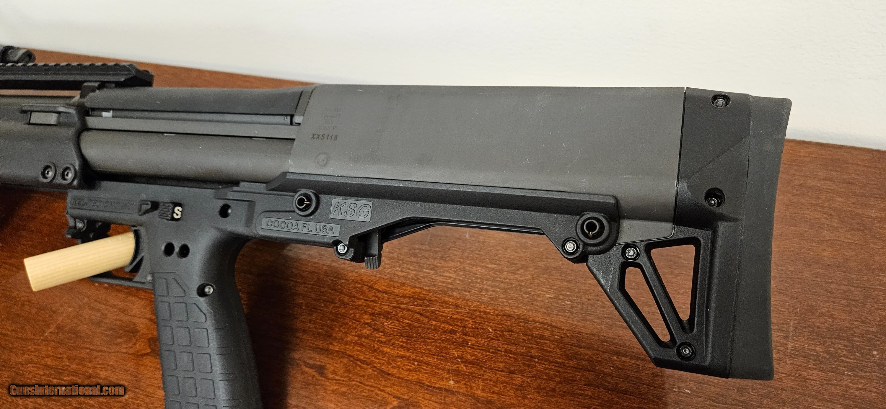 Description: Up for sale is a Kel-Tec KSG 12-gauge shotgun. This shotgun has a Streamlight Pro-Tac flashlight with the pressure pad installed, along with a Firefield red dot sight. Internet sales are managed 10am to 6pm MST M-F. Our inventory listed for sale is not live, meaning just because you click “BUY NOW” doesn’t mean you have purchased the firearm. We consider a sale final once we have received payment. All our listings are also available for sale in our retail store. Shipping starts at $75 for long guns and $50 for handguns We ship to the contiguous United States and Alaska, with some state law restrictions. SOLD Shotgun Gauge: 12 Gauge Manufacturer: Kel-Tec Model: KSG Item Location: Lakewood, Co |