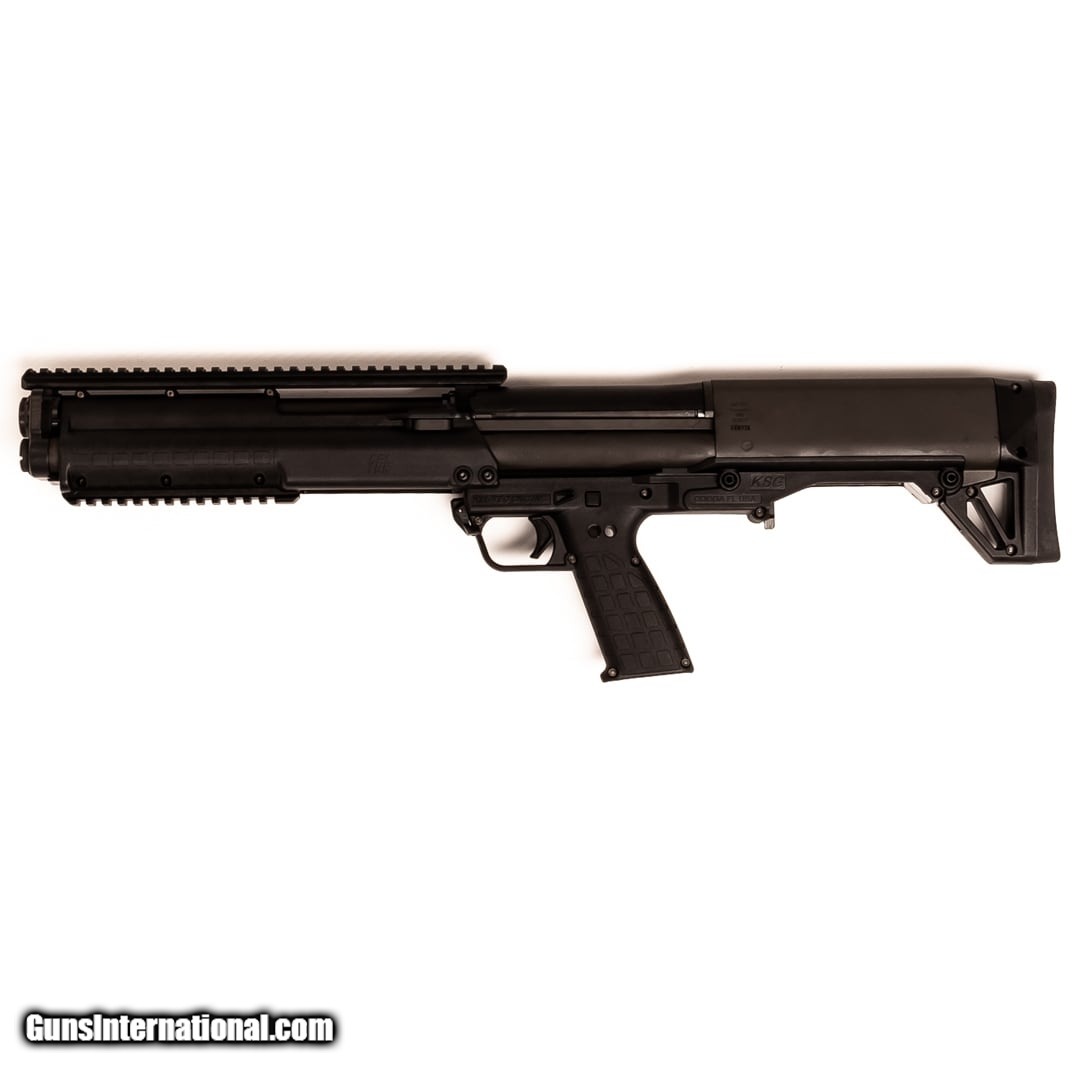 Description: Guns Listing ID: 641133 This Kel-Tec KSG is a bullpup pump-action shotgun with two magazine tubes capable of holding a ridiculously large capacity. It is, by far, one of the most compact self-defense shotguns on the market. This 12-gauge KSG has a 3\" chamber and a 30\" barrel. The owner‚‚s manual is included. Get the best bang for your buck when you get a Certified Used Firearm . When you see the Certified Used stamp on any of our firearms, you can be confident that you’re getting exactly what you want – a gun only in very good to excellent condition and held to the highest quality standard. All Certified Used Guns come with a ‘no questions asked’ return policy . PLUS, ALL CERTIFIED USED GUNS SHIP FREE SOLD Manufacturer: KEL-TEC Model: KSG Condition: Used - Certified Barrels: 18.5 barrel Gauge Info: 12 GAUGE Finish: BLACK |