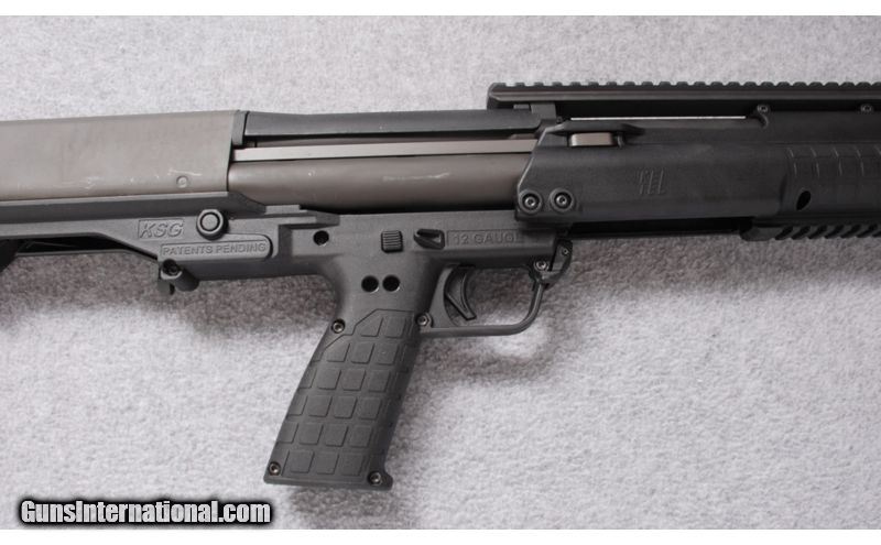 Description: The KSG is no ordinary tactical shotgun. Its dual tube magazines hold a dozen 3 inch, 12 gauge shells (plus one in the chamber), with the flexibility of switching between various projectiles. A patented downward ejection system makes it truly ambidextrous, while its 26.1 inch overall length, 18.5 inch cylinder bore barrel and 6.9lbs of weight make it is as compact as legally possible. SOLD Caliber Info: 12 Gauge Metal Condition: Minor handling marks Bore Condition: Bright Barrels: 18 1/2 Triggers: 5 Lb. Stock: Synthetic Weight: 6 Lbs. 14 Oz. Sights: Top and bottom slotted rails Extras: Box,papers Item Location: Billings, MT |