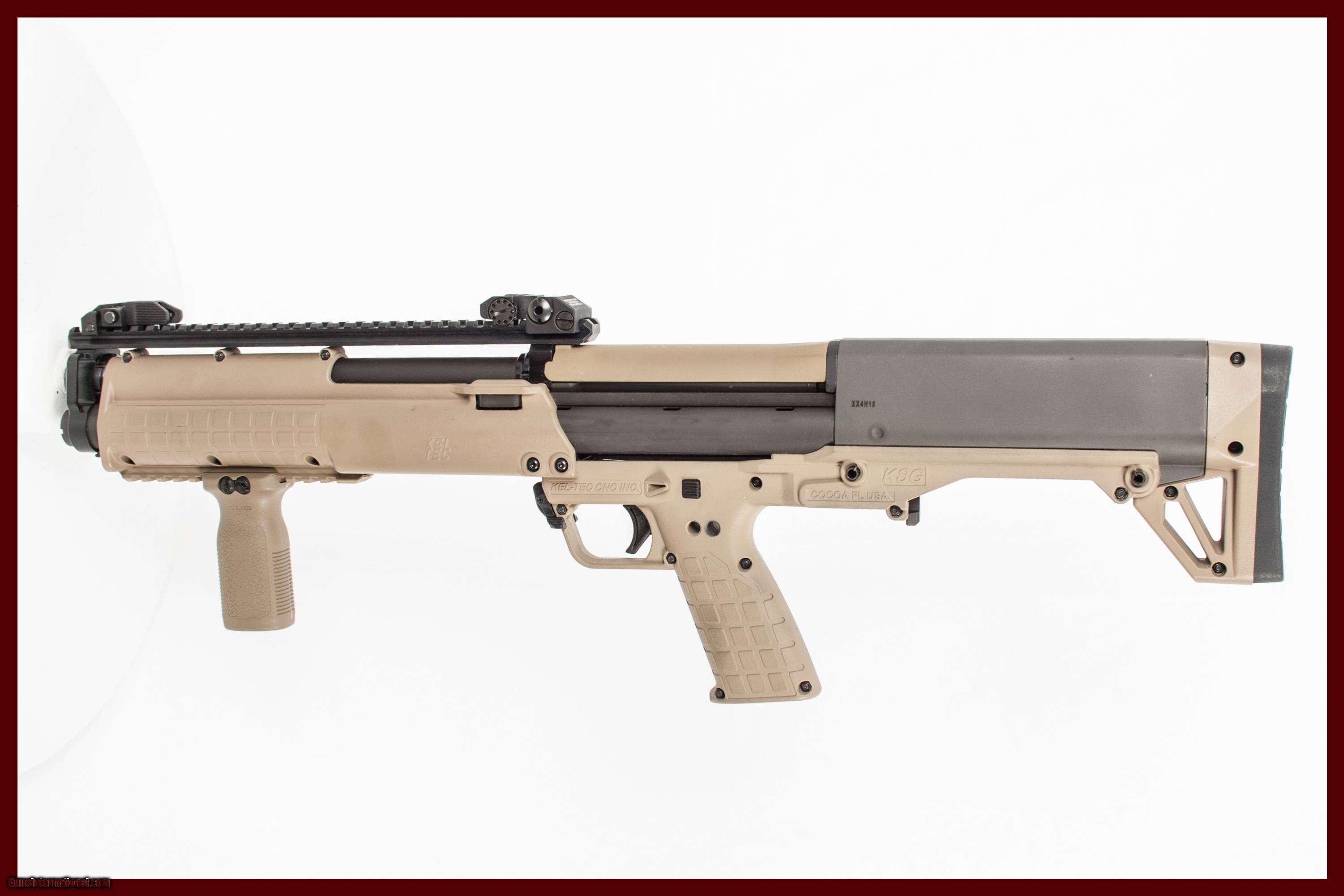KELTEC KSG CHAMBERED IN 12GA WITH A 18.5 INCH BARREL COMES WITH BOX. THIS GUN IS IN EXCELLENT CONDITION AND IS COVERED BY DURY'S LIFETIME WARRANTY.