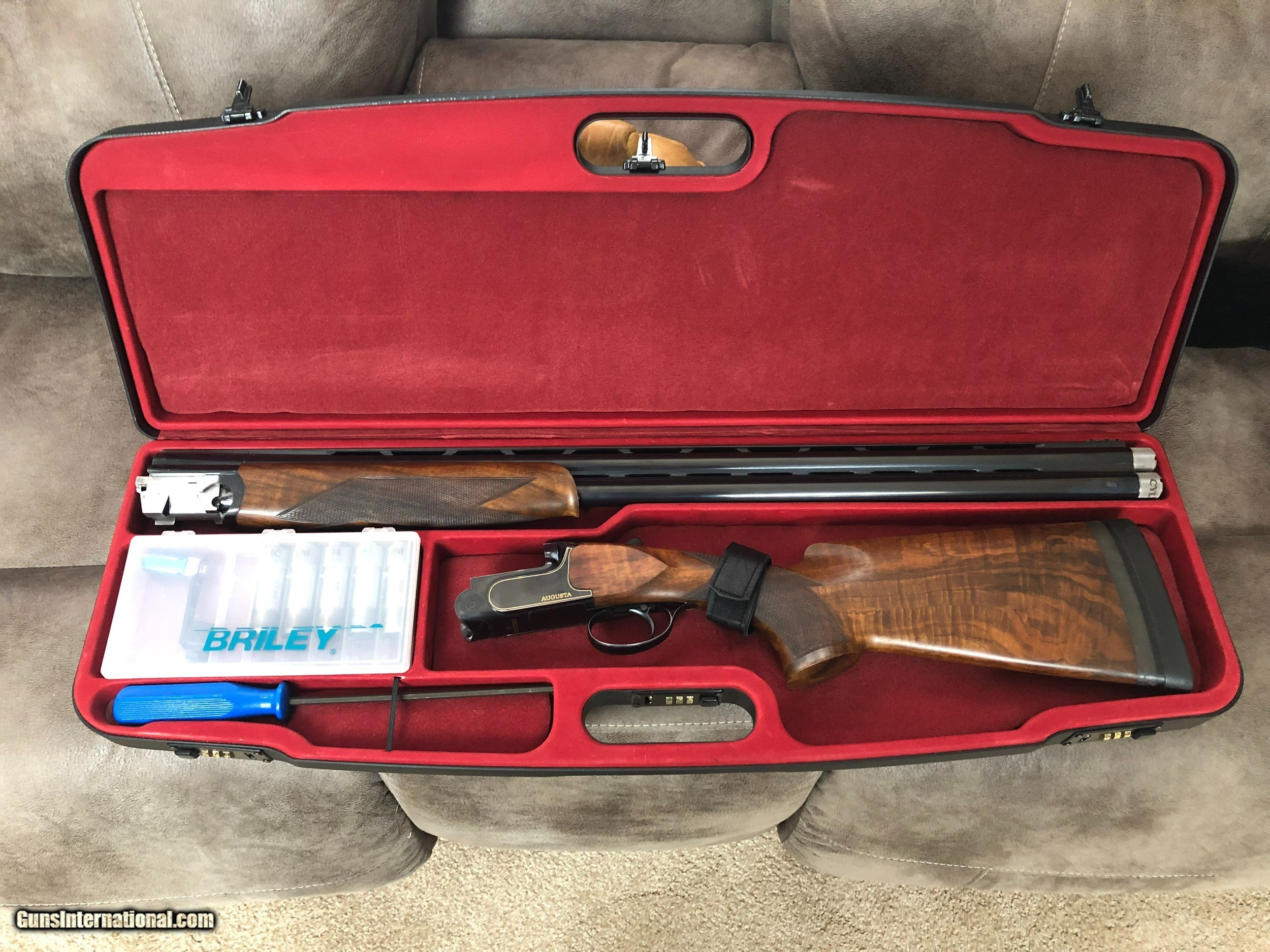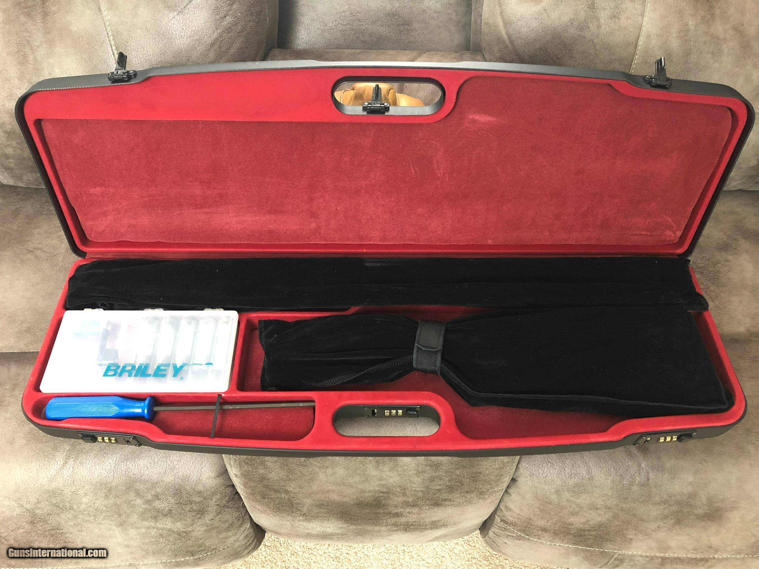 Description: Reduced! For sale Kimber Augusta Sporting O/U shotgun, 12 gauge 30" ported barrels (looks like briley porting) with VR backbored to .736", 3" chamber, 7 briley chokes (marked kimber) cyl, skeet, IC, LM, 2 each mod, & IM. Choke wrench, long allen wrench for butt stock bolt, kimber hard case & black velvet stock and barrel covers, schnable forend, kickeez recoil pad ( has small tear at top of pad (see pic), Sliding adjustable trigger, has button on side of trigger to move trigger to 4 different lengths, make LOP adjustable from 14.75 to 15.25, butt stock has spacer that adds to LOP, can be removed for shorter LOP, fiber optic front sight. boxlock action, barrel select on safety, ejectors. No nicks, scratches or gouges in the wood. metal has a coupld small spot on barrel, receiver has a little wear (see pics). Sell for $2,250. Would also be interested in trading for Cooper and Kimber small caliber varmint rifles or Rimfires. Also interested in Benelli M2 24" or 26" barrels, browning cynergy field O/U, browning feather 0/U, or Benelli 828u. SOLD Shotgun Gauge: 12 Gauge Manufacturer: Kimber Model: Augusta Sporting Chambers: 2 3/4" & 3 Condition: Good to Very good Metal Condition: Good to Very good Wood Condition: Very good to excellent |
