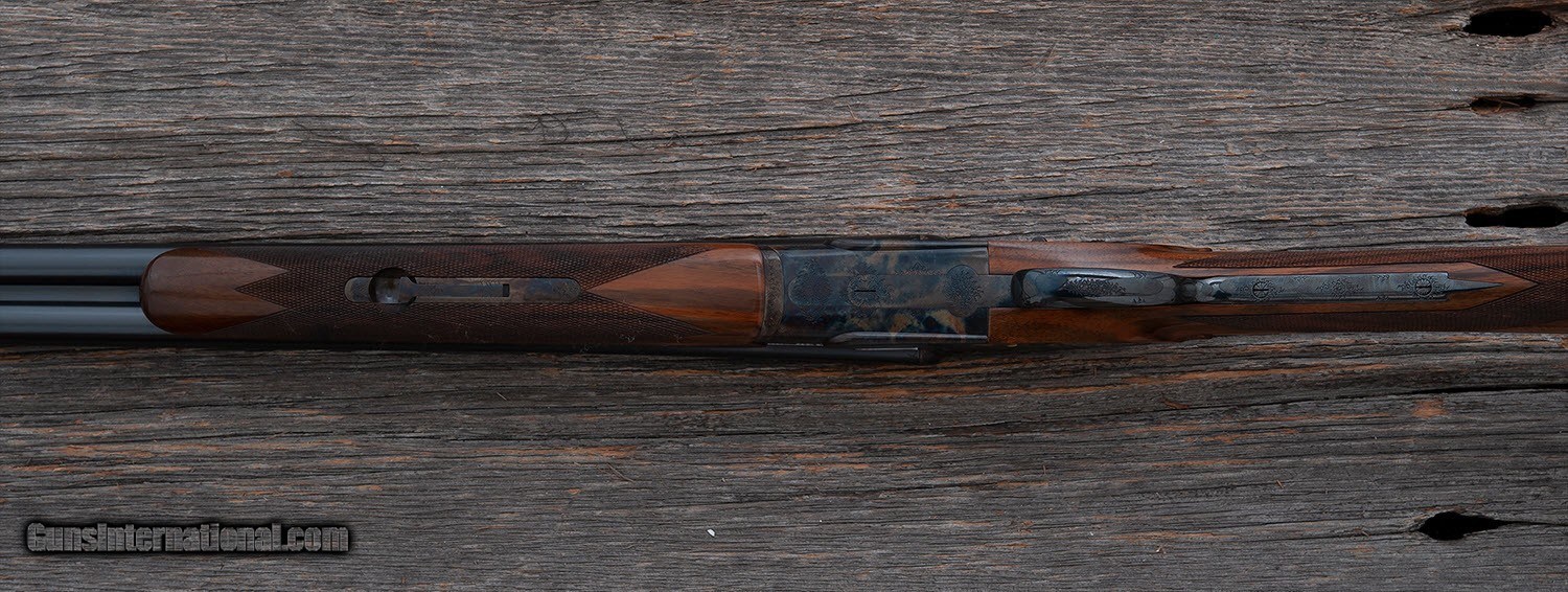 Description: Kimber - Grade 3 - 20 ga - Item Number: KIM06SLE121 Shotgun type: SxS Action: Sidelock Ejectors: Yes Trigger: Double Grip: Straight Grip Forend: Checkered Lop: 14 7/8 " Type of butt: Checkered Wood Drop comb: 1 1/2 " Drop heel: 2 1/4 " Cast amount: 0 " Weight: 6 lbs, 12 oz Manufactured in: Turkey Manufacture Year:Finish: Case Colored Overall condition: As New Stock condition: As New Metal condition: As New Stock: Original finish Metal: Original finish Type of Case: Maker's Hard Case Extra barrels: 0 Barrel info: Gauge: 20 ga Chamber: 3 " Length: 28 " Chokes: IC/M Rib type: File Cut Comments : In like new condition. SG-113 I2 SOLD |