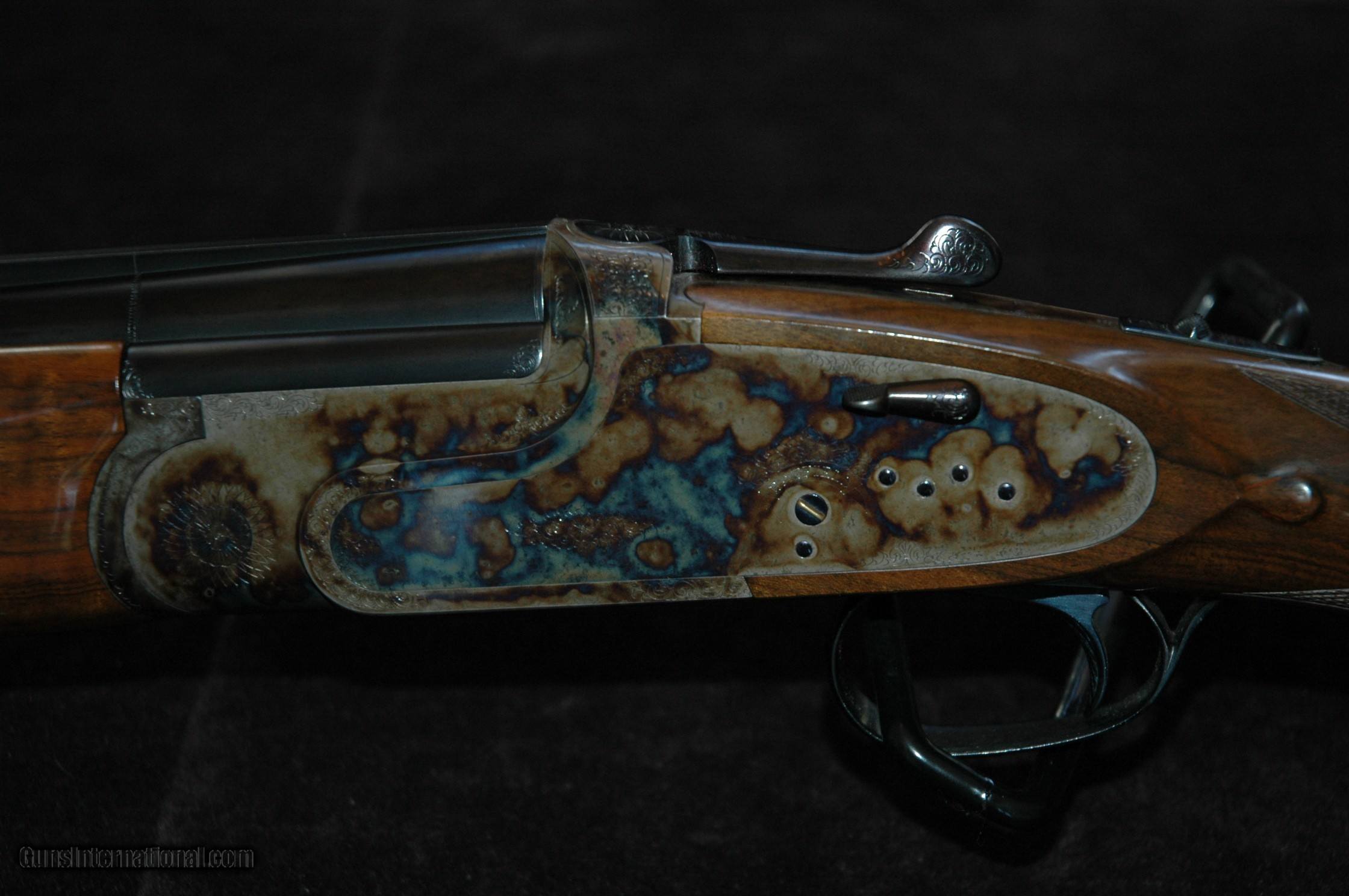 Description: A unique find. Chances like this don't come along often. Kimber imported side by side and over under shotguns in the early 2000's for a few years. They never developed a following like their 1911 and the line was dropped. Anyone that has better knowledge than me, feel free to send me corrections. From what I can find, the Hatfield Maryfair was never imported into the US as Kimber had those rights. However a select few did find their way to the states and this is one of them. The only difference I can find is the word "Hatfield" instead of "Kimber" in the flag on the sidelock and a "minute" difference in the engraving. During the period that Kimber was selling the shotguns, Bud's Gun Shop had the following description: "The Marias over & under is one of the finest shotguns available today. A true hand-detachable back-action sidelock, every feature stands as testament of Kimber's commitment to quality and classic firearm design. At the same time, they are the product of the finest raw materials and computer driven manufacturing. Without embracing this technology, it would be impossible to create such a refined shotgun. Marias receivers wear the warm, vibrant colors of bone charcoal case coloring. Receiver and locks are also engraved by hand in a delicate scroll to a generous fifty percent coverage. This traditional combination is further complemented by the rich figure of fine Turkish walnut stocks hand checkered at 24 lines per inch, then carefully finished with repeated coats of hand-rubbed oil. Gauge: 20 gauge Barrels: 26", 28", 30" Stock: Prince of Wales Features: * Marias shotguns have 3-inch chambers. Barrels are approved for steel shot. * Marias shotguns include a set of five thin-wall choke tunbes - C/IC/M/IM/F. * Barrels have a Belgian rust blue finish and 8mm ventilated rib. * All Marias shotguns have automatic ejectors and single, non-selective triggers. Specifications: Stock: Grade 4 Turkish walnut Grip: Prince of Wales Hand-checkered butt (24 LPI) Schnabel forend Hand-rubbed oil finish Cast off - heel: 0.125 inches Cast off - toe: 0.25 inches Lengh of pull: 14.75 inches Receiver: Bone charcoal Number of triggers: 1 Barrel Length: 26, 28, 30 inches Belgian rust blue Chamber length: 3 inches Rib: 8 mm Ventilated Choke tubes (number): 5 Thin Wall Automatic ejectors." Suggested Retail Price: Grade II 20 Guage, $5799.00 Sold only were legal to own and you are expected to know you local gun laws. Buyer to pay acutal shipping cost which will be determined at time of purchase. Insurance is optional, but highly recommended as I am not responsible once shippent has been initiated. Sorry I will not ship to CA. Price listed is a cash price. Credit cards are accepted but you will need to add 3 1/2% to the total. I can provide additional photos for those that are interested. SOLD Shotgun Gauge: 20 Gauge Manufacturer: Kimber / Hatfield Model: OLE II Barrel Length: 28 Chambers: 3 Ejectors: Yes Condition: New Metal Condition: New Wood Condition: New Bore Condition: New Barrels: Rust Blued Barrel Type: O/U Action: O/U Triggers: Single Stock: Walnut Grade 4 Chokes: 5 C/IC/M/IM/F Engraving: Hand |