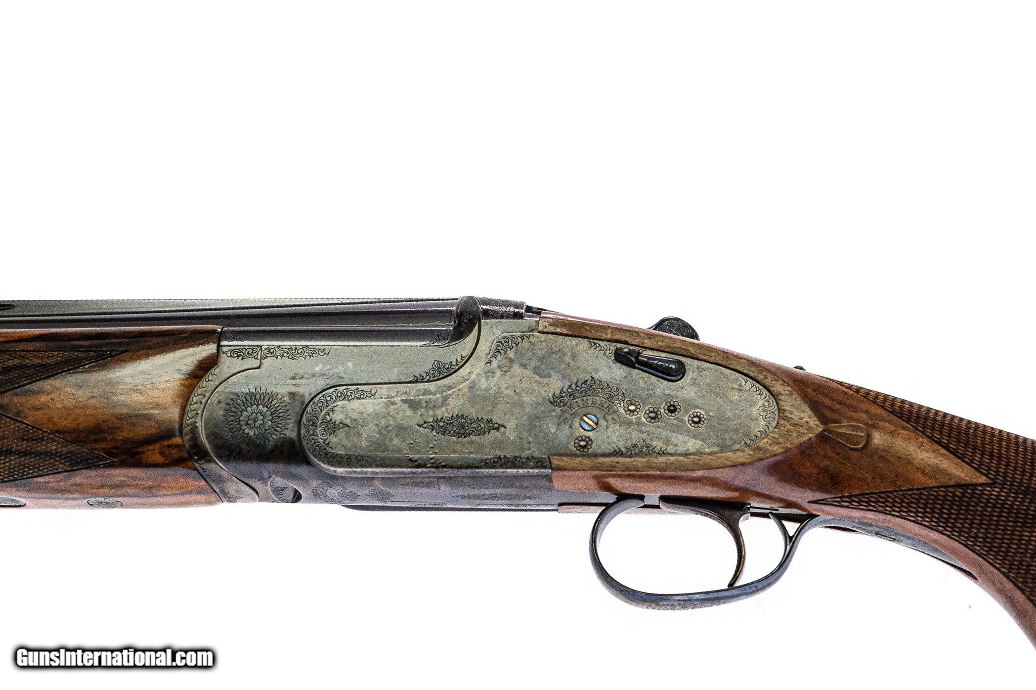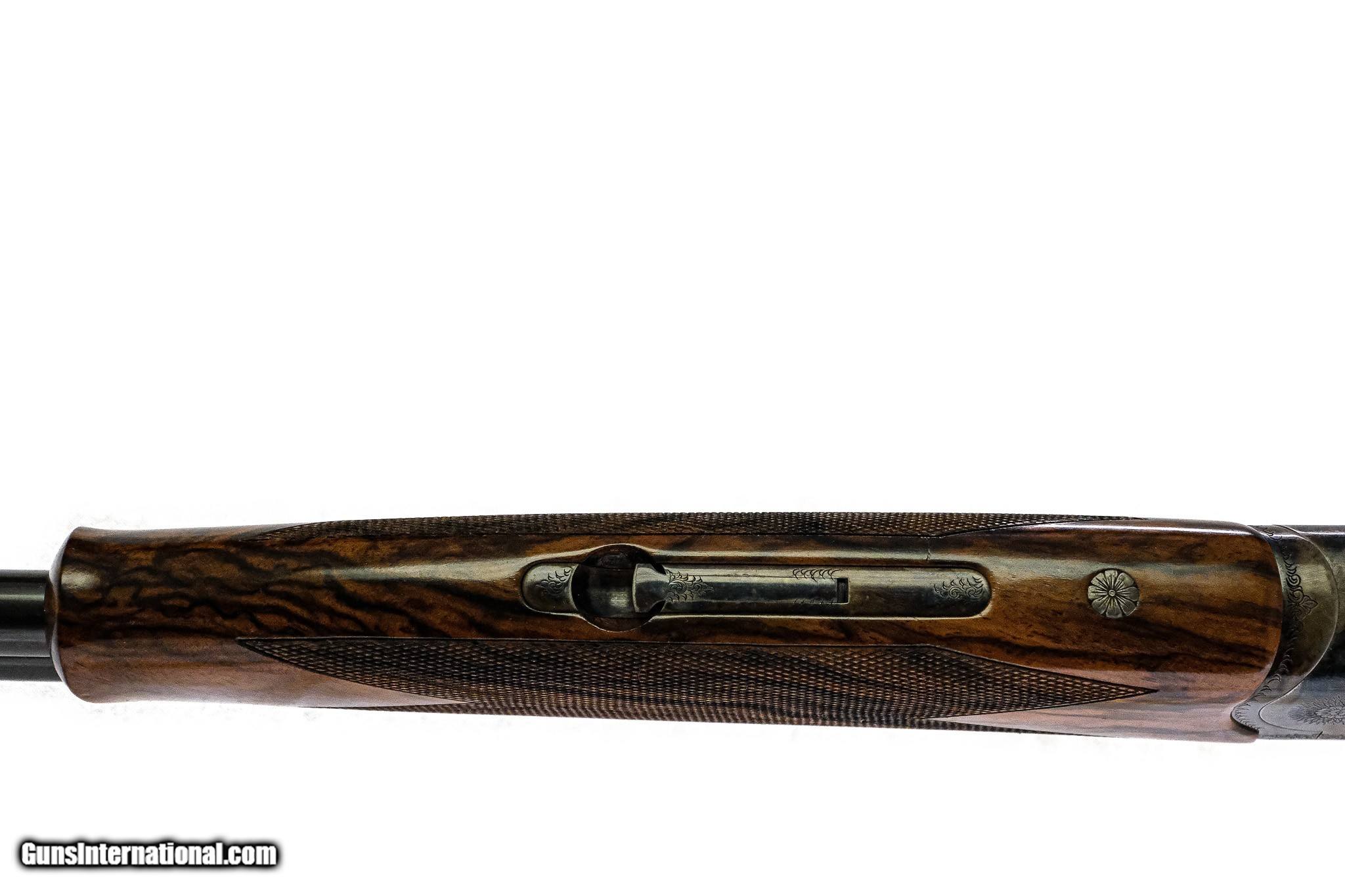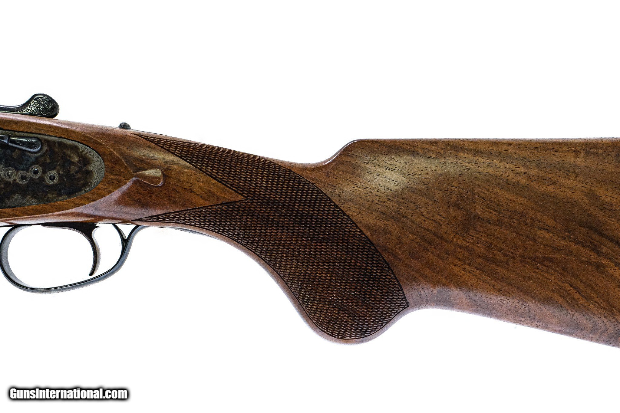 Description: Kimber - Marias, O/U, Grade II, 20ga. 30" Barrels with Factory Hidden Screw-in Choke Tubes. 3” chambers, round knob exhibition Turkish Circassian walnut stock, checkered butt, drop points, Schnabel forend, single trigger, automatic ejectors, full sidelock shotgun with hand detachable locks, tasteful scroll engraving over case colored finish, ventilated rib, gun remains in new condition and in factory box, includes an assortment of choke tubes, available for immediate delivery. FINAL SALE CLOSEOUT. Inv: 66526 7 lbs. 0 oz. 14 ½” x 1 ½” x 2 ¼” $3,250.00 Shipping to lower 48: $50.00 SOLD |