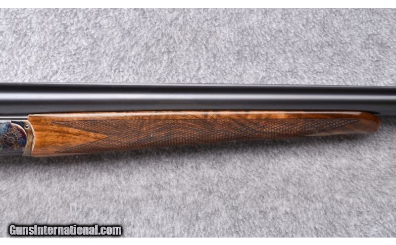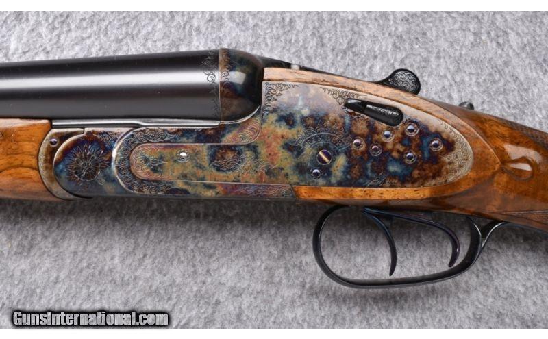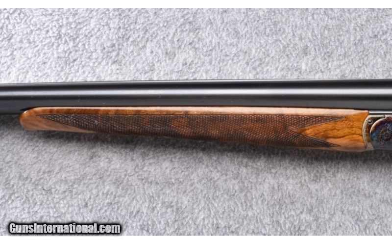 Description: Quality sidelock shotgun in excellent condition throughout. Hand engraved with beautiful case coloring! Manufactured in Turkey. Complete with case! SOLD Manufacturer: S/N 06SLEXXX Caliber Info: 16 GA Chambers: 2 3/4" with Extractors Metal Condition: Excellent Wood Condition: Excellent Bore Condition: Excellent Barrels: 28" Solid Rib Triggers: Double Stock: Checkered Turkish Walnut English Grip Stock Dimensions: 14 3/4" LOP Fore End: Checkered Turkish Walnut Butt Pad: Checkered Turkish Walnut Weight: 6 1/2 LB Sights: Brass Front Bead Chokes: Modified/Full - Fixed Item Location: Wheeling, WV |