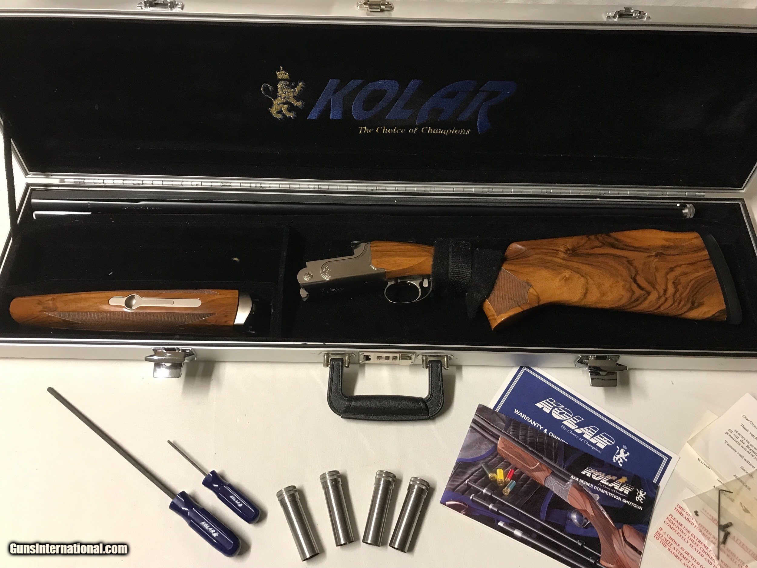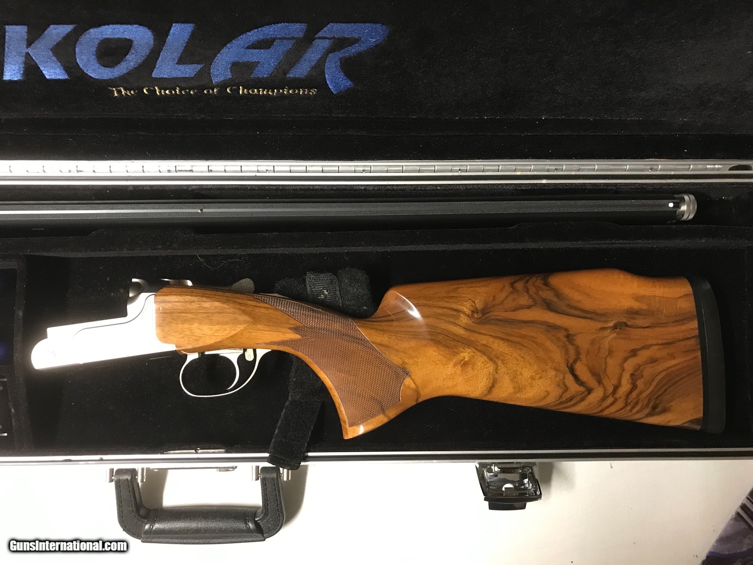 Description: Kolar AAA series Competition 12ga 32" inch barrels. Gorgeous Upgraded wood. Chokes -5,5,10,15,20,25 .750 bore, Airways hardcase. Great looking gun in like new condition. A great clays gun. Trades and offers are given consideration. SOLD Shotgun Gauge: 12 Gauge Manufacturer: Kolar Model: AAA Competition Barrel Length: 32 Bore: .750 Condition: 99 Metal Condition: 99 Wood Condition: 99 Bore Condition: 99 |
