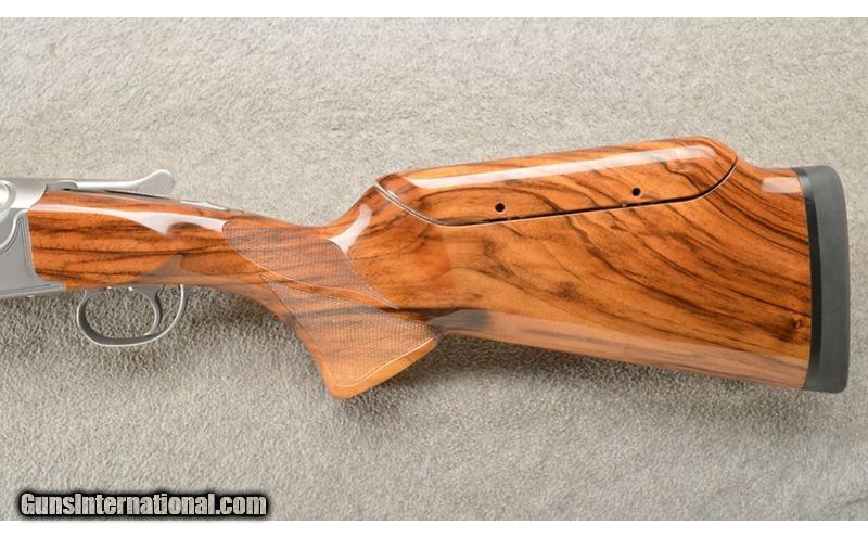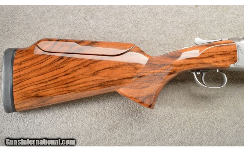 Description: This is an outstanding looks and like new Kolar Arms Left handed Max Trap shotgun. The walnut stock looks like Turkish walnut, but we could be wrong. Where ever it came from it is outstanding and flawless. The 32 inch matte blue barrel has a high and wide adjustable vent rib. The face is very clean and the shotgun looks to be little more than factory fired. You won't go wrong with this nice shotgun. 12 Gauge SOLD Chambers: 2 3/4" over/under with ejectors. Metal Condition: The shotgun looks like new. Wood Condition: The wood is free from and blemishes. Bore Condition: Bright and shiny. Barrels: 32" matte blue with a vent rib. Triggers: Single adjustable LOP trigger. Stock Dimensions: 14 3/4" LOP with an adjustable comb. Fore End: High Grade (Turkish walnut ?) Beavertail style with fine checkering and a high gloss finish. Butt Pad: Matching walnut with a checkered pistol grip and adjustable comb for a left hand shooter. Black rubber butt pad. Weight: 8 Lbs 15 Oz Sights: "High, wide adjustable vent rib. Chokes: "Screw in, comes with a FULL, Light FULL, Light MOD, MOD and Improved MOD. Item Location: Owatonna, MN |