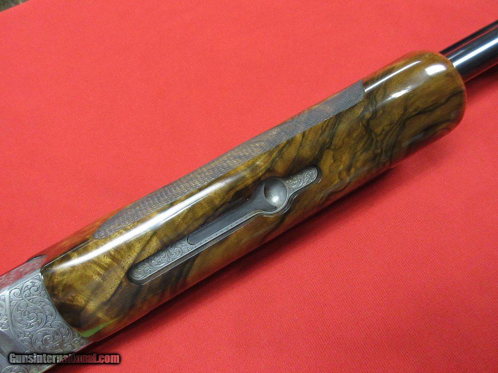 Description: Factory original with full coverage scroll engraving. This gun has an extremely well-figured stock and forend with factory choke tubes and a .740" bore. This gun includes release and pull hammers. Excellent condition overall. SOLD |