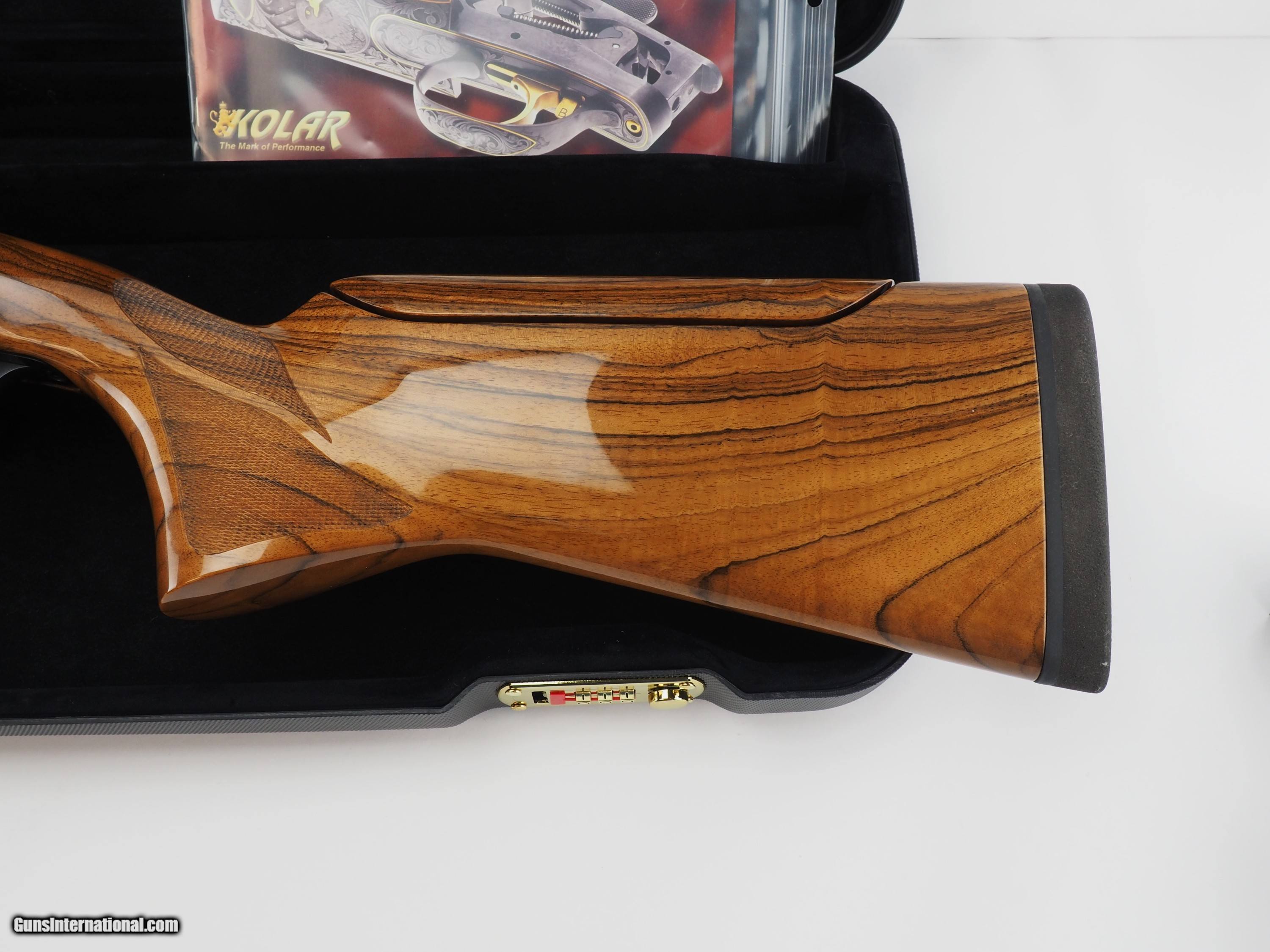 Description: The Max Clays features Kolar’s flat sporting rib and the FX stock. This is the same basic stock as the proven F1, but with more meat to hang onto in the grip, comb, and buttpad. Drop dimensions are the same vs the F1. This gun is brand new, featuring all blued metalwork, and comes complete in the factory Kolar case with all the chokes and accessories. Make: Kolar Model: Max Lite Sporting Gauge: 12ga Barrel length: 32” Hand: Right hand Rib: Ramp Taper (mid rib) Stock: FX (usually found on flat rib guns) LOP: 14 3/4 LOP: 14 3/4” DAC: 1 5/8” DAH: 2” Toe-out: 1/4” Chokes: 5x factory titanium of your choice Case: Kolar factory (by Negrini) SOLD |