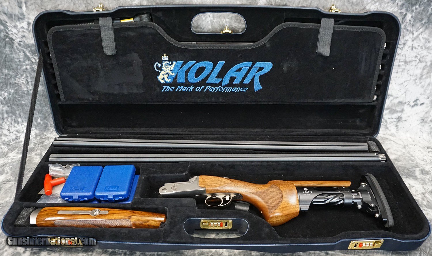 Description: Pre-Owned Kolar Max Lite Carrier Combo 12GA with 32" factory choke tubed, flat-rib barrels additional 32" Carrier Barrel with full set of fitted Kolar AAA Max sub-gauge (20GA/28GA/.410 Bore) tubes. Nickel finished action with removable, selective trigger. Very minor bluing wear on barrels, very minor finish wear. Factory adj. comb sporting stock with right-hand palmswell, slim English sporting forearm. Includes TSK Adjustable stock with sporting grip, all in excellent condition. Includes Negrini case, tubes, tools and chokes. Consignment, ineligible for trade-ins. SOLD Shotgun Gauge: 12 Gauge, 20 Gauge, 28 Gauge, .410 Gauge |