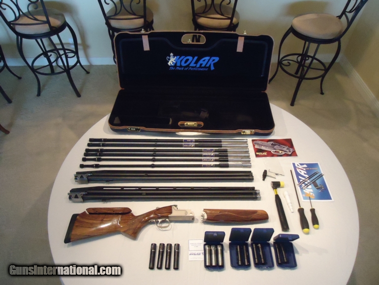 Description: Brand New (11/2014) Kolar AAC All Around Combo with carrier barrel for subgauge tubes. Shoot any clay sport, Trap, skeet or sporting clays with the same gub. 32" barrels, six way adjustable stock, adjustable rib (both barrel sets), extra chokes for all subgauge tubes and 12 gauge barrels plus 4 additional 12 gauge Muller chokes. LOP is 14 3/8". Single selectable trigger. See pictures for cast off. This gun has had almost no use at all with less thant 300 rounds total in all barrels and tubes. This gun is in nearly perfect condition with beautiful wood and comes with all the original tools, wrenches etc. in a custom case. There is also an extra outer case for additional protection. Gun is available in Florida till the end of April and will be available at the Florida State Sporting Clays Championship and at The World English Sporting Clay Championship. After April it will be in Ohio. SOLD |