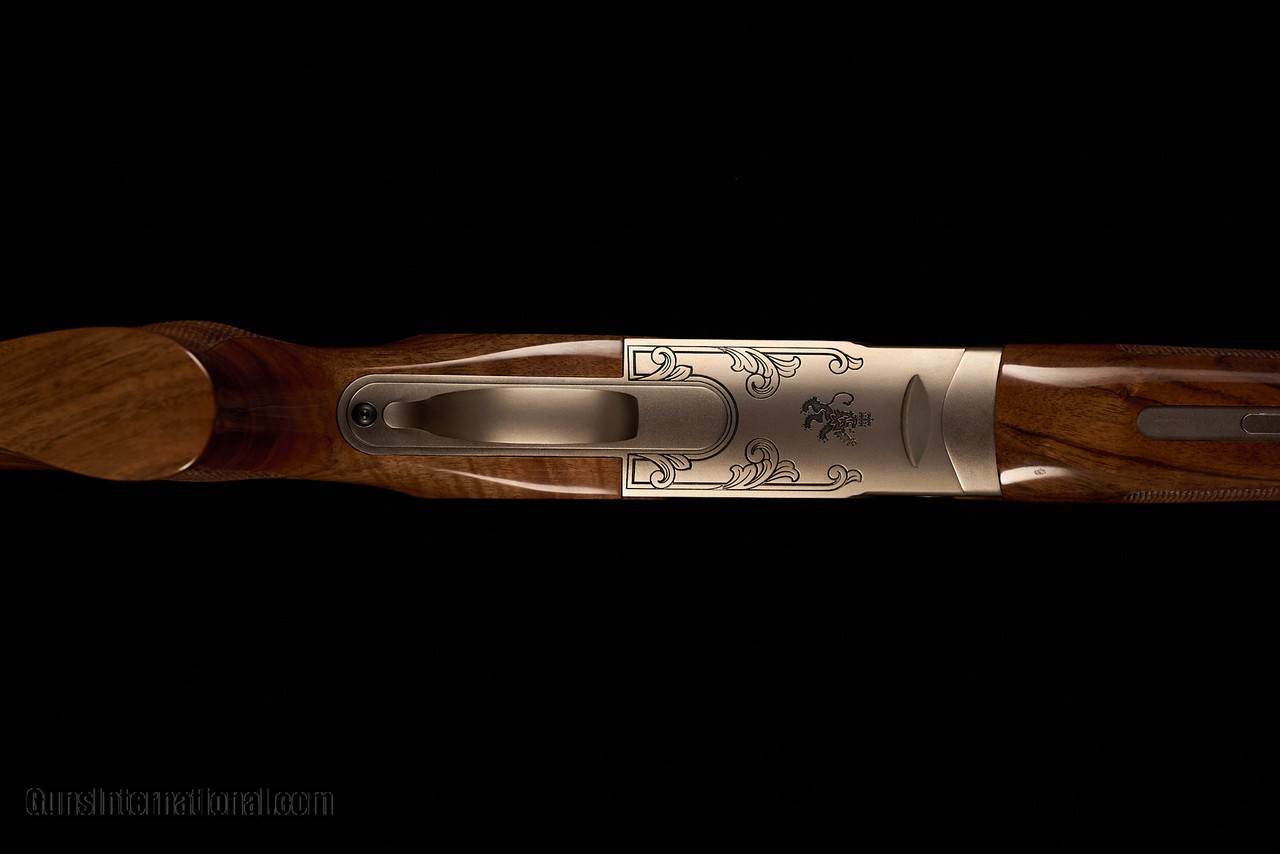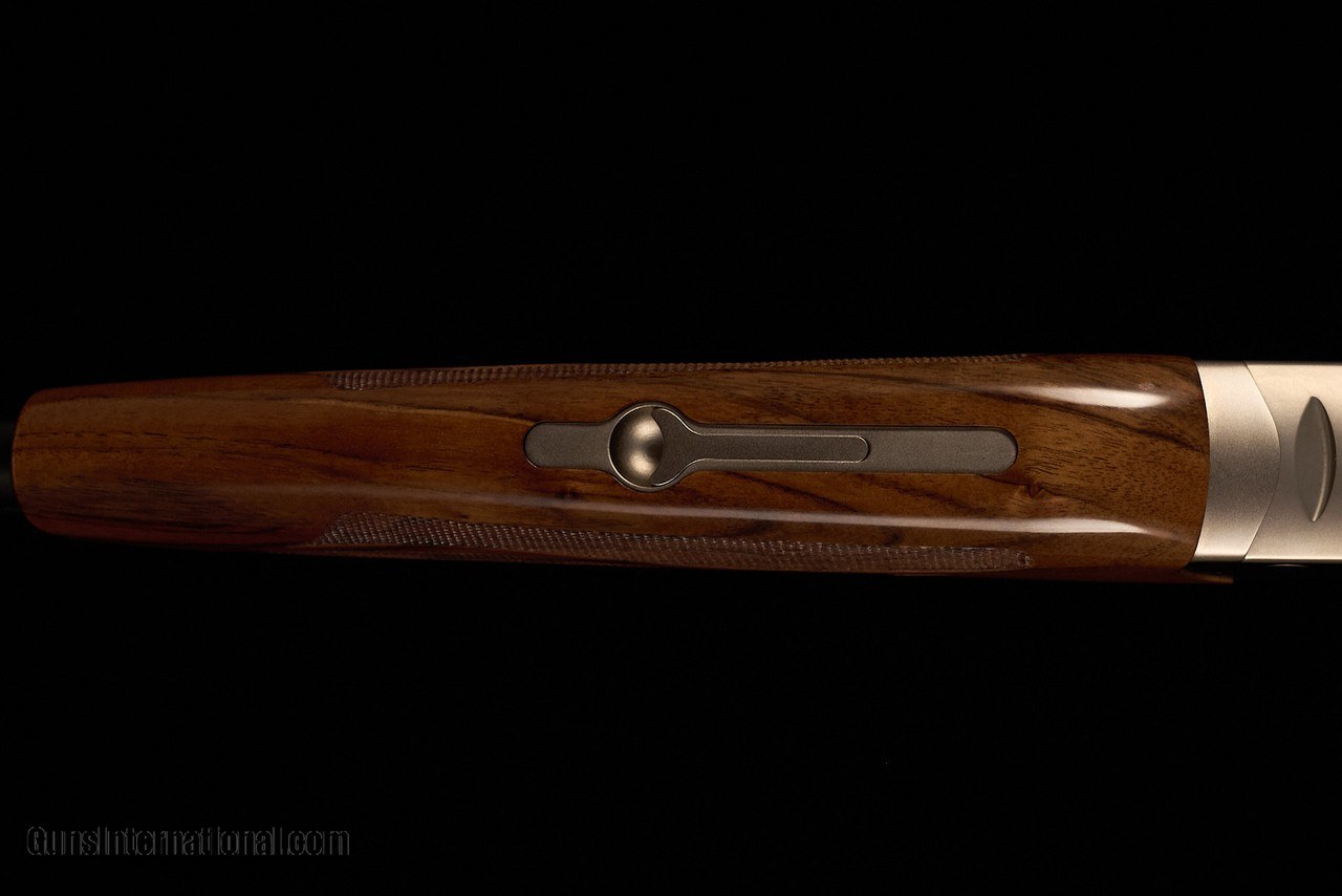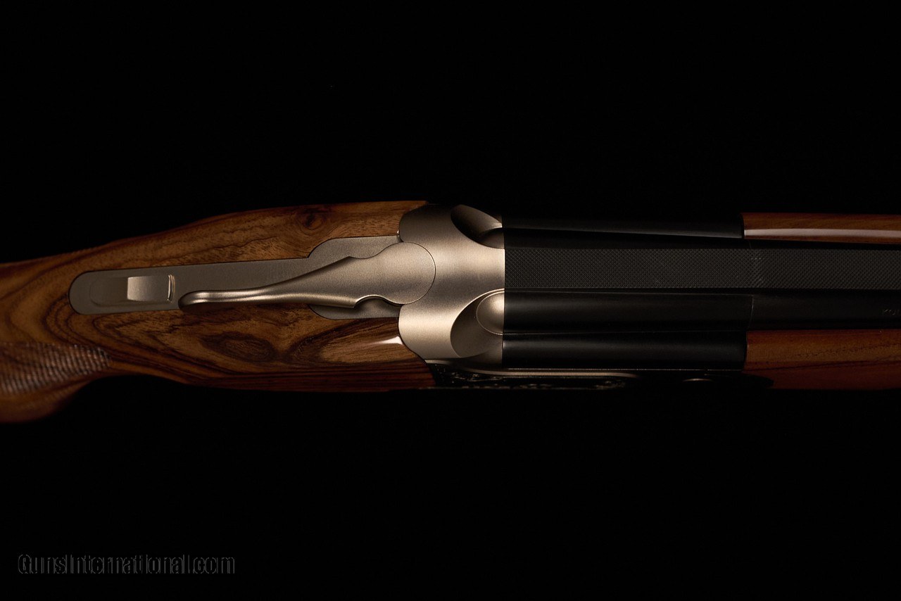 Brand new Kolar Max Lite Sporting with $1k wood upgrade, Ramp Taper rib, Enhanced Std engraving pattern, and FX stock with the exclusive Gordy Grip which features a more vertical hand position, larger palm swell, and shorter trigger reach as compared to the regular Kolar FX stock. The Gordy Grip allows shooters with average-sized hands to easily reach the trigger, while those with above average-sized hands can simply move the trigger blade forward as intended.