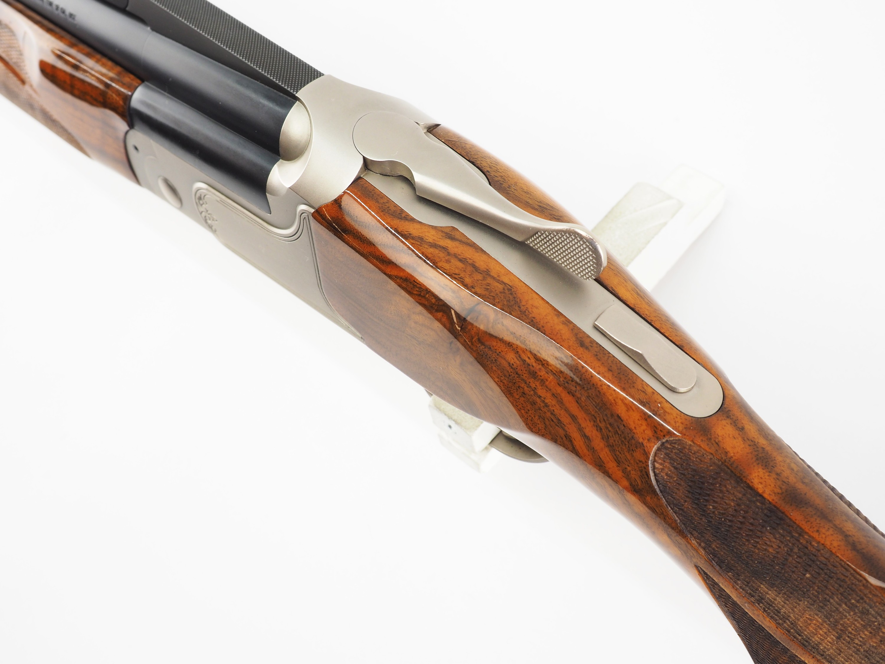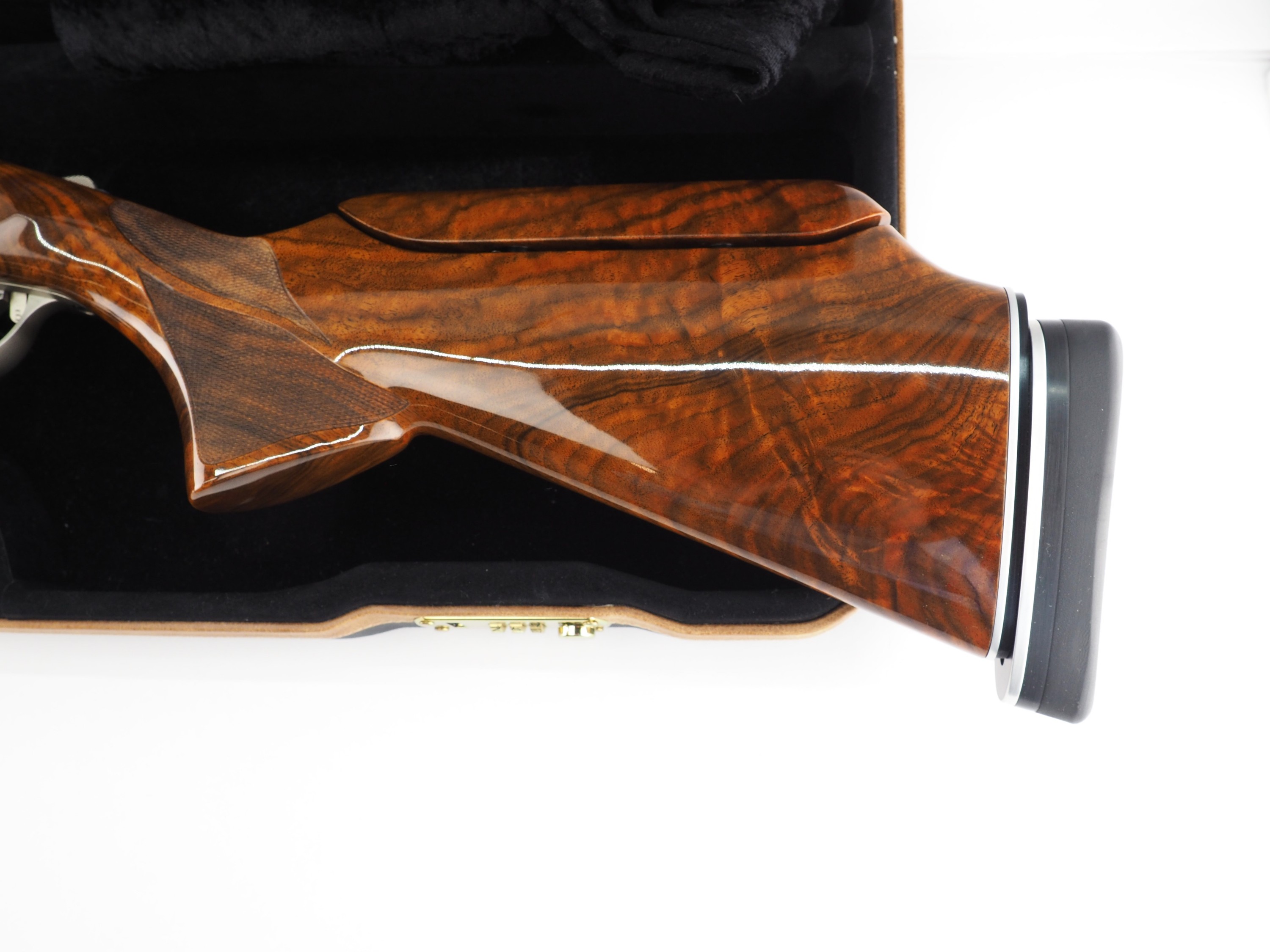 Description: Kolar Max Skeet adjustable with carrier barrel (only) and Kolar 20ga/28ga/.410” tubes. There is no 12ga barrel or capability as the gun is currently configured. Low profile adjustable rib shoots 50/50 when up and 80/20 when down. Serial number is K051xx, meaning the gun is approximately 3-4 years old. Condition is outstanding, showing no handling marks on the wood apart from the faintest scratch which you’d be hard-pressed to find! Barrels open with smooth resistance as do brand new guns. Gun is in 99% condition. Make: Kolar Model: Max Skeet adjustable Hand: Right Barrel length: 30” Gauge: 20ga/28ga/.410 tubes in carrier barrel LOP: 15” (including adj buttplate and recoil pad) Stock: #4 w/ Jones adjustable buttplate DAC: 1.57” (40mm) DAMC: 1.5” (38mm) DAH: 3.03” (77mm) Accessories: hammer, knockout tool, factory grease, chokes, choke box, combo choke wrench, stock wrench, comb wrench, Jones plate wrench and instructions 20ga chokes: SK x2, IC 28ga chokes: SK x2, IC .410 chokes: SK x2, IC Case: Kolar-branded tube case by Negrini SOLD |