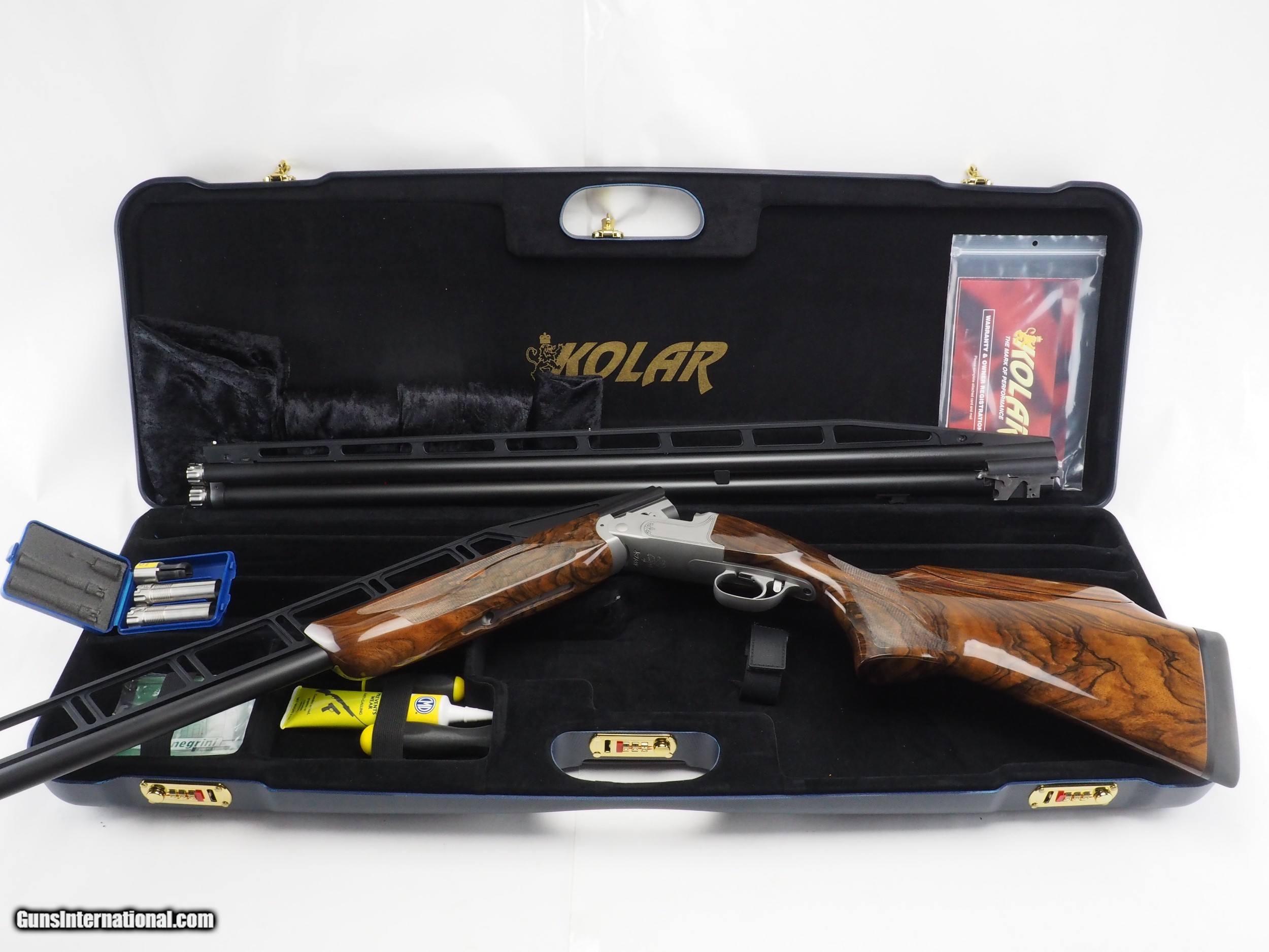 Description: Call for pricing. Target Shotguns, Inc. now stocks new Kolar guns! Brand new Kolar Max Trap T/A unsingle combo with high profile adjustable rib. Stock is a #4 with $900.00 wood upgrade. Very interesting mineral lines in this beautiful stick of wood! Make: Kolar Model: Max Trap T/A unsingle combo Rib: Trap/High/Adjustable Hand: right Barrel length: 32"/34" LOP: 14 3/4" Drop at comb: 1 5/8" Drop at Monte Carlo: 1 5/8" Drop at heel: 3 1/4" Comb offset: 1/2" Toe-out: 3/4" SOLD Shotgun Gauge: 12 Gauge |