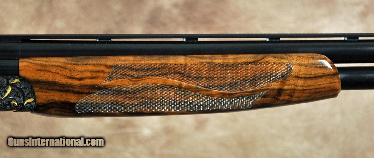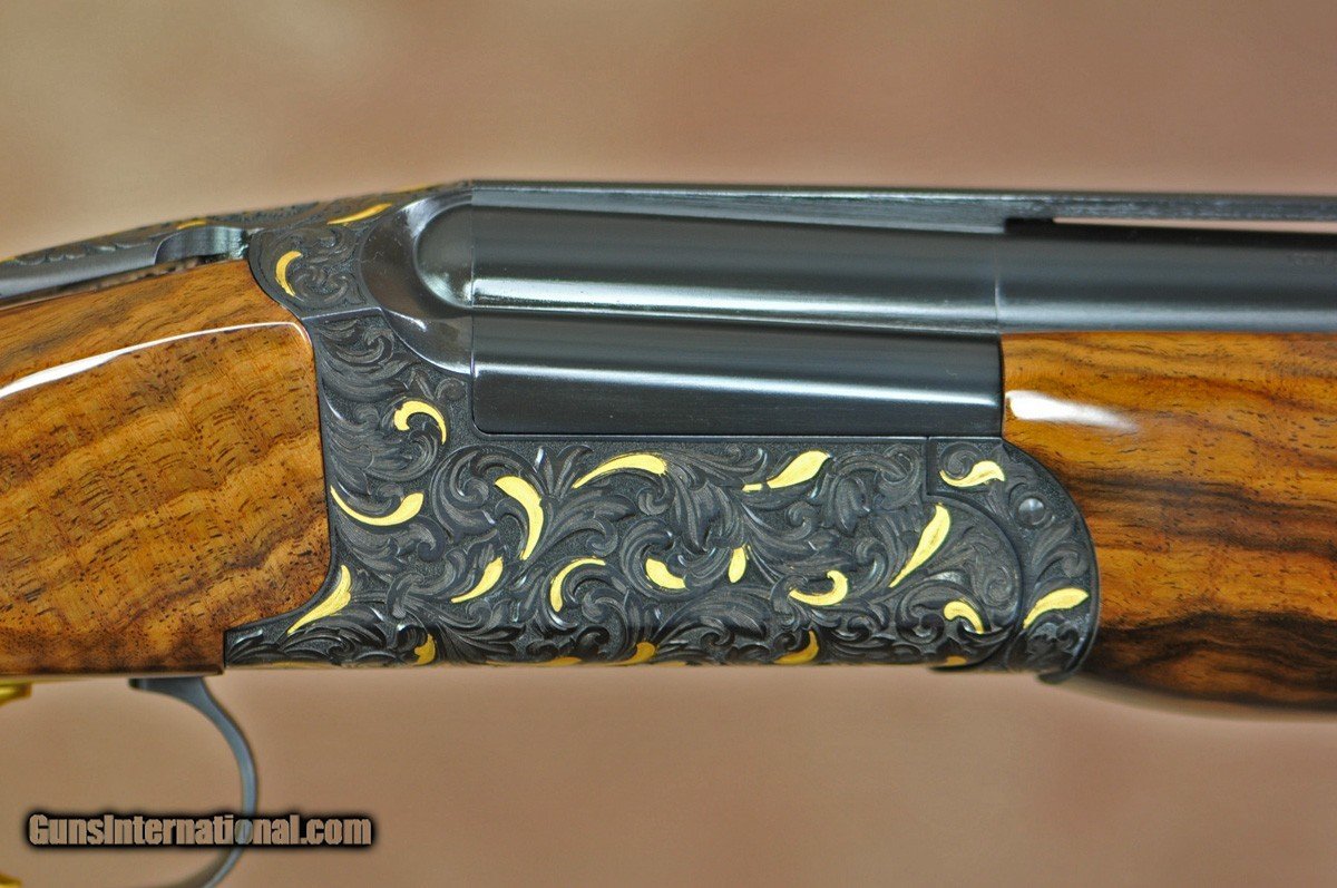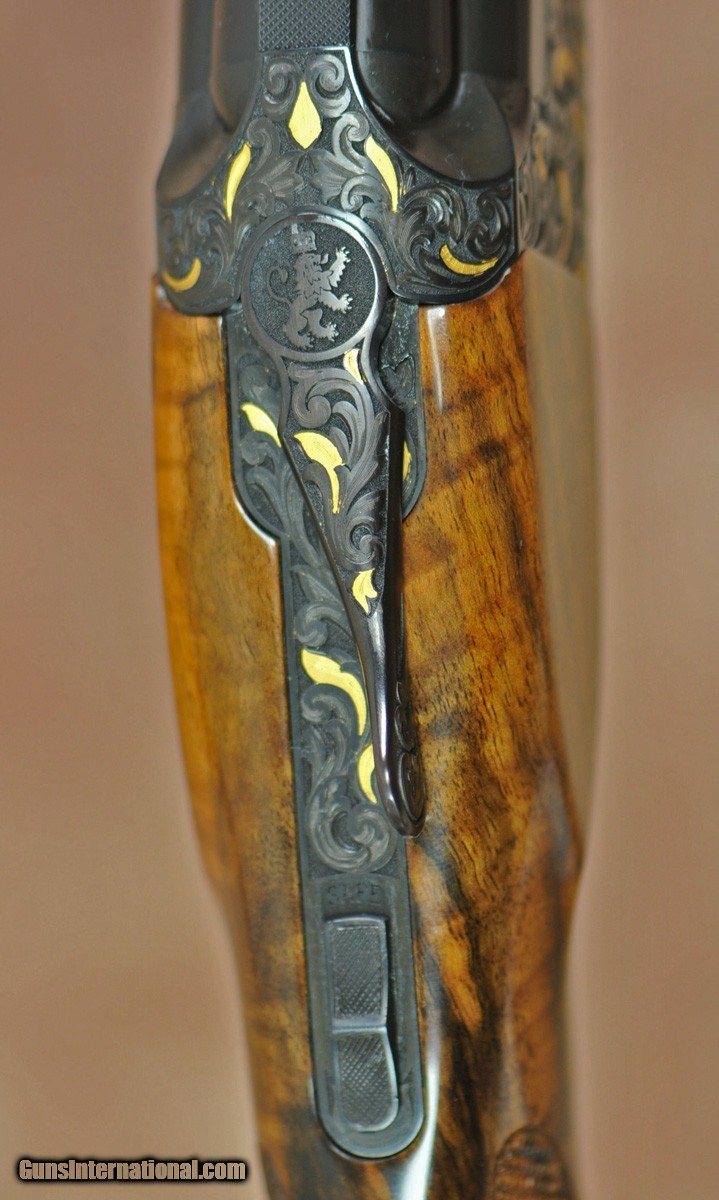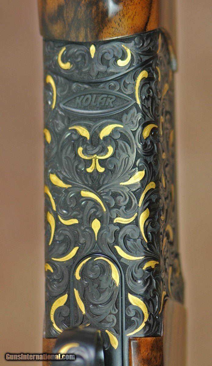 Description: New Kolar Round Body Gold Grand Sporter 12ga. Features factory titanium extended choke tube 32" barrels with flat sporting rib. Engraved receiver featuring deep scroll engraving pattern with gold highlights with removable selectable trigger. Highly figured right handed Sporting stock with adjustable comb and Round sporting forend. Comes in factory leather wrapped case. PRICE ON REQUEST Pacific Sporting Arms is the largest dealer in high grade shotguns in the world. SOLD Shotgun Gauge: 12 Gauge |