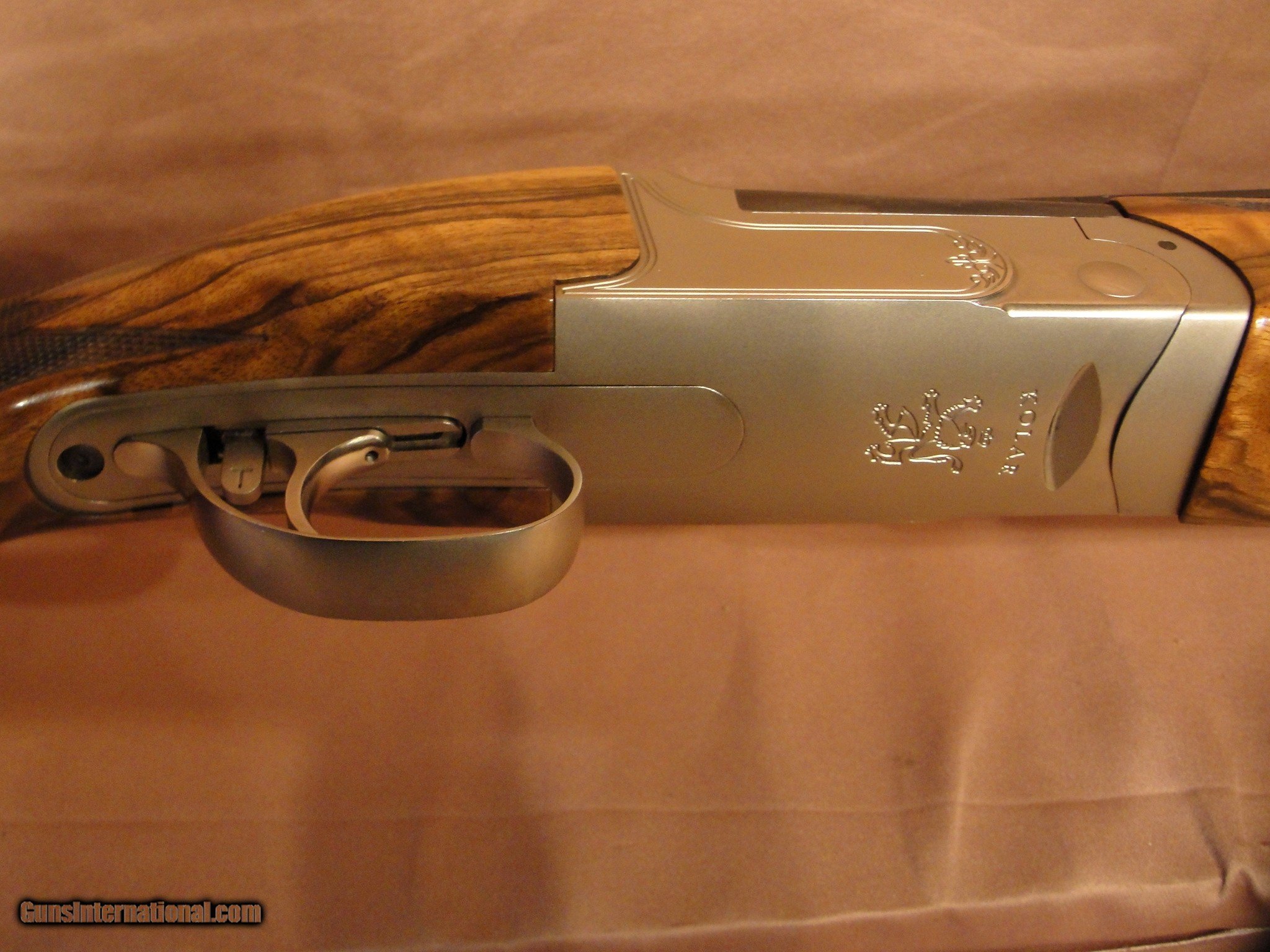 Description: Book # 1991 Manufacturer: Kolar Model: Trap T/A Serial#: K028-- Gauge: 12 Barrel: O/U :32" Top Single: 34" Bore: .750 Choke Tubes: 10, 15, 25, 35/.750 Rib: Adjustable vent rib Manufactured: USA LOP: 15" Butt Pad: Kick-Eez Weight: 10 lbs. 10.5 oz Bore condition: Very Good Wood Condition: Good with light handling marks Blue Condition: Good with some fading on the barrel near the receiver (see pics) Trigger: Both pull and release parts Case: Negrini ABS leather trimmed case Notes: Soft Touch Stock. Barrels have been ported by Top Line Porting Please call 828-693-3833 or email infotargetshotguns with any questions. SOLD |