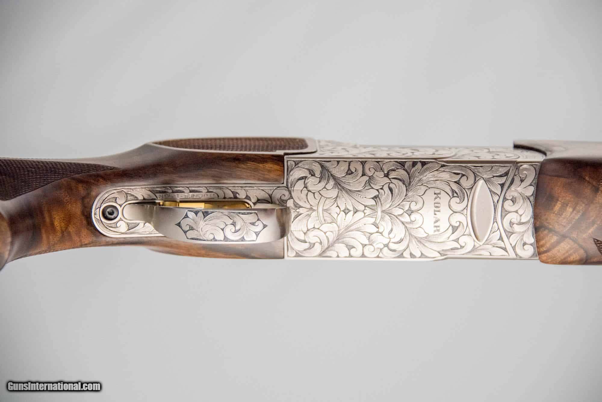 Description: For sale is a pre-owned Kolar Max Lite Sporting with the Prestige engraving pattern. The Prestige features an open arrow style medium relief scroll with a decidedly European look. 100% coverage on receiver and forend iron, top lever and trigger guard. Gloss finished barrels and a gold trigger. Includes 7 titanium Pure Gold choke tubes, 5 Müller choke tubes and two extended Kolar choke tubes. Custom stock by Neal Bauder with with 14 1/2 inch length of pull, 1 1/4 inch drop at front of comb and 1 1/2 inch drop at heel. Light contour 740 barrel is after-market ported. Also comes with a second matching slim English style factory Kolar forearm. This shotgun weighs 9.10lbs as photographed and 8.95lbs with the slim forearm. Adjustability, Speed & Precision The Kolar Max Lite Sporting is now offered in both fixed and adjustable ramp tapered rib configurations. The more traditional fixed ramp tapered rib can be factory set at 50/50 or 60/40 P.O.I. The adjustable ramp tapered rib configuration allows the shooter the advantage of a raised head position for instant target recognition. You also have the ability to precisely set P.O.I. from 50/50 to 70/30. The ribs’ lower mass allows you to get the lighter barrels on the target more quickly for a faster shot. Tailored for Consistency The Kolar Max Lite Sporting stock is available in multiple stock options giving the shooter the ability to choose the proper configuration resulting in a custom fit. All stocks are fitted with a standard six-way adjustable comb. An L/W heel adjuster is optional. This results in a tailored, precise fitting stock that promotes a more consistent gun mount. The forend is a traditional Euro design, and both the stock and forend are cut from English walnut. Maximum Pattern Efficiency & Low Recoil The standard barrels on the Kolar Max Lite Sporting are Kolar’s innovative .740 lite contour. Combined with extra-long forcing cones and precise taper factory titanium CTs, they provide maximum pattern efficiency and extremely low recoil characteristics. The gun is available with a matched weight carrier barrel and Kolar Max Lite Sporting AAA inserts for sub-gauge events. Selectable & Adjustable The re-designed Stage II mechanical trigger is selectable and adjustable for trigger blade placement. It features a patented interlock to eliminate the possibility of fan-firing. The all coil, spring driven Stage II trigger features an enhanced hammer/sear configuration to ensure precise trigger pull. All guns are supplied in a Kolar hard case. New Kolar Custom Negrini Design. ABOUT US Michigan Shooting Centers is a family owned and operated company that manages Michigan’s most trafficked public shooting ranges. We have two locations in southeast Michigan, Island Lake Shooting Range in Brighton and Bald Mountain Shooting Range in Lake Orion. Both offer shooters with family-friendly and safe shotgun, rifle and pistol shooting amenities. The gun showroom at Michigan Shooting Centers specializes in premium and competition grade sporting and field guns. Located at our Lake Orion, Michigan location, our showroom features hundreds of premium shotguns, rifles, and pistols and a dedicated sales team with over 50 years of shooting experience. We are an authorized and stocking dealer of firearms from Kolar Arms, Caesar Guerini, Fabarm, Syren, Beretta, Blaser, Browning, and Rizzini shotguns as well as Glock, Sig Sauer, CZ-USA, Dan Wesson, and Smith & Wesson handguns and rifles. In addition to offering a wide selection of new firearms, we have a large offering of pre-owned firearms. We buy guns, accept trade-ins, and offer consignment services. We take great pride in offering a personalized and professional customer service experience. As a customer, it is our mission to make your next firearm purchase special. We pride ourselves on offering exceptional service, both before AND after the sale, expedited shipping times, and competitive prices. You should know that our team will go above and beyond to impress. CONTACT US The gun showroom at Michigan Shooting Centers is located at 2500 Kern Road in Lake Orion, MI 48360. Feel free to give us a call at 248-564-3640 or send us an email message if you have any additional questions or concerns. If you call or message us outside of our normal operating hours, we will return your message within 24 hours. SOLD Shotgun Gauge: 12 Gauge |
