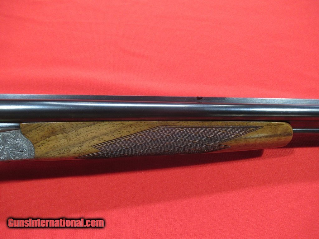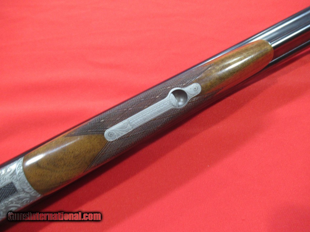 Description: Krieghoff NEPTUNE DRILLING 410ga/22 Hornet 27" -- Super Rare Low Production gun from Krieghoff -- Krieghoff NEPTUNE DRILLING chamber in 410ga x 410ga shotgun over 22 Hornet. This gun is factory orignal and virtually new. Sideplated boxlock with full coverage scroll engraving, highly figured stock and forend with skip-line checkering, shadow-line cheekpiece, sling swivels, The safety/cocking device raises a rifle sight when actuated. This is a neat little piece overall. SOLD |