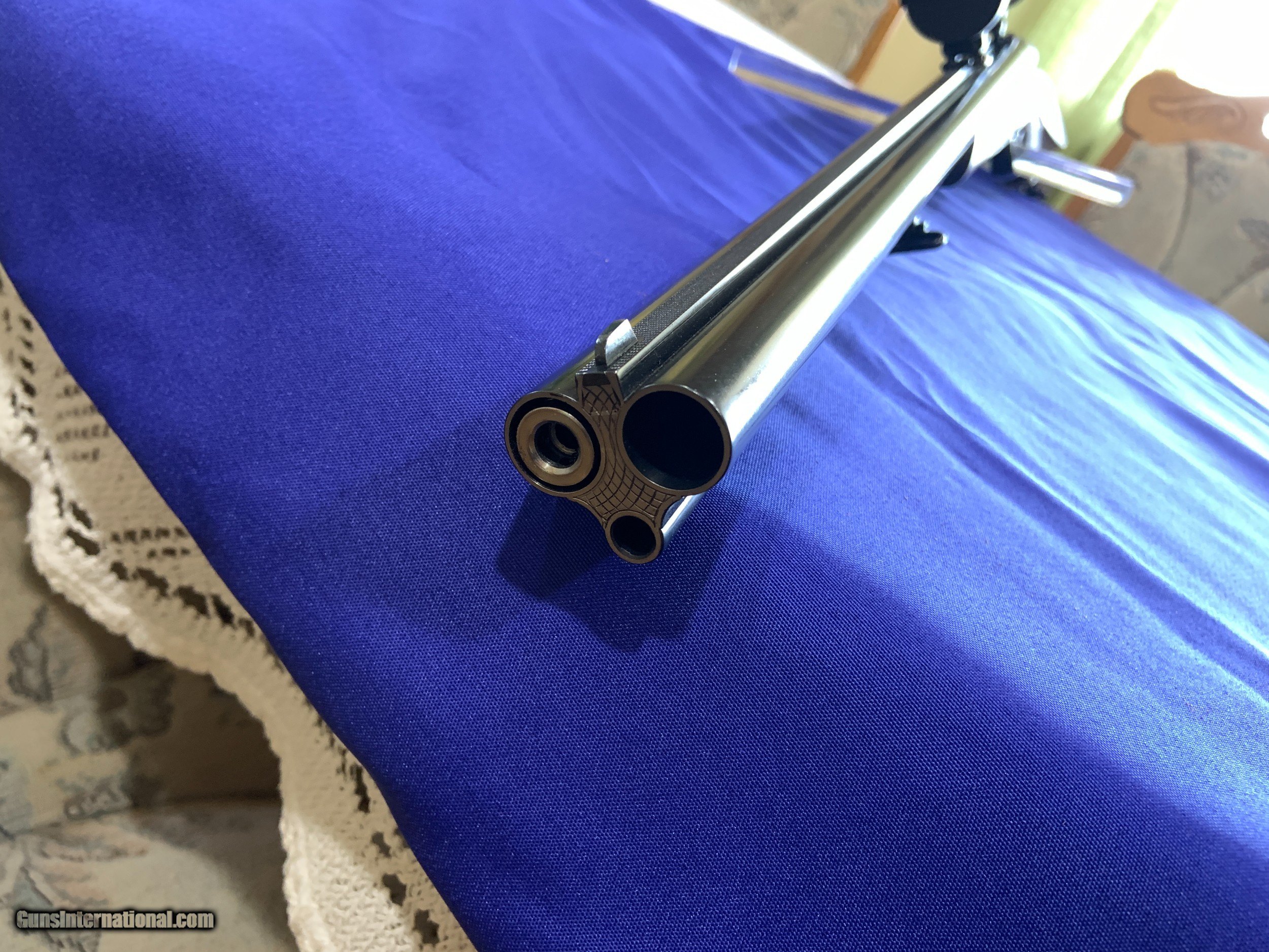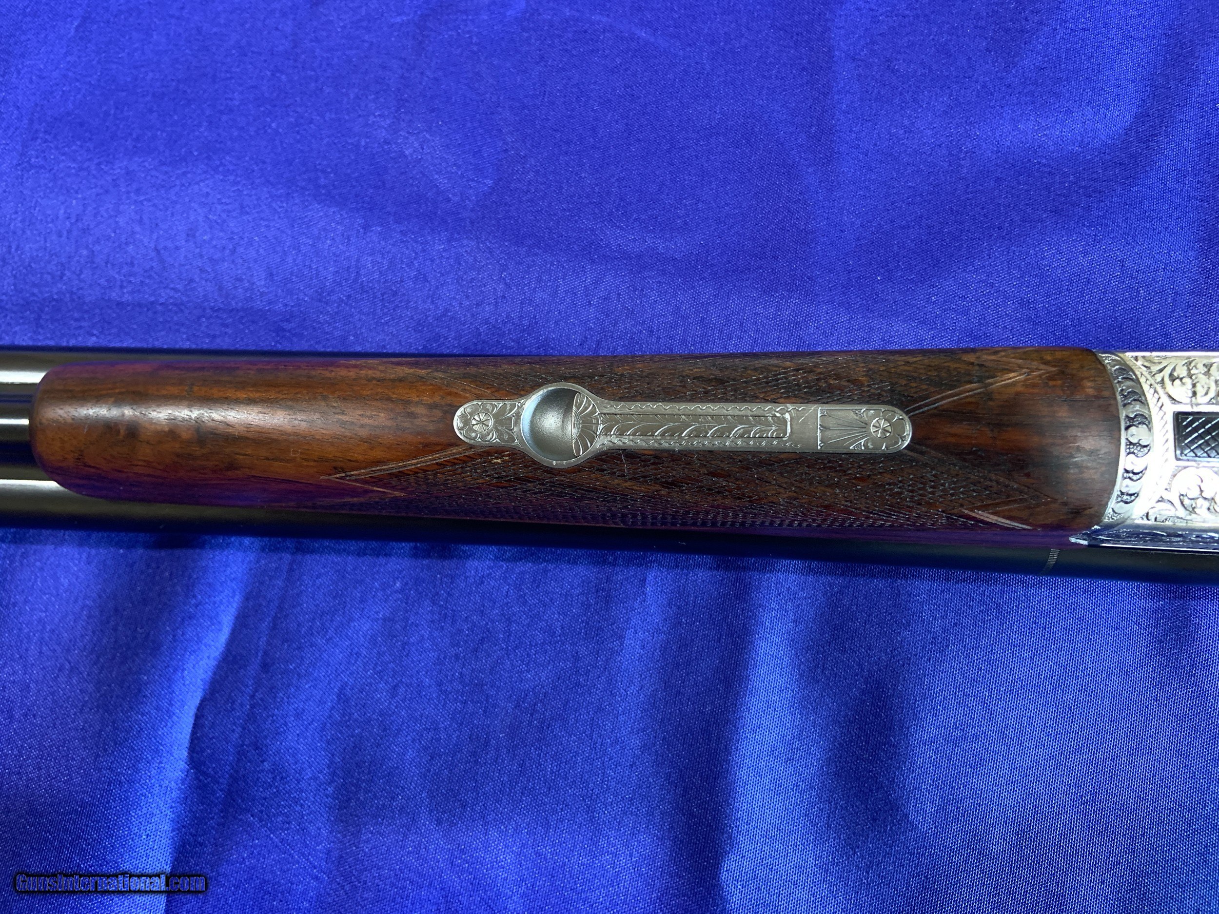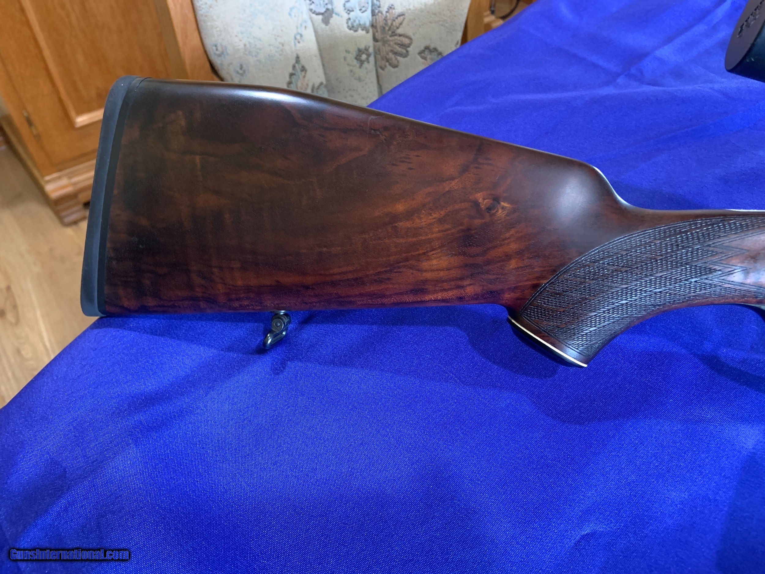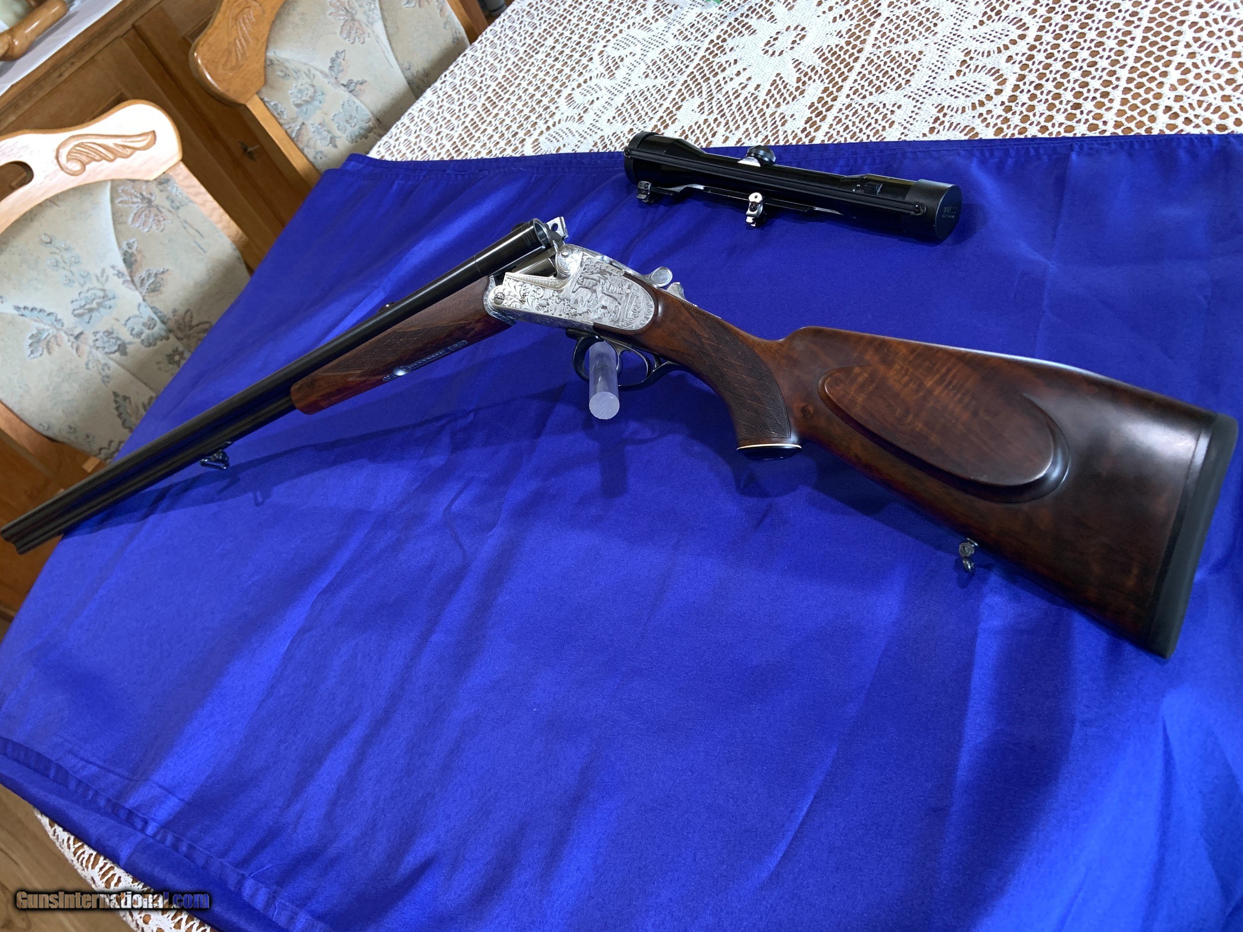 Description: Pending Sale! I am reducing the size of my Krieghoff collection and am offering several fine examples for sale here. These guns were purchased by me while stationed in Germany. Extras: Self Cocker, .set front trigger, 22 Hornet insert in right shotgun barrel. Proof Date: 1975 High Grade Wood Stock Rubber Butt Plate Double Trigger with Front being articulated set trigger. Cal. 7X65R / 16ga. / .22 Hornet Insert Chokes Full Pull: 14 3/8 Barrel: 25 in. Weight: 8lbs 10 oz.with scope and mounts. Engraving: Left Side Two Reh w/game scene fill. Right Side dog and two ducks w/game scene fill. Bottom Scroll. Scope: Zeiss Classic Diavari Z 1.5-6 X 42T German No. 1 Suhler Claw Mounts Asking Price $11.000 This Krieghoff is in great condition, 99% Blue. Wood is dark oiled finish in great condition. See pictures below. It has been fired very little as it has been a part of my collection since about 1986. I have never fired it. Today's value is in excess of $ 18.000. This is a fine example of a great drilling. It will definitely make some collector very happy. This is truly a great value for an investment or just a beautiful gun to hunt with. Complete picture file available on request. Fixed insured shipping cost of $60.00 to the lower 48 States Item will ship via Fed Ex insured to your FFL when funds clear. Thanks for looking! SOLD Rifle Caliber: 7x65mmR Shotgun Gauge: 16 Gauge Manufacturer: Krieghoff Model: Neptune Barrel Length: 25 in. Ejectors: Yes Condition: Excellant Metal Condition: Excellant Wood Condition: Excellant Bore Condition: Excellant Barrels: 25 in. Triggers: Set front trigger LOP: 14 3/8 in. Weight: 8 lbs 10 oz Manufacture Date: 1975 Engraving: Animal Extras: Self Cocker / Handspanner |