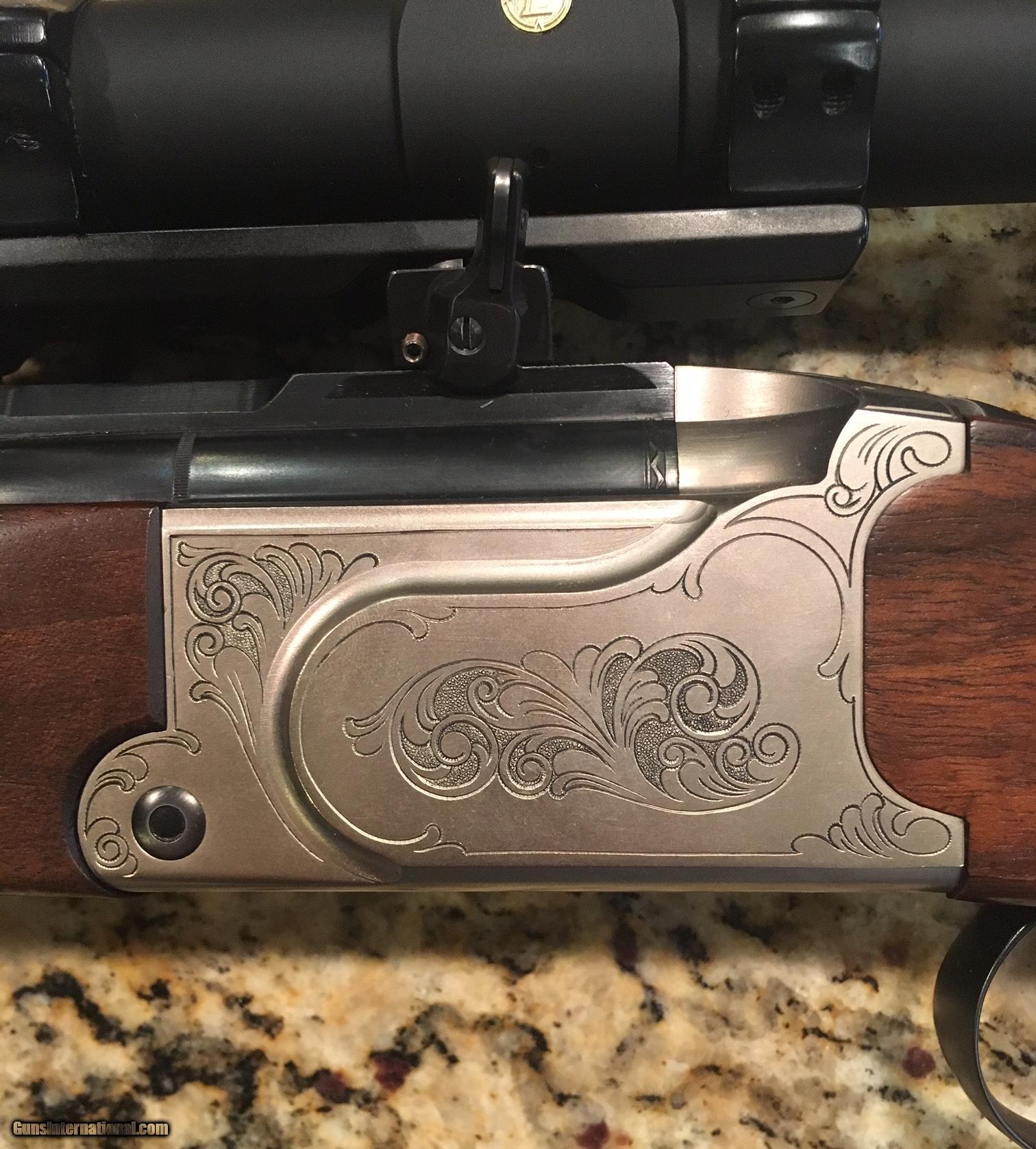 Description: Krieghoff Ultra combination gun. 20 gauge 3" chamber shotgun barrel over 9.3x74R rifle barrel. Swing off scope mount and Leupold 1.1-5x20 VX3 with German #4 reticle included. This gun has the steel receiver. Excellent condition. SOLD Manufacturer: Krieghoff Model: Ultra |