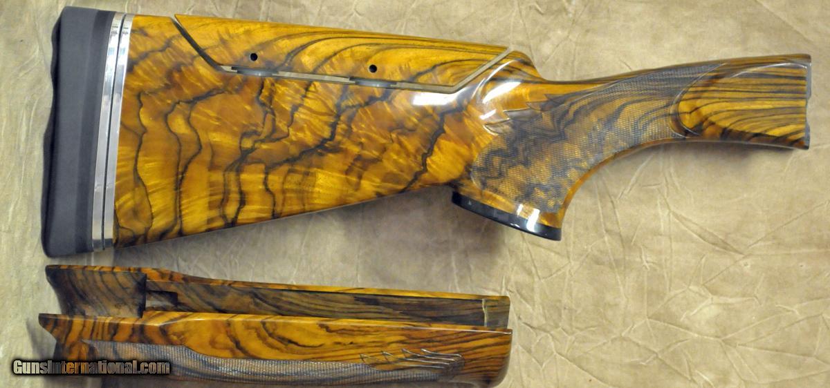Description: Outstanding Custom Krieghoff K-80 right handed adj. comb Stock with right hand palm-swell and Schnabel Forearm. After-market adj. butt plate added. Length of pull is 14 1/4". Little to no handling marks on the stock or forearm, wood is in 99% condition. This stock and forearm is located at our NEW Michigan location at 8585 PGA Drive, Suite 104. Walled Lake, MI 48390. 248-960-7262. SOLD |