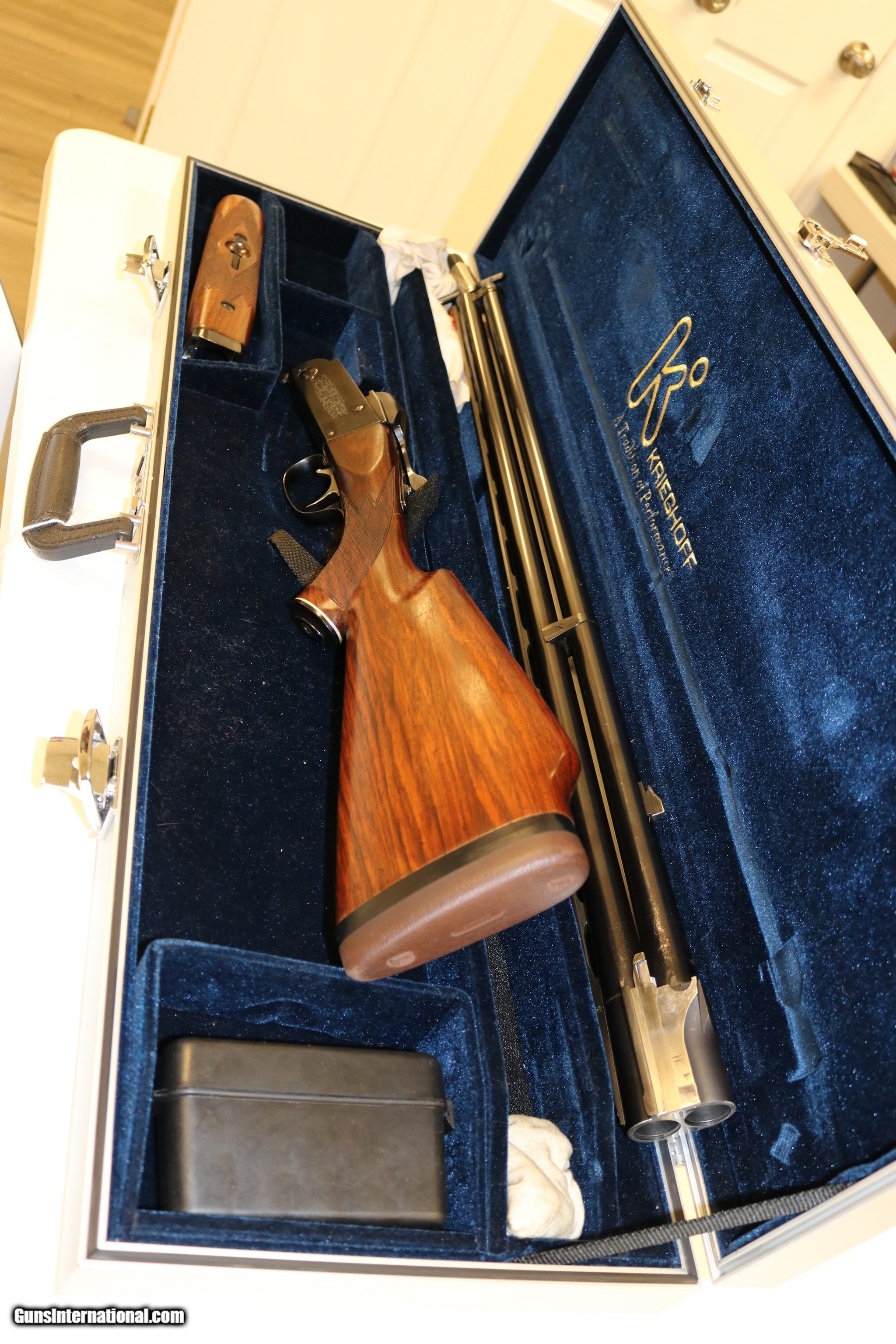 Description: Description: Krieghoff model 32 Standard 30" Skeet .The set comes complete with the original Krieghoff hard case. Very Early Krieghoff Model 32 Standard Grade Over/Under Shotgun, 12 ga. 30' vent rib barrel have 2-3/4' chambers, target beads, and are choked IM/Mod. Boxlock action features single selective trigger, auto safety, and auto ejectors. pistol-grip buttstock, which features a wooden grip cap, '. Dimension are 14.5'x1.5'x1-5/8'. Mfg'd first year 1954 in Ulm, Germany. Includes a leather hard case with chocks Condition is excellent . Wood shows very few handling marks. Ejectors work correctly, bores are bright. SOLD Manufacturer: H. KRIEGHOFF GUN CO. (SHOTGUNS OF ULM) Model: Model 32 Condition: used Barrels: 30 BARREL |