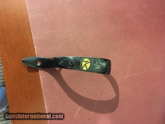 Description: K-80 Blue Trigger Guard with 24K Gold Broken Target inlay and Super Scoll engraving. This trigger guard is like new condition with matching engraved trigger guard screw. This trigger guard retails for $2,395.00 with Super Scroll engraving. Please give us a call with any questions and for best pricing. SOLD Shotgun Gauge: 12 Gauge Manufacturer: Krieghoff Model: K-80 Condition: In like new condition |