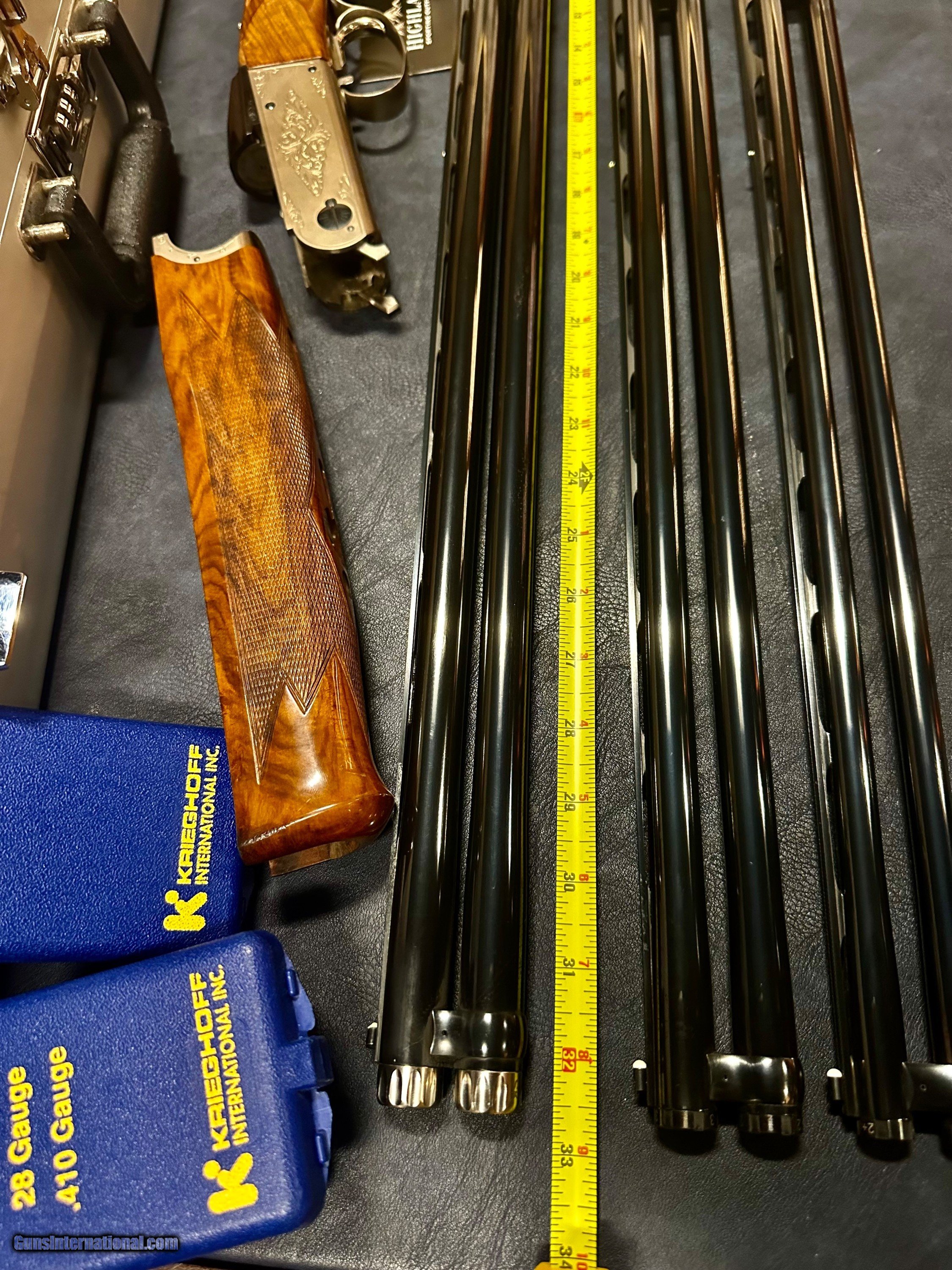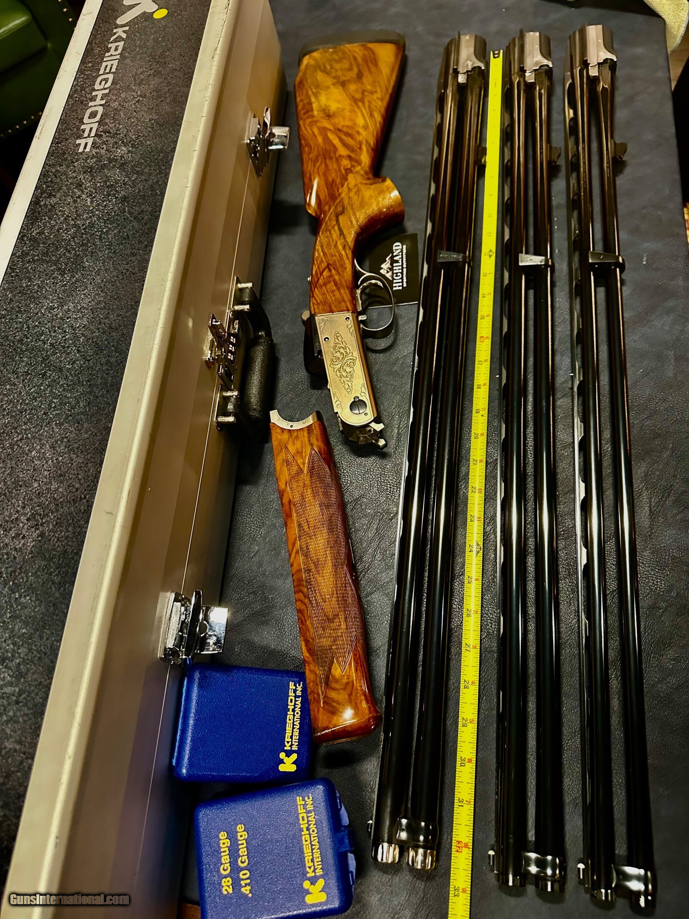 Description: A rare opportunity to own a beautiful pre owned K20 serial #08002 3 barrel set 20ga / .28ga / .410 all 32" with full choke sets for each guage. The perfect Bird / Sporting clays / skeet Krieghoff. With hard case. Highland is an authorized Krieghoff dealer located in Hunt Valley Md. We offer full service, custom stocks , refinishing, pads , combs, Highland will extend a one year warranty on this K20. 3 New 32" barrels like this would be $21,000 alone ! a great value ! Shotgun Gauge: 20 Gauge Manufacturer: Krieghoff Model: K20 Serial Number: 08002 Barrel Length: 32” Chambers: Clean Ejectors: Like new Condition: Beautiful Metal Condition: Perfect Wood Condition: Beautiful Bore Condition: Clean Barrels: Like new Barrel Type: O/U Triggers: Mechanical Stock: Sporter Stock Dimensions: Standard Stock Drop: Standard Stock Cast: Right Fore End: Sport Rib: Flat Finish: High gloss Weight: 8lbs Sights: Standard Chokes: All Extras: 3 barrels Case: Yes hard case for all barrels Item Location: Hunt Valley Md Price: $26,750.00 Shipping: $125.00 Buy Now Contact Seller |