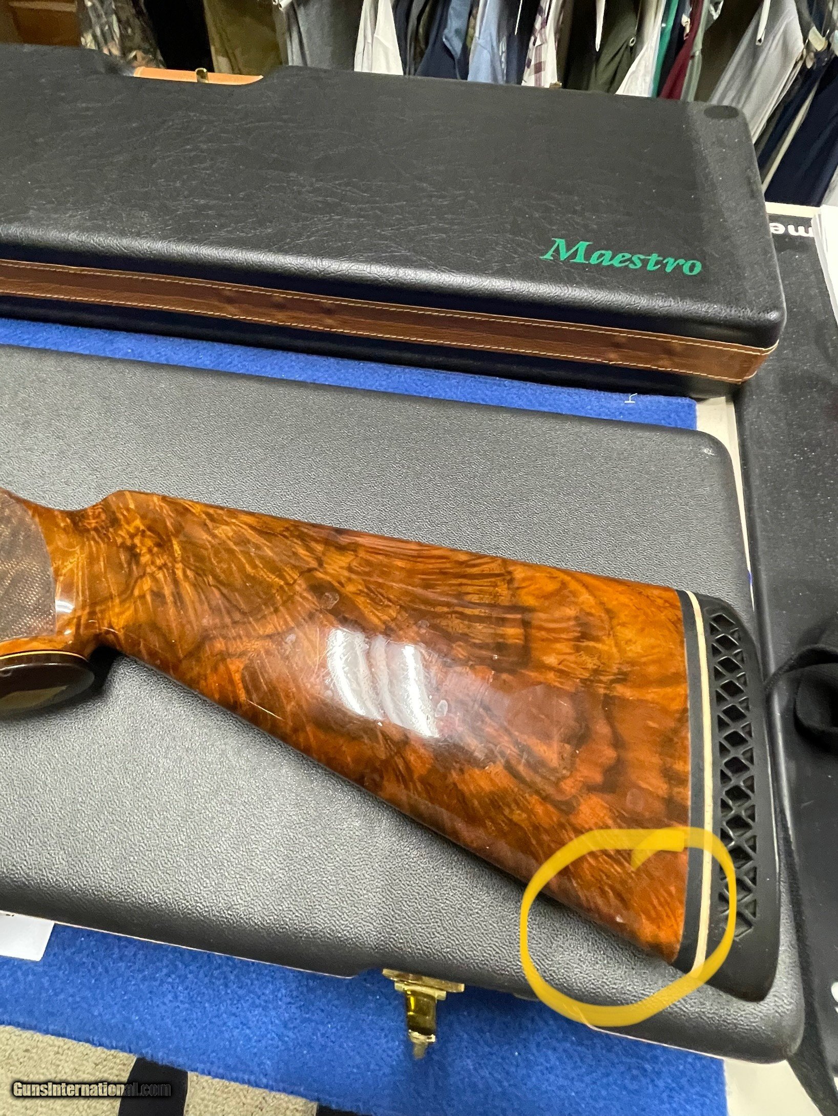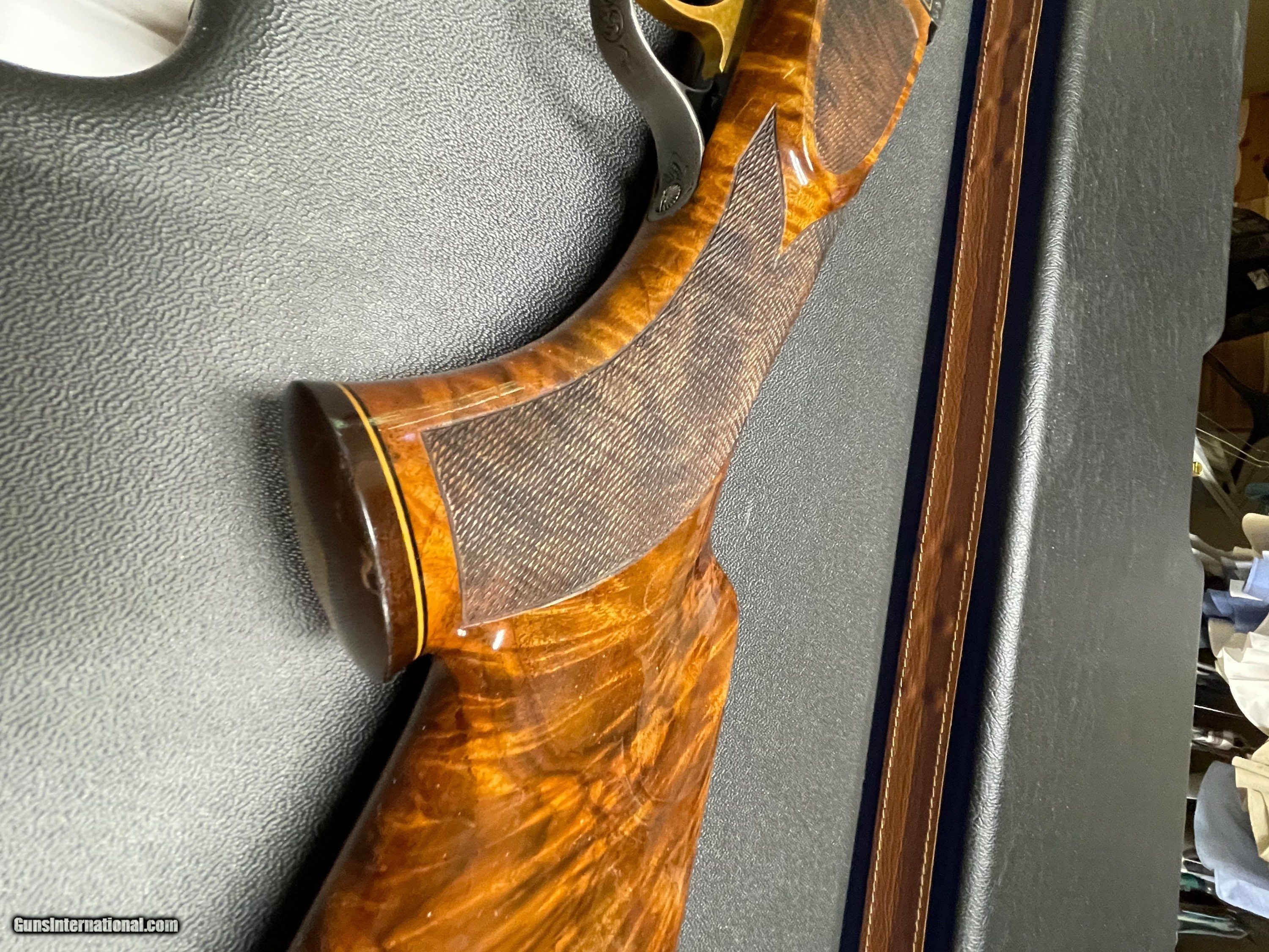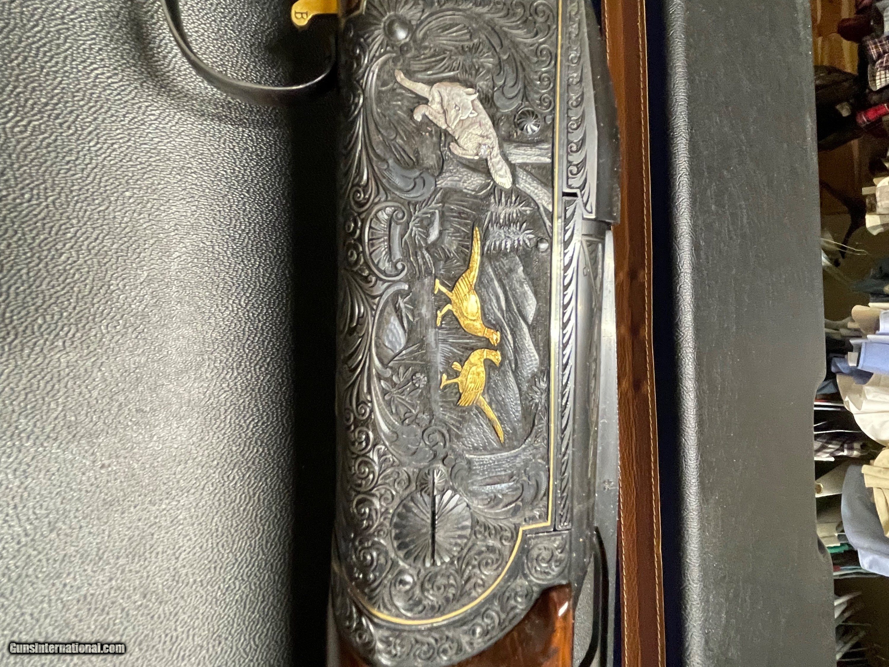 Description: K32 Super Crown skeet set with 12, 20, 28, and 410 skeet barrels and also has a Live Pigeon barrel with choke tubes for Sporting Clays. Has original K22 triggers. This was his skeet gun and has approximately 5,000 rounds through it. It was sent back to Kreighoff in 2019 for check up and any repairs that might be needed. This one also has a diamond inlaid in the silver for inlay on the right side. Beautiful guns in excellent condition. For serious buyers I'll be glad to send additional pictures or videos. SOLD Model: K32 Barrel Length: 30 Bore: Excellent Chambers: Excellent Ejectors: Excellent Condition: Excellent Metal Condition: Excellent Wood Condition: Minor dents from use and storage Bore Condition: Excellent Barrels: Excellent Barrel Type: Over/under Triggers: Selective Extras: 4 extra barrels Case: Factory aluminum Item Location: Hot Springs, Ar |