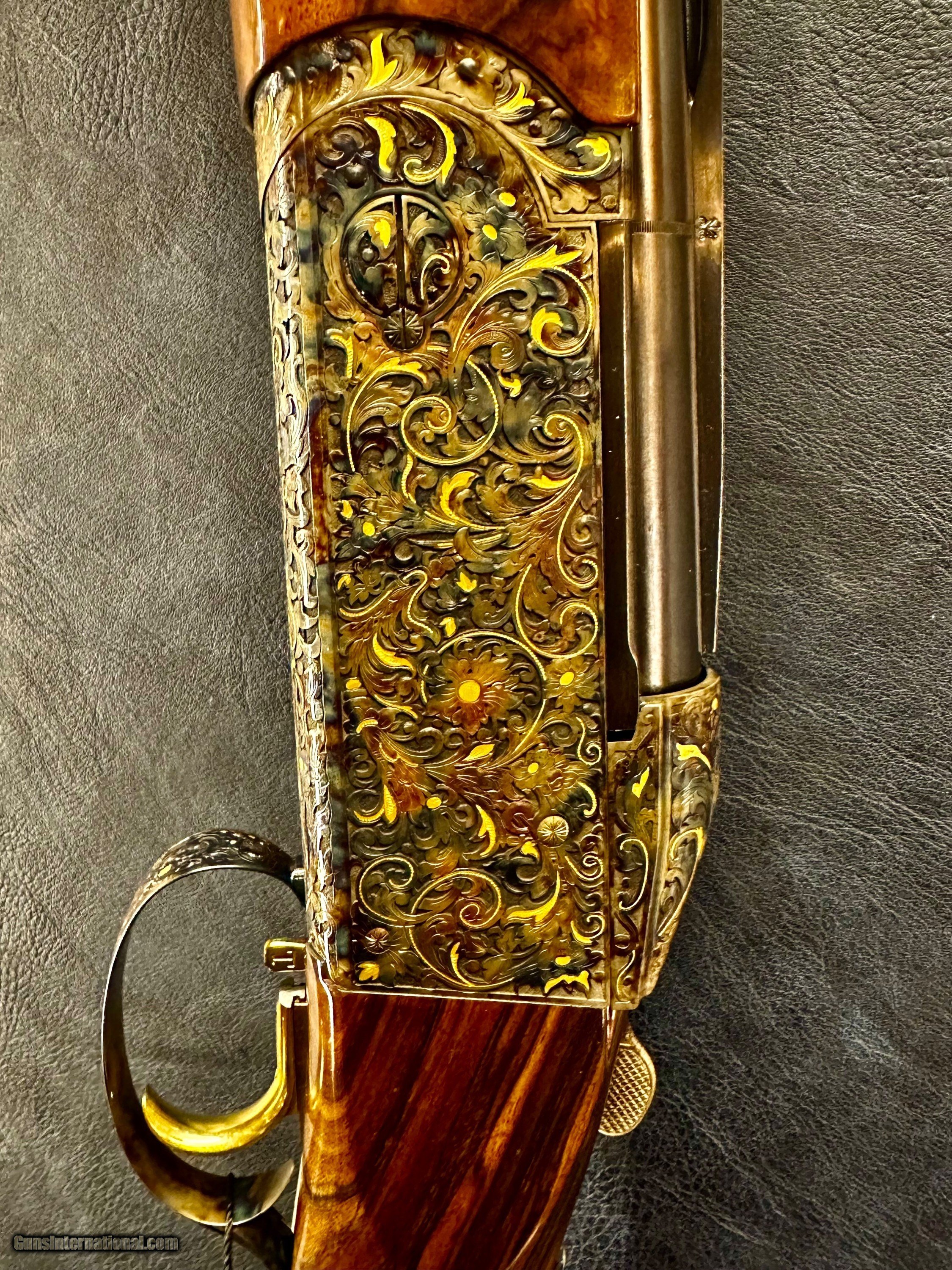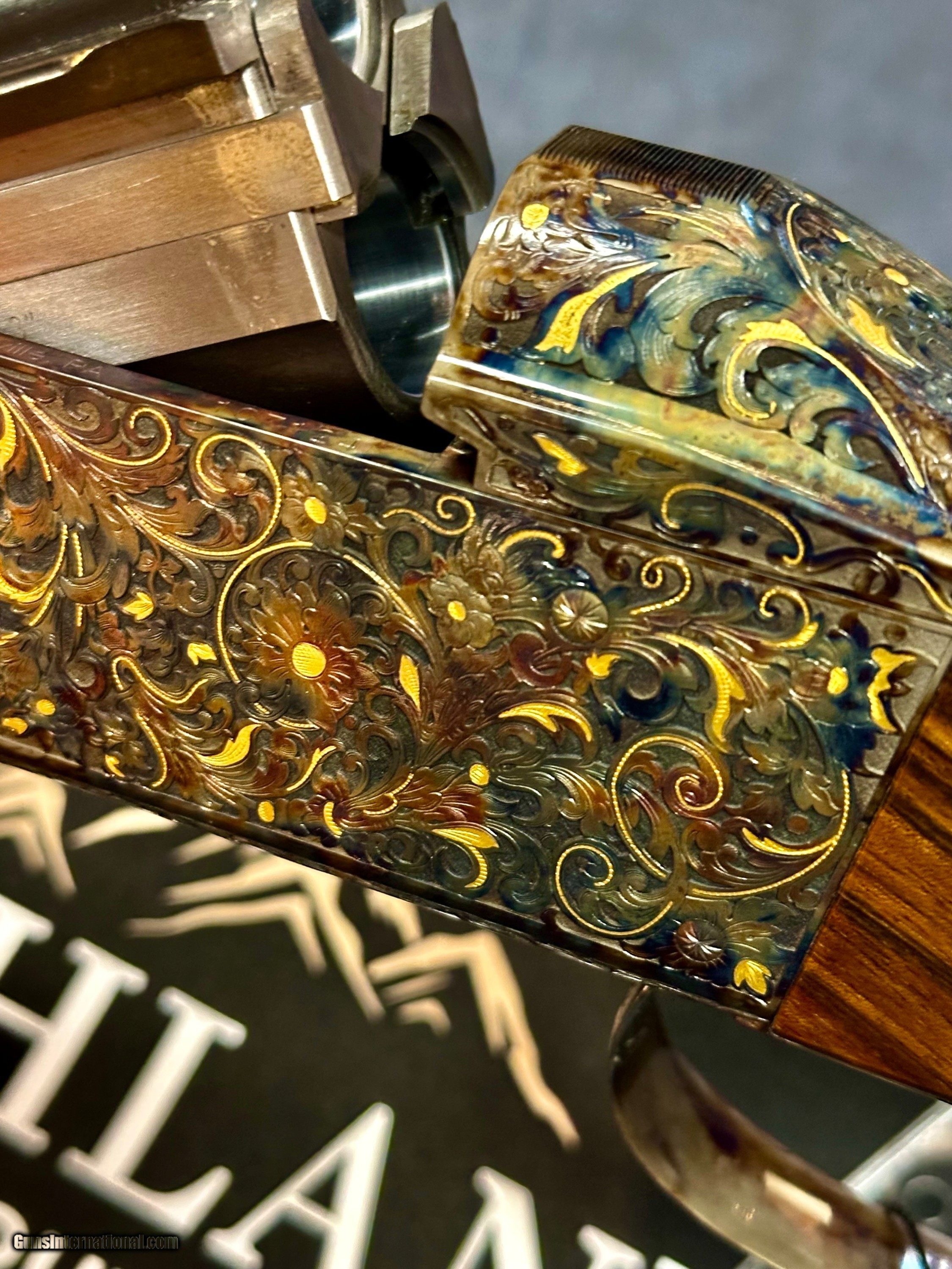 Description: An amazing opportunity to own the best German engineering & Italian engraving. This rare Krieghoff K80 engraved by B&B Bonsi Brothers Fratelli Bonsi in Gardone Val Trompia Italy. 32" fixed choke Parcours. HighlandUSA is a premier Krieghoff Dealer located in Hunt Valley Md. one year warranty included, fully serviced, gun fitting included. Try the gun in our simulator lounge. Highland Custom shop makes stocks / pads / Adjustable Comb / refinishing/ annual service. This K80 was owned by a collector and is in mint condition. Shotgun Gauge: 12 Gauge Manufacturer: Krieghoff Model: K80 Serial Number: 107124 Barrel Length: 32” Bore Info: Beautiful Chambers: Immaculate Ejectors: Strong Condition: Mint Metal Condition: Perfect Wood Condition: Amazing Bore Condition: Clean Barrels: Mint Barrel Type: Parcours Action: O/U Triggers: Mechanical Stock: Standard Stock Cast: Right Fore End: Parcours Butt Pad: Standard LOP: 15” approx Rib: Flat Finish: High gloss Weight: 9lbs Sights: Hi Viz Manufacture Date: 107124 Chokes: Full set Engraving: B&B Fratelli Bonsi Gardone Val Trompia Italy Case: Yes Optic: Hi viz Price: $49,500.00 Shipping: $125.00 Contact Seller |