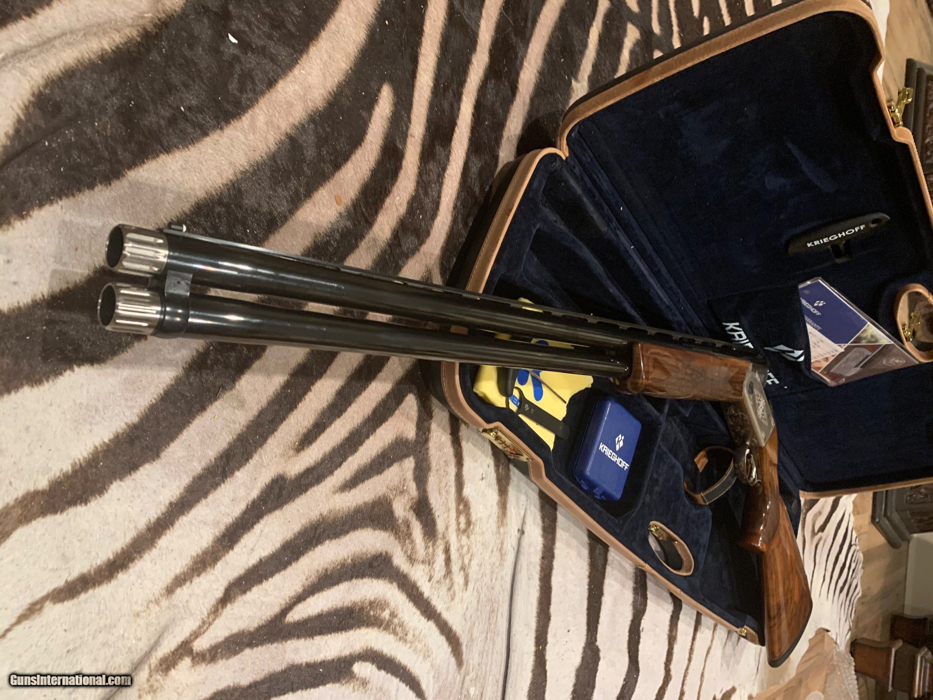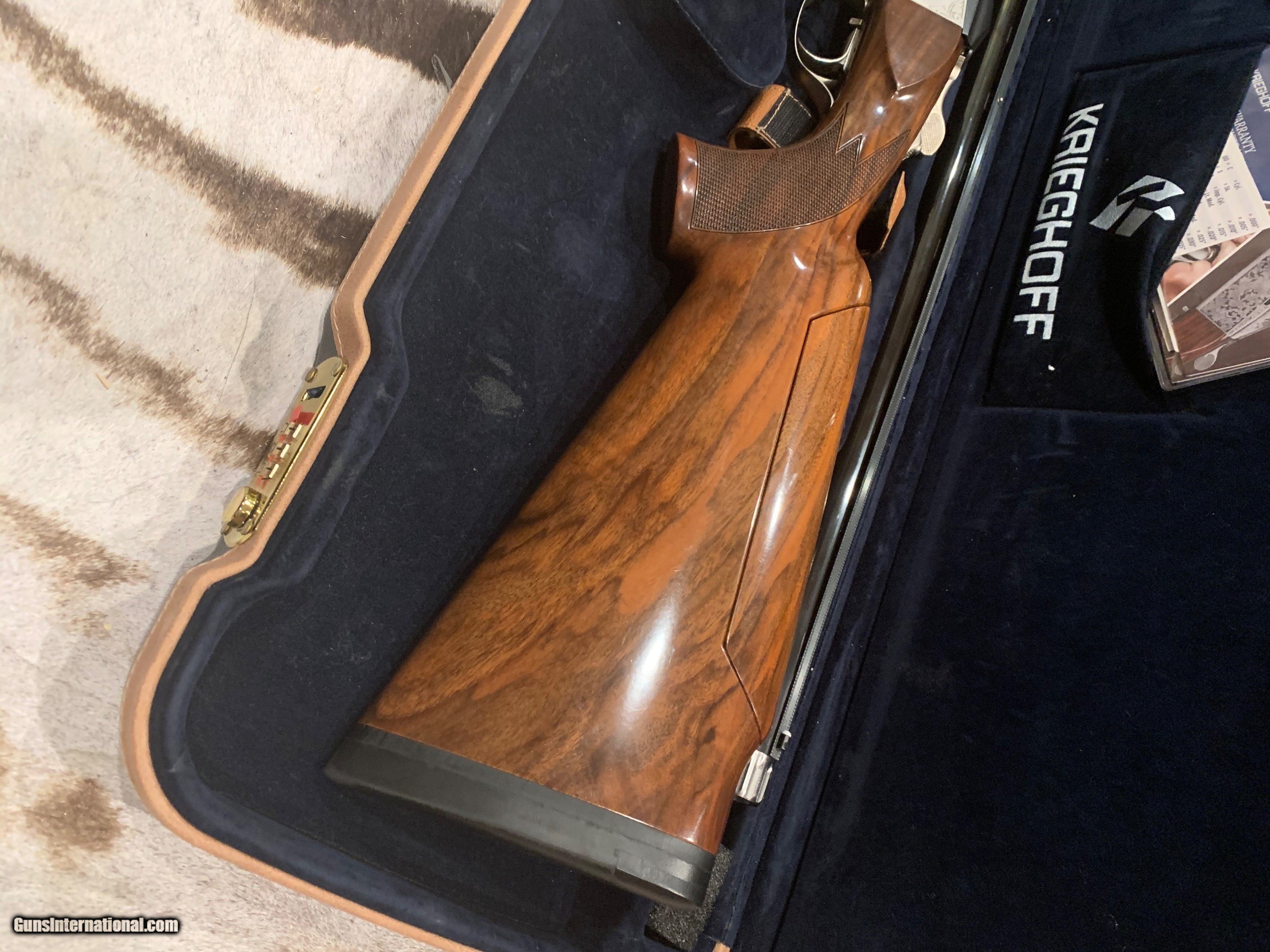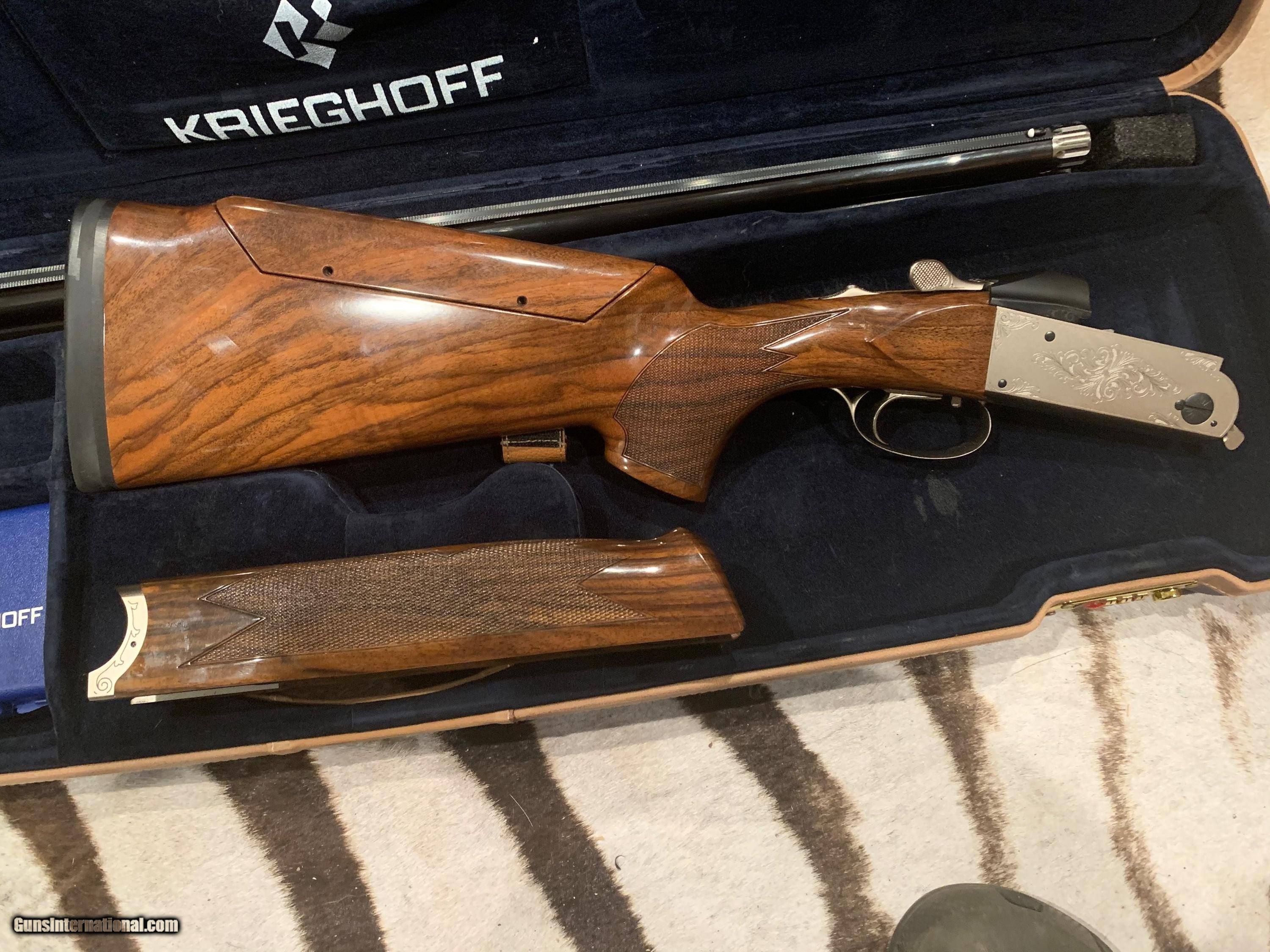 Description: K80 sporting with 30" barrel, adjustable level 2 stock upgrade, five titanium chokes overall condition is 99% cased with accessories. SOLD SOLD Shotgun Gauge: 12 Gauge Manufacturer: Krieghoff Model: K80 Sporting Barrel Length: 30” Condition: 99% Metal Condition: 100% Wood Condition: 99% Bore Condition: 100% Stock Dimensions: Standard Butt Pad: Original Finish: Nickel Chokes: Removable Engraving: Standard Extras: Five titanium chokes Case: Yes Negrini leather trim Item Location: North Carolina |