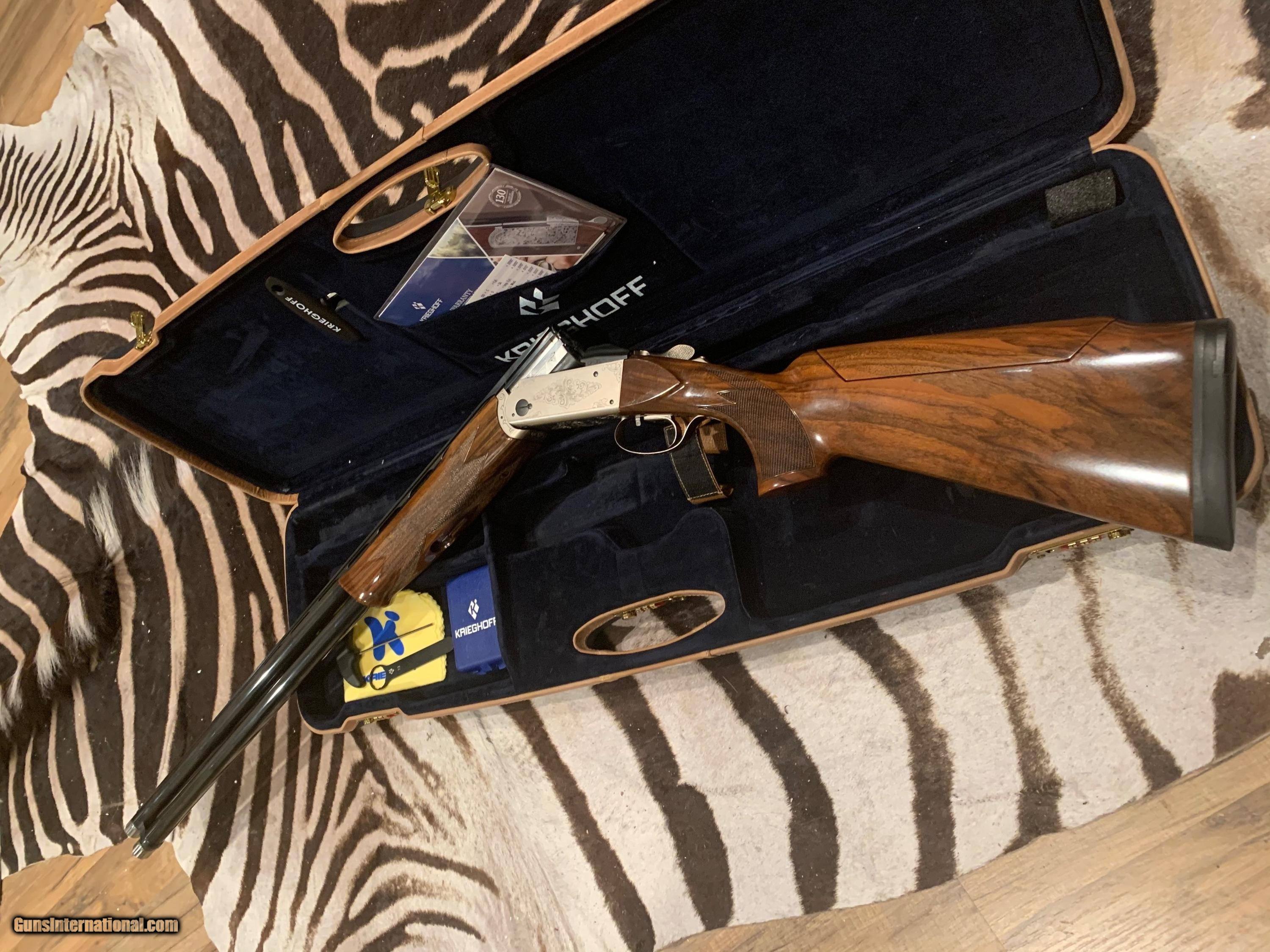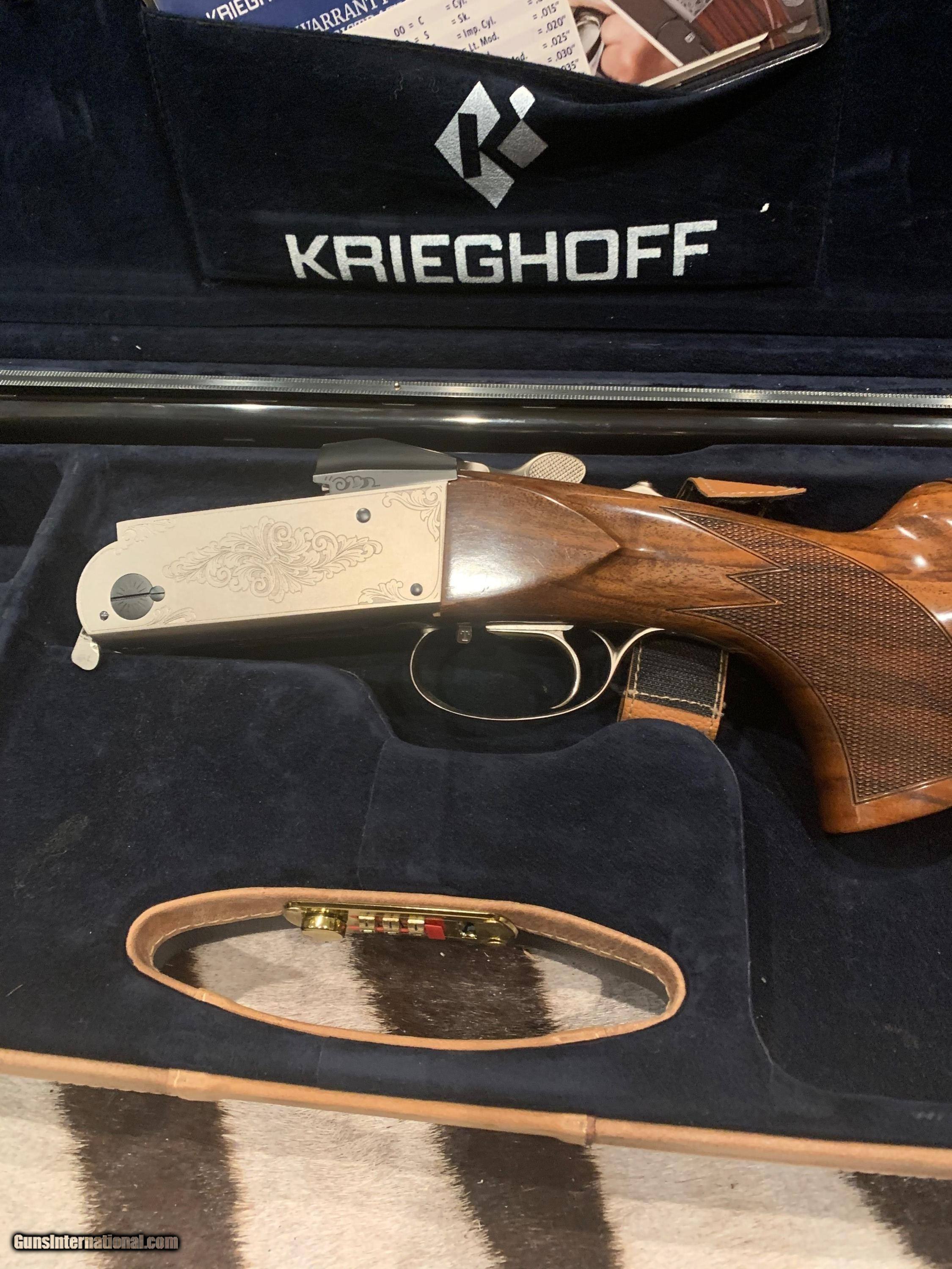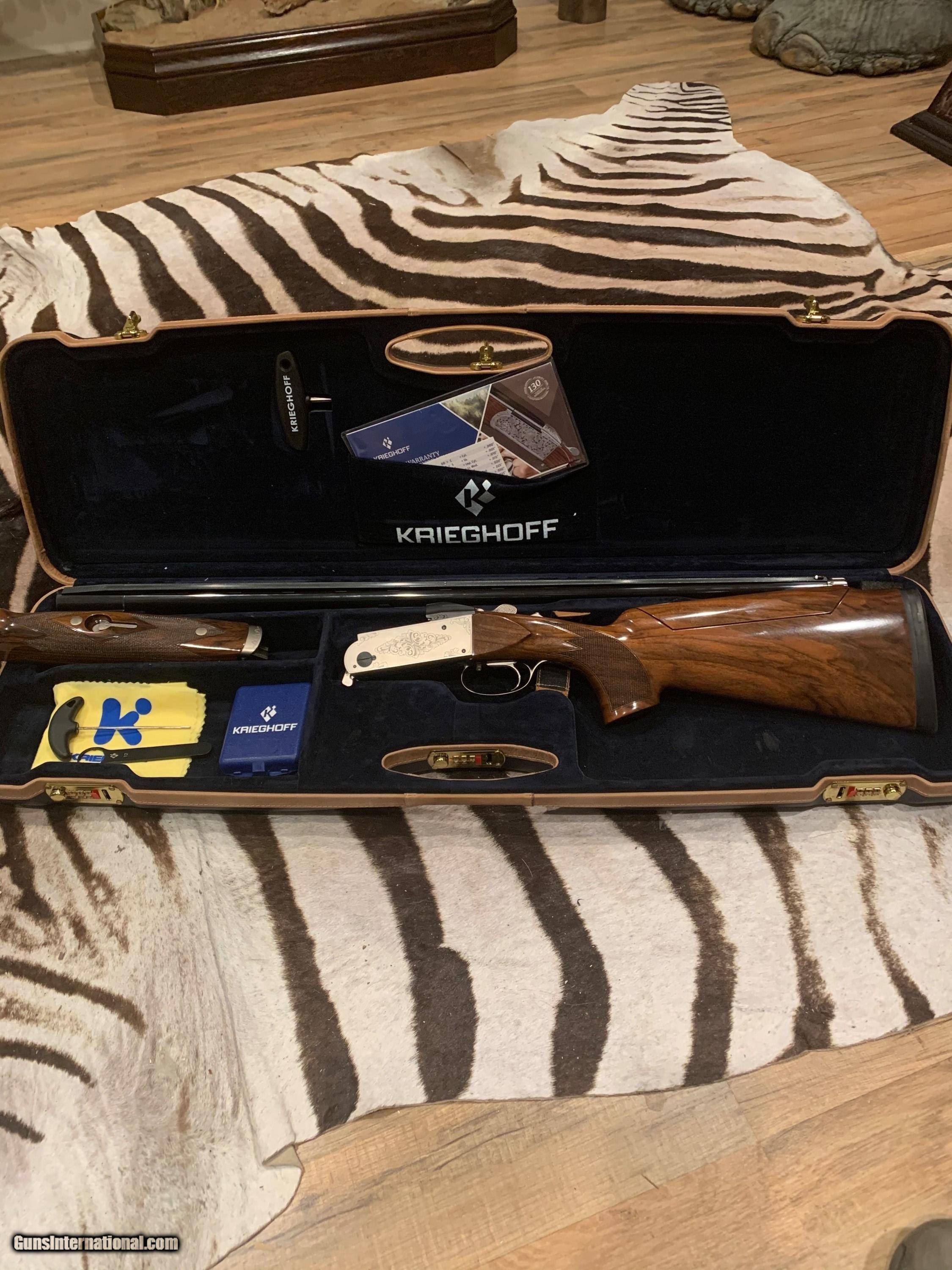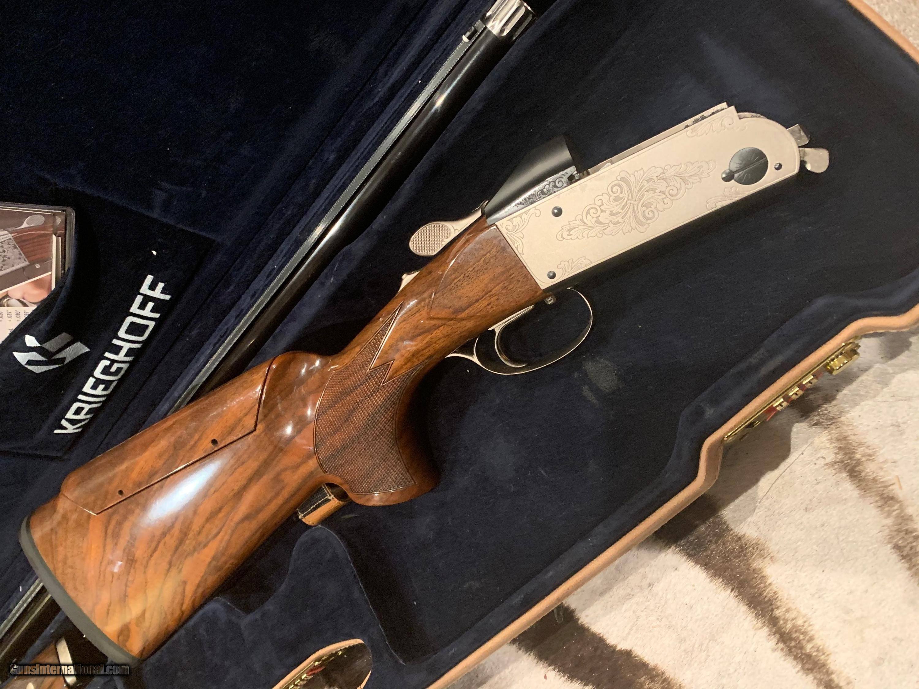 Description: K80 sporting with 30" barrel, adjustable level 2 stock upgrade, five titanium chokes overall condition is 99% cased with accessories. SOLD SOLD Shotgun Gauge: 12 Gauge Manufacturer: Krieghoff Model: K80 Sporting Barrel Length: 30” Condition: 99% Metal Condition: 100% Wood Condition: 99% Bore Condition: 100% Stock Dimensions: Standard Butt Pad: Original Finish: Nickel Chokes: Removable Engraving: Standard Extras: Five titanium chokes Case: Yes Negrini leather trim Item Location: North Carolina |