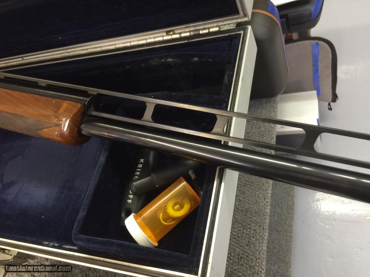 Description: IVE PARTED OUT THE GUN AND SOLD EVERYTHING BUT THE BARREL. THE BARREL CAN BE FIT TO ANY K-80 OR K-32. SEE THE BARREL DESCRIPTION BELOW. BUY THIS ADJUSTABLE UNSINGLE BARREL FOR $1650 delivered. I'm selling a K-80 RT--Removable Trigger--model with a 32 inch unsingle barrel. It has a factory adjustable comb with a counter coil recoil reducing system and an LOP of 14 3/4 inches. The pad is also adjustable. This gun can be made to fit just about everyone! The 32 inch unsingle is Pro-Ported and has Briley thinwall chokes in IM, LF and Full. The removable pull triggers are very nice and crisp. I'd rate the gun iverall at 80% with excellent mechanics and bore. The best buy on thefor a K-80 and my price includes shipping and insurance. SOLD Serial Number: 2138X |