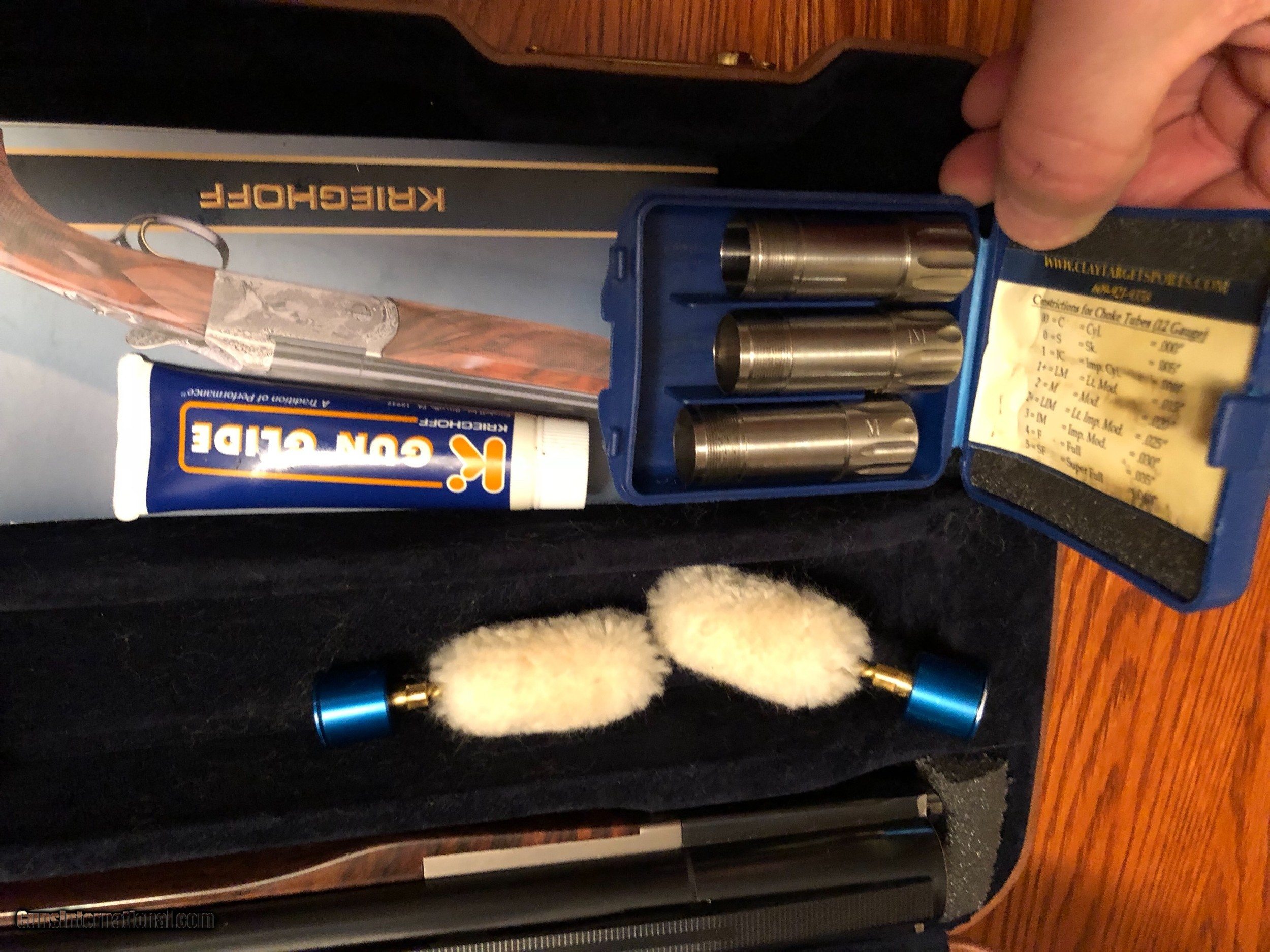 Description: Not even broke in yet! Under 2K rounds. Kreighoff K 80 Nickel Super Scroll 12 ga Sporter. LNIB Comes with Grade 3 wood & adjustable comb. 32” barrels & 5 titanium chokes. This is lightly used gun, with one small handling mark on the forend, has not seen the field. It has been used only for sporting clays. Comes with Negrini factory case, all papers, accessories & original box. It will be shipped to your FFL in the original shipping just like it came from the factory! Don’t miss this chance to own this Like New Gun for a Not New Price! Please call all with any questions or to discuss the purchase. SOLD LOP: 14.75 |