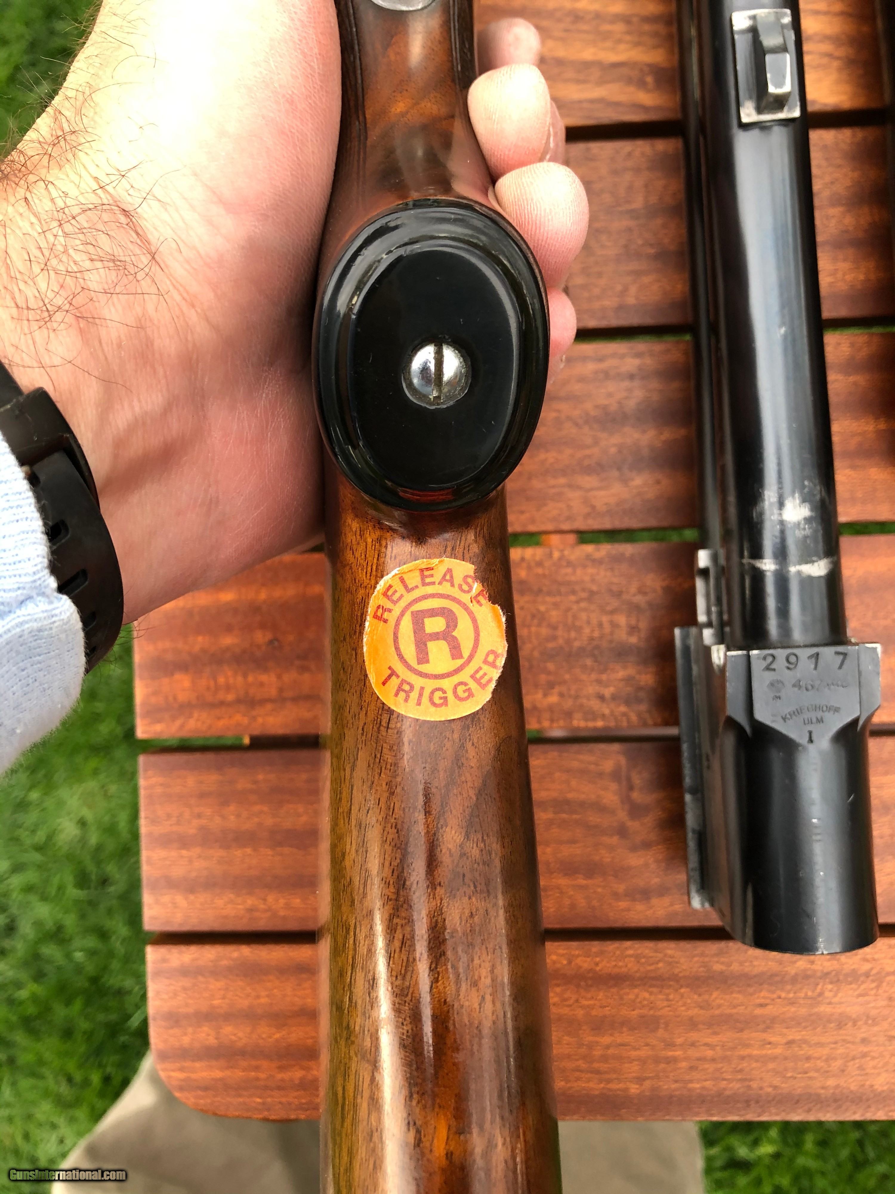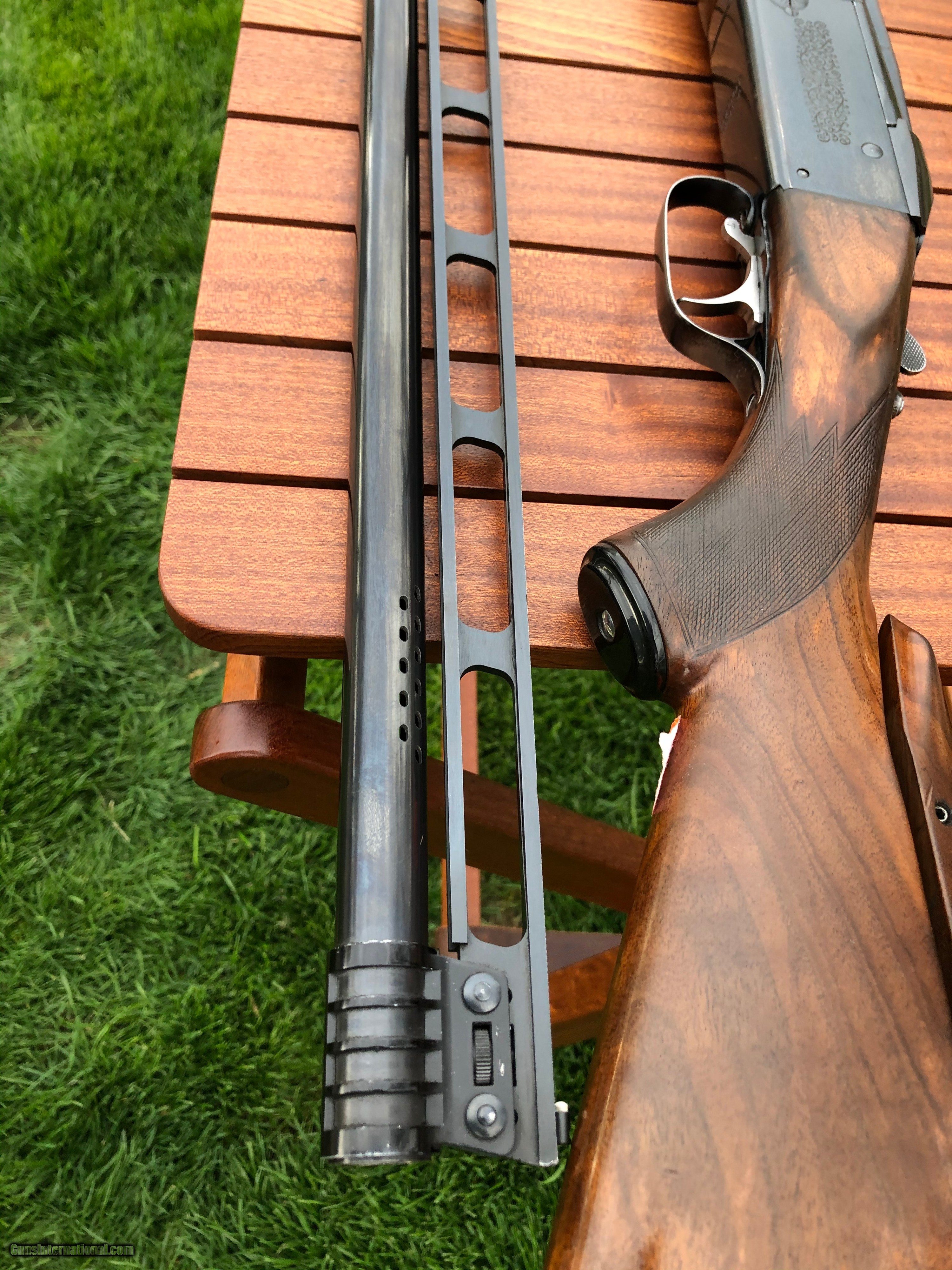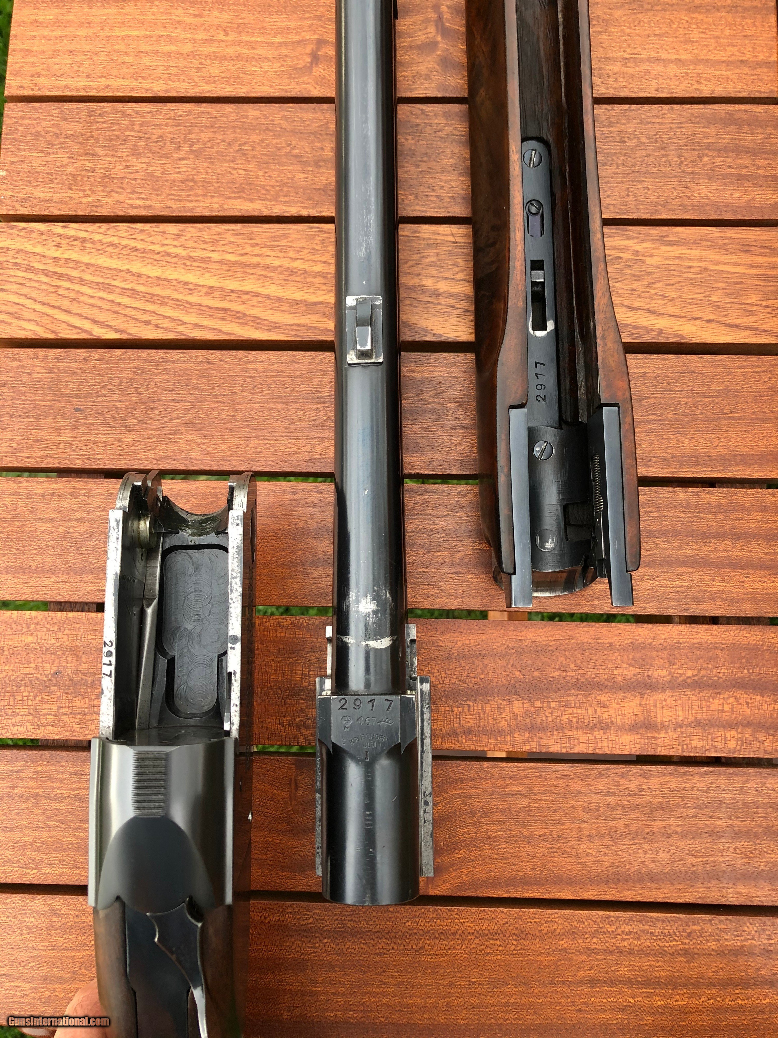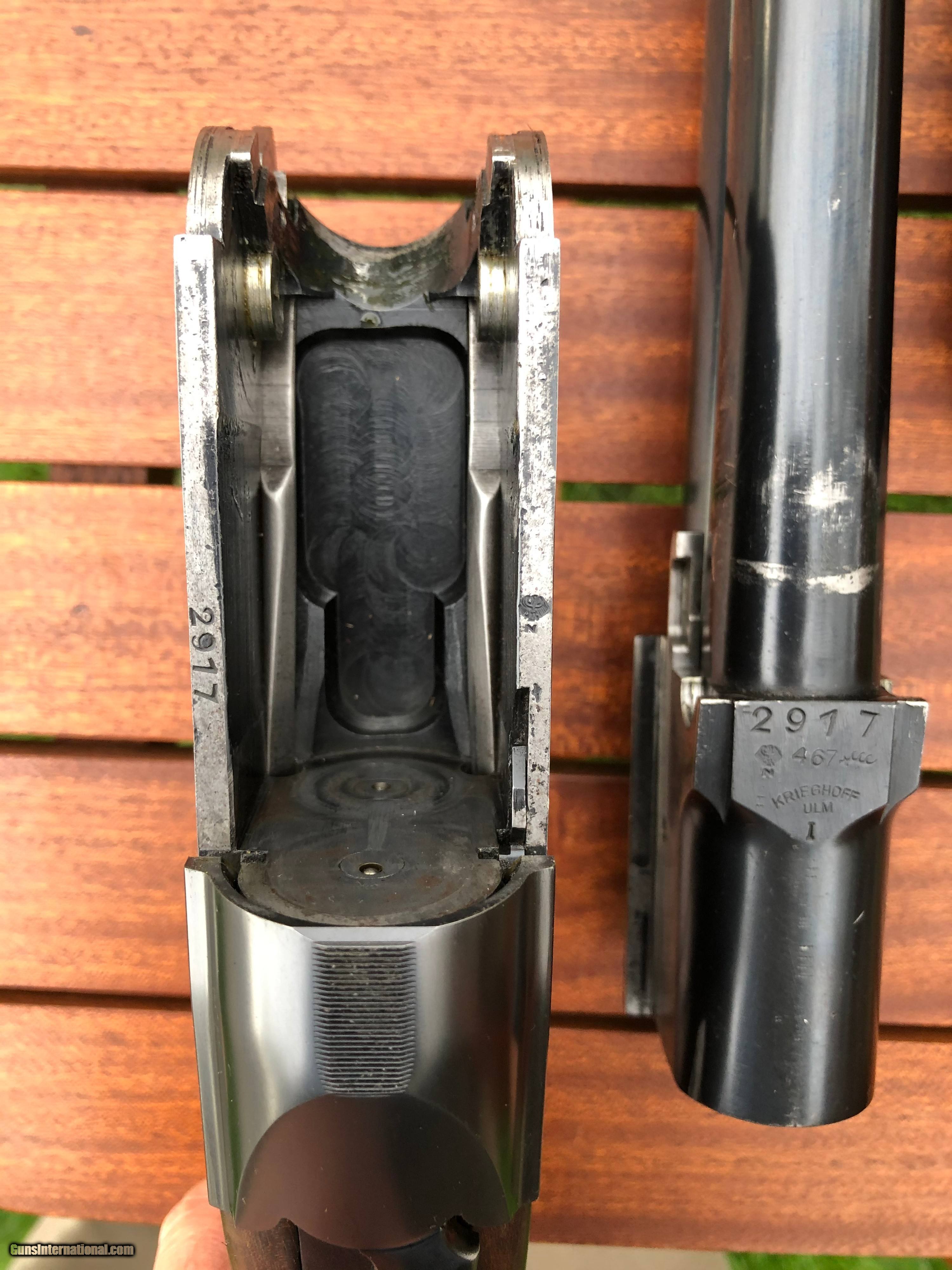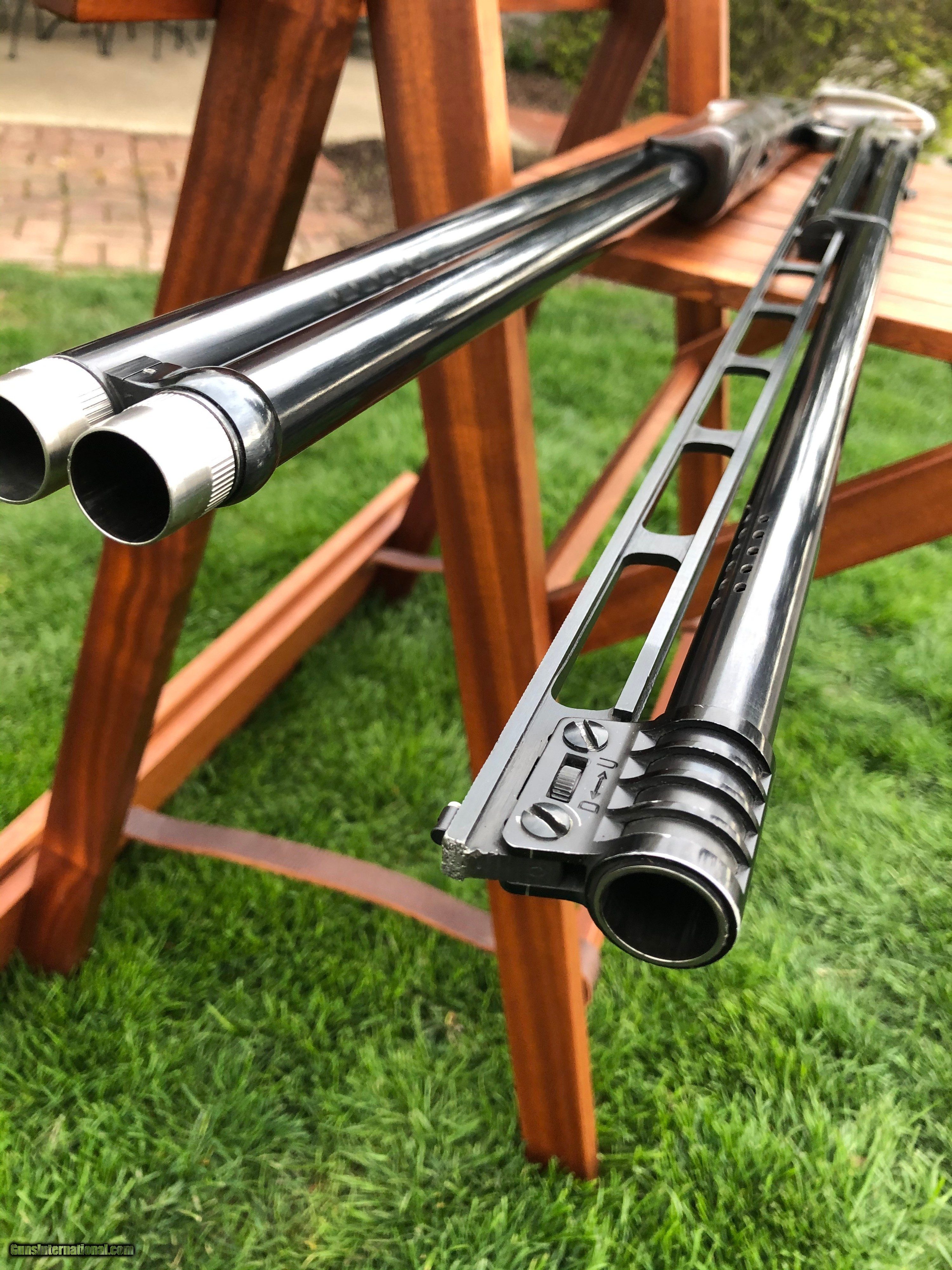 Description: Kreighoff K32 2 Barrel Set. Over under K80 30" ported Barrels with screw in chokes. Comes with 6 chokes- 2 Wright and 4 Briley along with 2 choke wrenches. Unsingle 32" ported Trap full choke and adjustable rib. Blued reciever does show wear. Barrels lock tight with top lever Right of center. RELEASE trigger. Allem Release then pull trigger. Adjustable comb stock and Adjustable LOP Gracoil hardware. Walnut stock is oil finsihed and does show wear. $3800. Shipping $50. to your FFL in continental US states. SOLD |