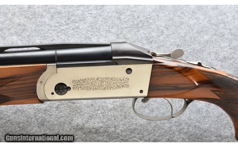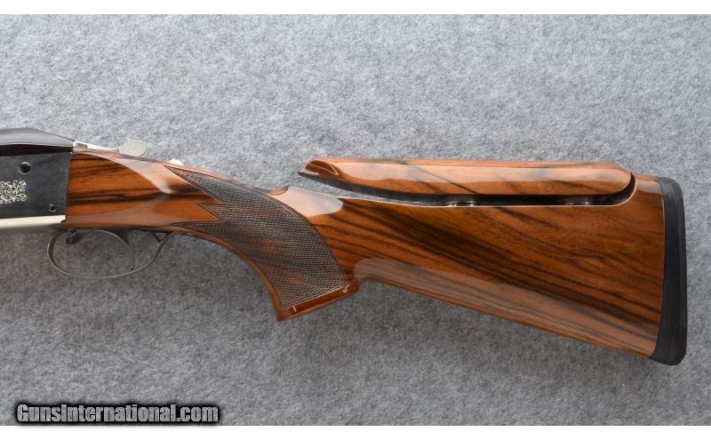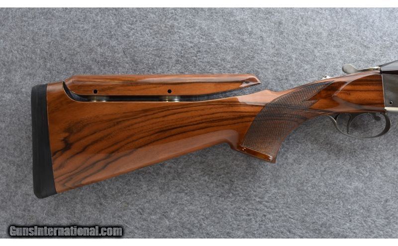 Description: SOLD Caliber Info: 12 ga. Chambers: 2 3/4 Metal Condition: Shows very good factory finish with trivial marks here and there. Wood Condition: Factory finish shows very good condition with minor handling marks. Shows 1/8" crack at upper tang. Also shows a few tiny spots where the finish has begun to flake. Bore Condition: Bright Barrels: 32 Triggers: Single Selective Stock: Adjustable comb. Stock Dimensions: 14 1/2" LOP Fore End: Schnabel w/ Deeley Release Butt Pad: Decelerator Weight: 8 lb. 8 oz. Sights: Front and mid-bead. Chokes: Includes a pair of Briley S-54 tubes: LM & IC. Originally had fixed chokes. Item Location: Post Falls, ID |