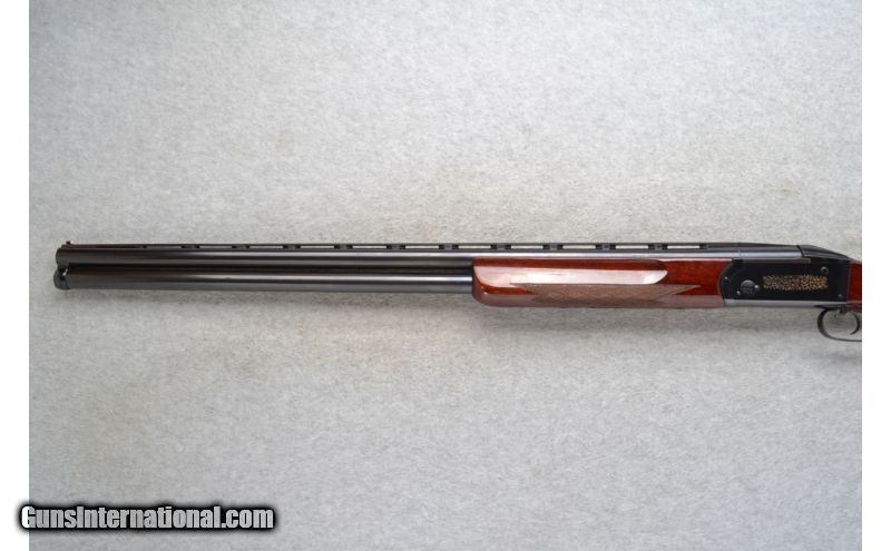Description: This Krieghoff Model 32 is a 12 Ga. over and under shotgun. It has 29.5 inch separated barrels with a top barrel ventilated rib. It comes with 3 inch chambers and fixed Full and Improved Modified choke. It has a checkered walnut Monte Carlo pistol grip stock with a black cap and the forearm has finger grooves. The receiver sides are lightly engraved with golden scroll. With a single trigger the barrel slection lever is in front of the trigger. This gun is in overall good condition. No box or case. SOLD Manufacturer: Made in Germany. Caliber Info: 12 Ga. Chambers: 2 3/4 inch or 3 inch over/under with ejectors. Metal Condition: Good. Has some very minor freckling, minor handling marks and very minor surface spots. Wood Condition: Good. Light handling marks and minor surface spots. Bore Condition: Bright and shiny, some wear present in spots Barrels: 29.5 inch separated barrels with a top barrel ventilated rib. Triggers: Single trigger. Barrel selector lever is in front of the trigger. Stock: Diamond checkered walnut Monte Carlo pistol grip with a black cap. Stock Dimensions: LOP 14 3/8 inches. DAC 1 3/8 inch. DAH 2 1/8 inch. DAMC 1 1/2 inch. Fore End: Diamond checkered walnut with finger grooves. Butt Pad: Pachmayr White Line rubber recoil pad. Weight: 8 lbs. 3 oz. Sights: White bead front. Metal middle bead. Chokes: Fixed Full and IM. Item Location: Gainesville, VA |