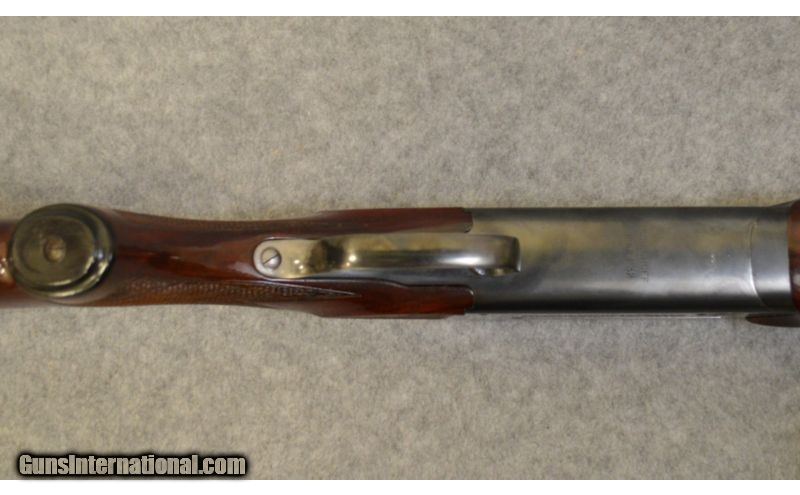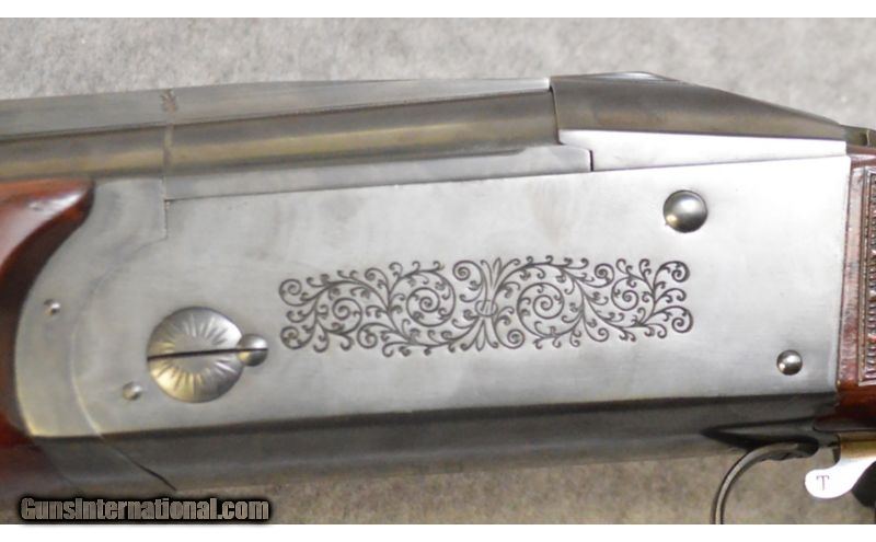 Description: This is an over/under Krieghoff 32 chambered in 12 gauge. It has a 30" blued barrel with a brass bead for a rear sight and a white bead for a front sight. It has a 14.5" LOP and a black rubberized Beretta butt pad (yes Beretta). The stock and fore end are a matching red and glossy walnut with fine checkering on the pistol grip and fore end. The receiver has beautiful engravings which are in excellent shape. The wood is in very good condition with light scuffs and scratches, and the metal is also in very good condition with some minor scratches. The bore is bright and shiny. SOLD Caliber Info: 12 gauge. Chambers: 2 3/4" Over/under with extractor. Metal Condition: Very good with minor scratches. Wood Condition: Very good with minor scratches. Bore Condition: Bright and shiny. Barrels: 30" Blued with a vent rib. Triggers: Single curved. Stock: Red and glossy walnut with fine checkering on the pistol grip with a high trap comb. Stock Dimensions: 14.5" LOP. Fore End: Matching wood and checkering. Butt Pad: Black rubber Beretta butt pad. Weight: 8 lbs. 7 oz. Sights: Brass bead rear, white bead front. Chokes: Full top barrel and improved modified bottom barrel. Item Location: Huntsville, AL |