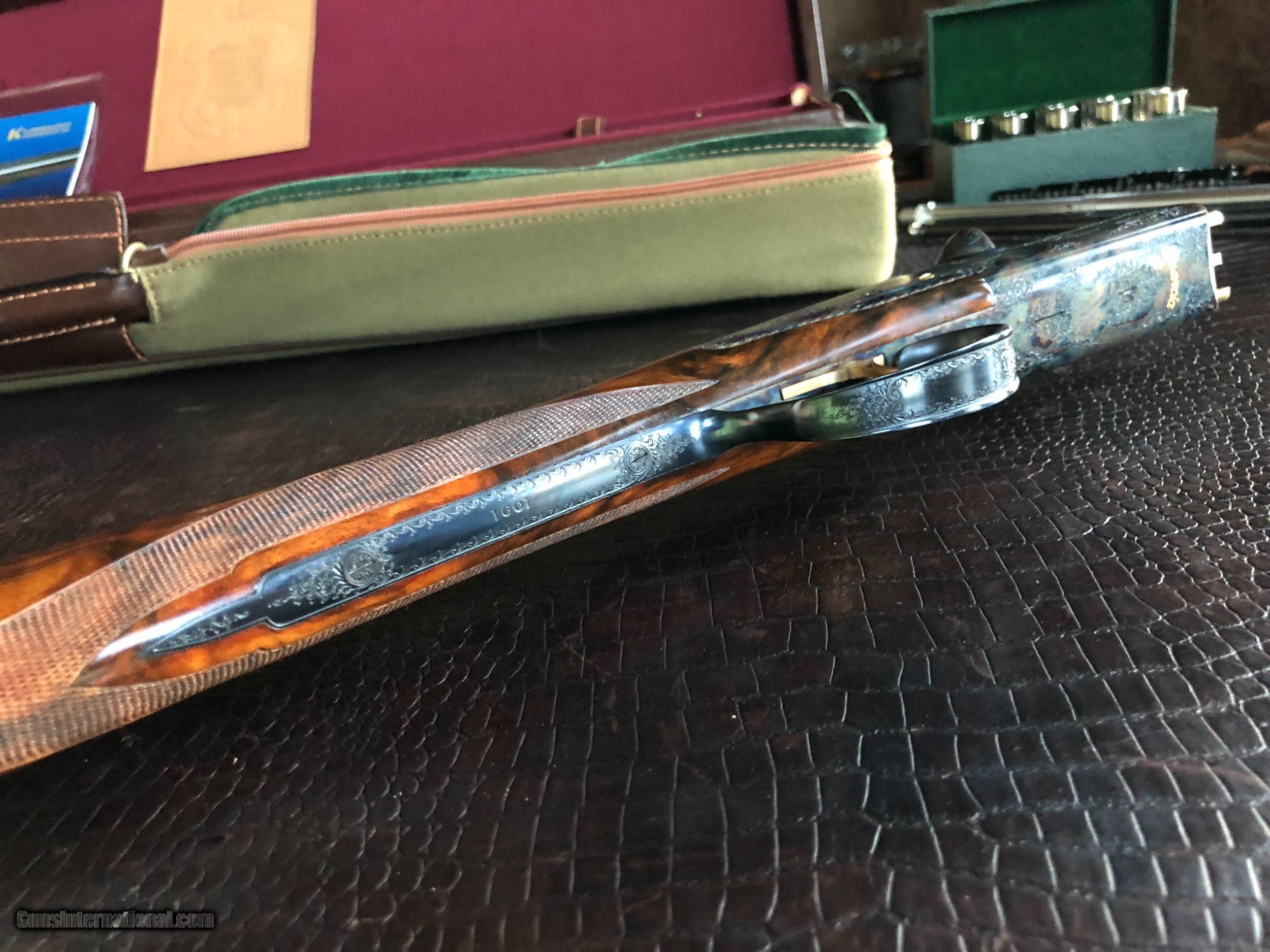 Description: Krieghoff Essencia - 20ga - Straight Grip - Unfired NEW - 28” - IC/Mod - 15 X 1 1/4 X 2 - 6 lbs 4 ozs - SN: 1091 - Makers Case/Accessories - ULTRA FINE WOOD and Craftsmanship! *****SPECIAL NOTE***** 1. I am a reasonable man – I encourage you to make reasonable offers on my listings. At times, there is some flexibility in pricing – other times there is not. I have been collecting guns since 1988 – so I have amassed quite a covey of what I consider to be some very fine guns and some utility guns. Feel free to call me, unlike most gun dealers – I am easy to talk to and will answer the phone on weekends and late evenings (not after 9PM CST). 2. I DO NOT ACCEPT TRADES 3. I do provide LAY-A-WAY plan, please inquire about my terms if you have a need – glad to do it when I can. 4. My collection consists of many guns that were bought from individuals – that means **I BUY GUNS** but I only buy clean used guns with collectibility. In particular - **I BUY SHOTGUNS** 5. ALL OF MY TRANSACTIONS ARE DONE THROUGH MY FFL with whom I have a very solid relationship. If you buy a guns from me, you’ll pay them, they will ship to your FFL of choice and all dealings will be with them post receipt of funds. They are a high end boutique gun dealer in the Texas Hill Country and can accommodate the entire transaction. If you live in Texas and want to drive to see one of my guns, reach out to me to discuss making an appointment with my FFL – I do not show guns at my home nor do I meet guys at public locations for viewings or sales. ALL GUNS ARE LEGALLY TRANSFERRED through my FFL – there are NO EXCEPTIONS. 6. Certified funds are preferred – if you send a personal check for payment the FFL ships one week after receipt. Certified funds payments – shipments are done next business day. NO CREDIT CARD payments are accepted. 7. I encourage you to shoot the guns you buy from me – so during your 3 day inspection – shoot the gun. Make sure it is operating in the manner you expected. If you are not happy – return the gun for a full refund except shipping costs. SOLD |