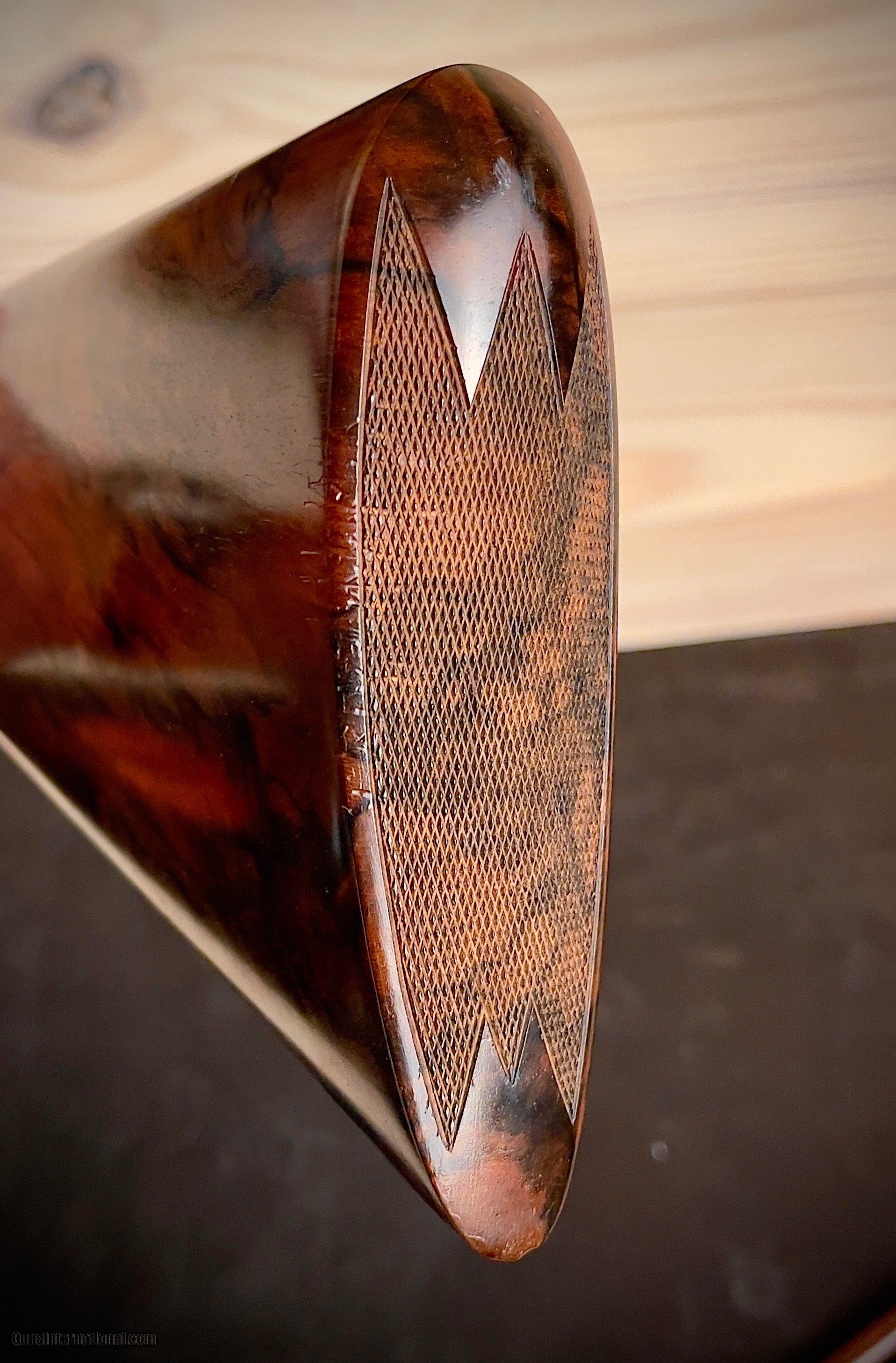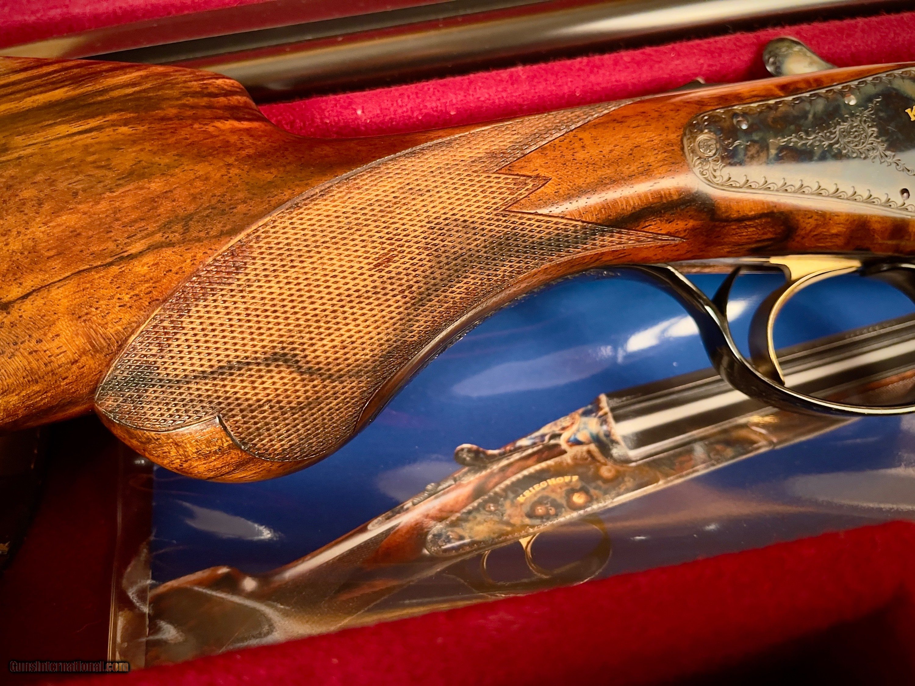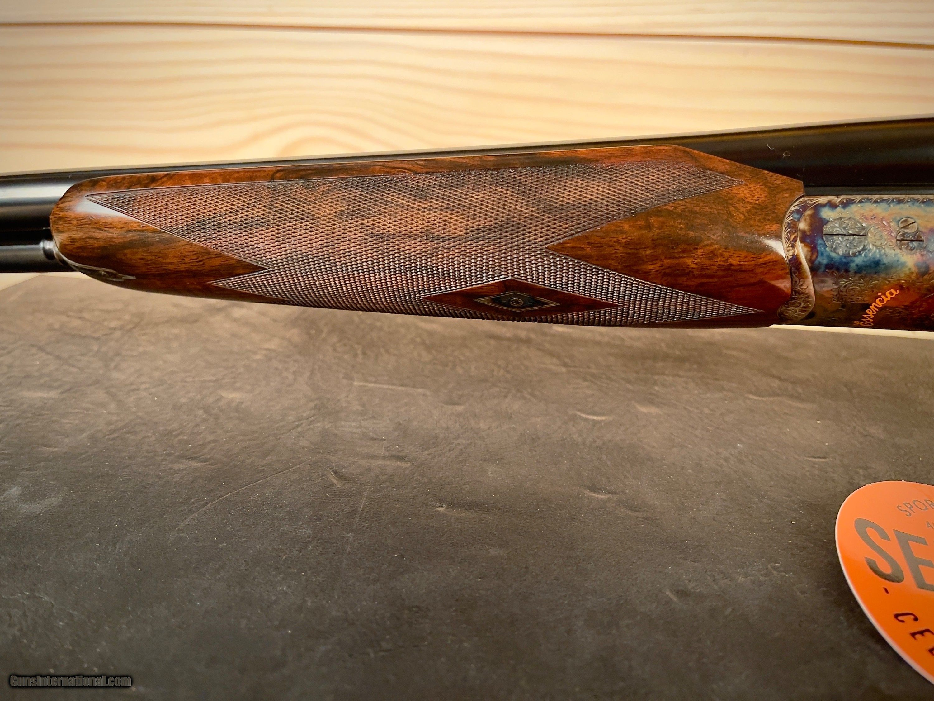 Description: Krieghoff, in partnership with German master gunsmith Jens Ziegenhahn, proudly offers a hand-built shotgun of the highest quality, worthy of the name Krieghoff. Available in 20g, the gun is missing the ornate ‘Continental’ look one might expect from a fourth-generation German gunmaker; instead, its elegant lines more closely resemble traditional British ‘best’ sidelock guns. One hundred percent German-made, the gun was developed to explore opportunities in the upper price segment for a Krieghoff game gun—a significant step for a company that has been a world leader in competition shotguns. The Essencia series’ sidelock shotguns are a highlight for traditionalists, internationally successful. With their pure elegance, first-class craftsmanship and proven technology, these masterpieces of the art of gunmaking fall into the same category as the highly coveted “best” English or Italian guns. The genuine back action sidelocks and triggers are gold plated, while the color-case hardened receiver is engraved with English scrolls. The elegant round body action and the Holland & Holland style ejectors ensure responsiveness and easy handling. Feel free to reach out to discuss further on a price out the door with shipping to a FFL of your choice. Also ask about our new inventory arriving daily. We have high end Krieghoff inventory as well has Rizzini. SOLD Shotgun Gauge: 20 Gauge Manufacturer: Krieghoff Model: Essencia Barrel Length: 30” Bore: Excellent Chambers: 2 3/4 Ejectors: Yes Condition: Excellent Metal Condition: Excellent Wood Condition: Above average / very good Bore Condition: Excellent Barrel Type: SXS Action: Side lock Triggers: Single Stock: POW Stock Drop: 1 1/2 Stock Heel: 2 1/4 Fore End: Beaver Butt Pad: Checkered LOP: 14.75 Finish: Color case harden Chokes: Fixed Choke Left: Mod Choke Right: IC Case: Tweed hard case |