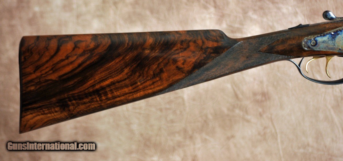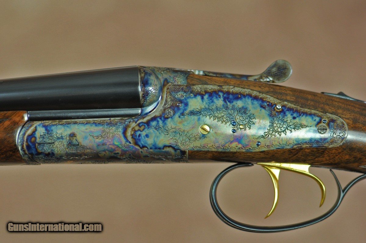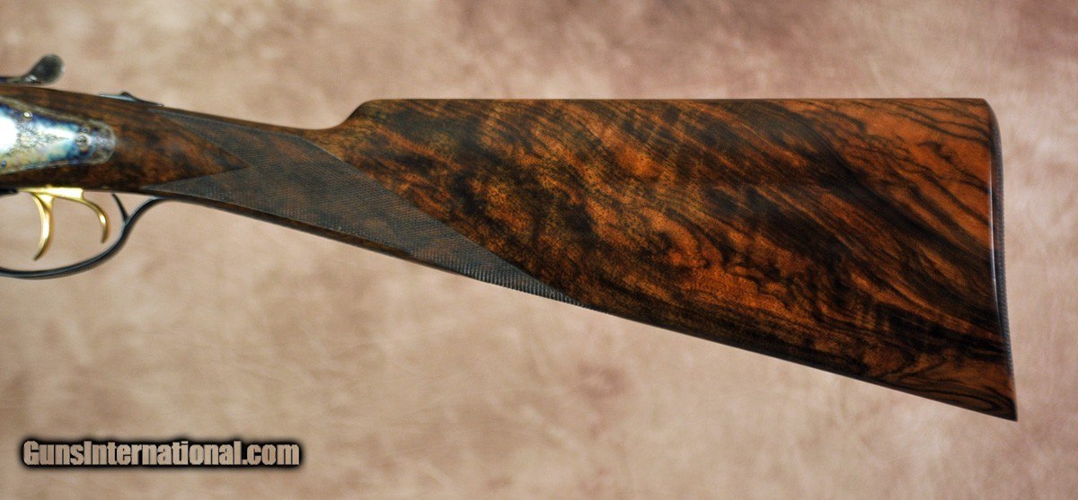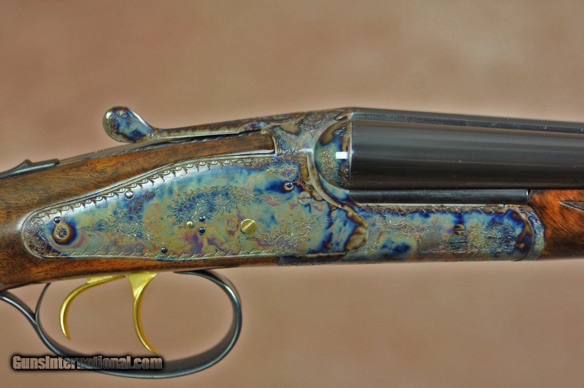 Description: Pre-owned, in excellent condition, Krieghoff Essencia Game gun 28ga. Features factory fixed choke 30" barrels with concave game rib. Case color side lock receiver with signal pins and double triggers. Outstanding right handed English stock with wood checkered butt plate and Splinter forend. Comes in factory presentation case. CONSIGNMENT, ineligible for trades. SOLD Shotgun Gauge: 28 Gauge |
