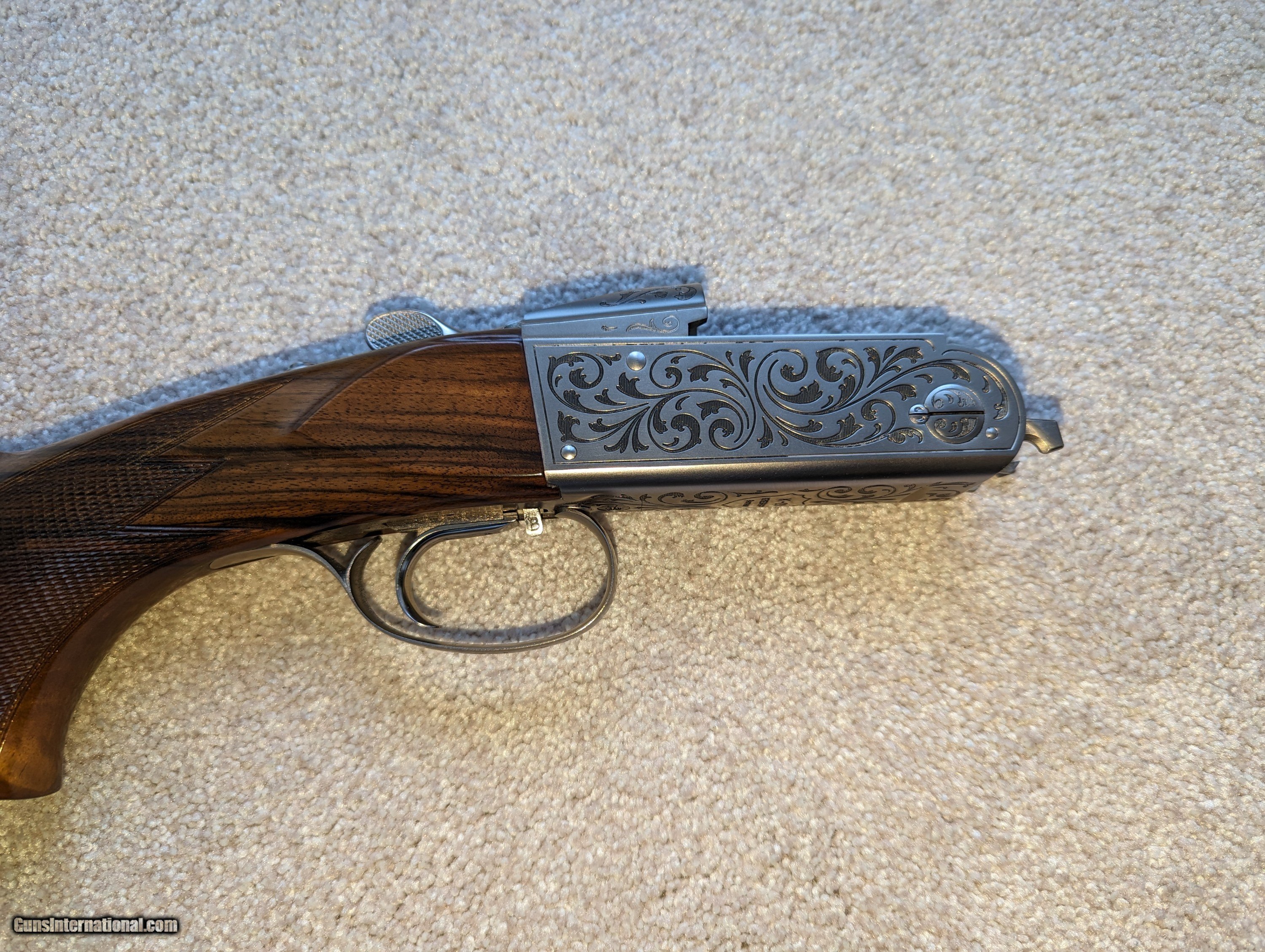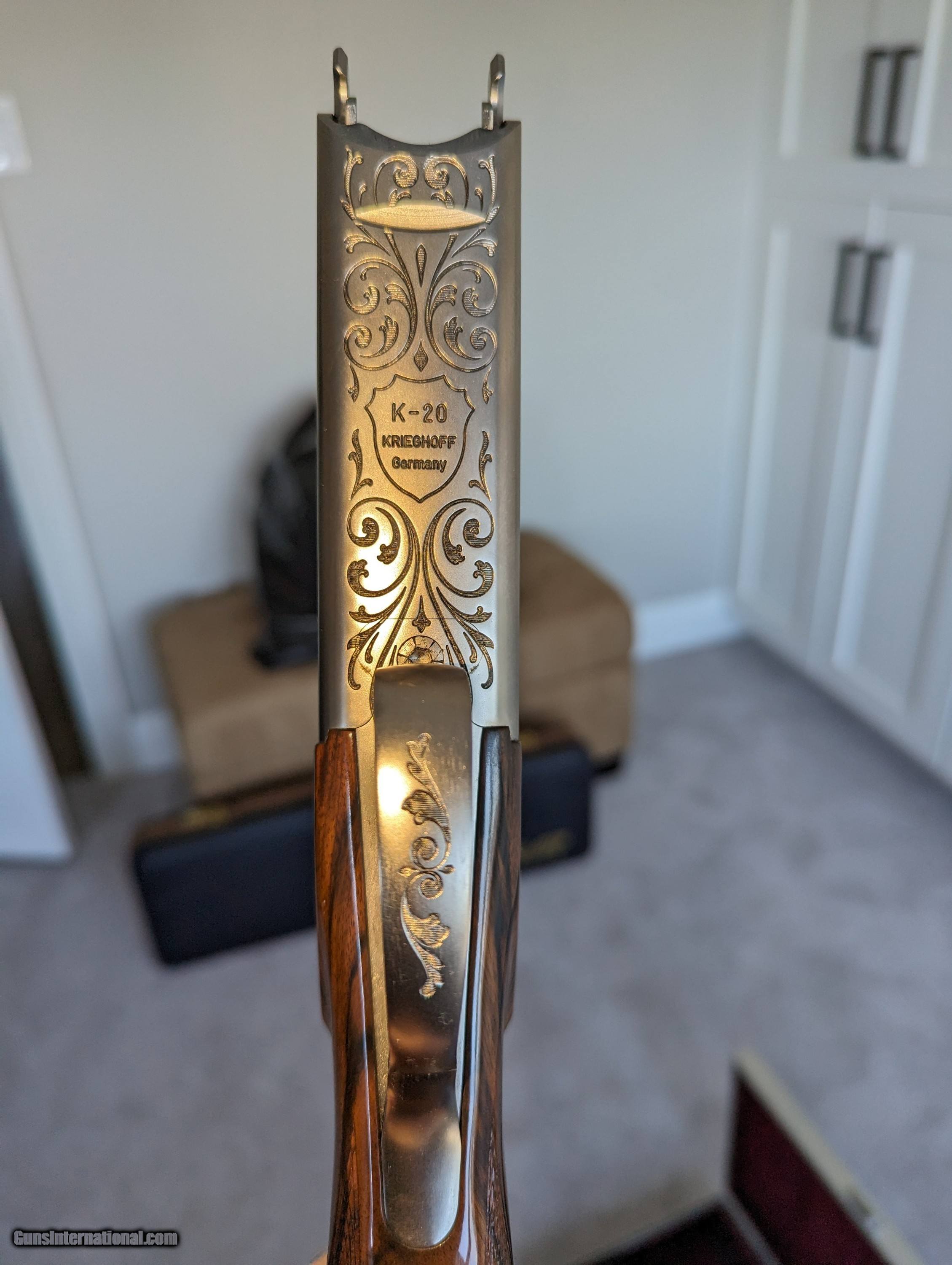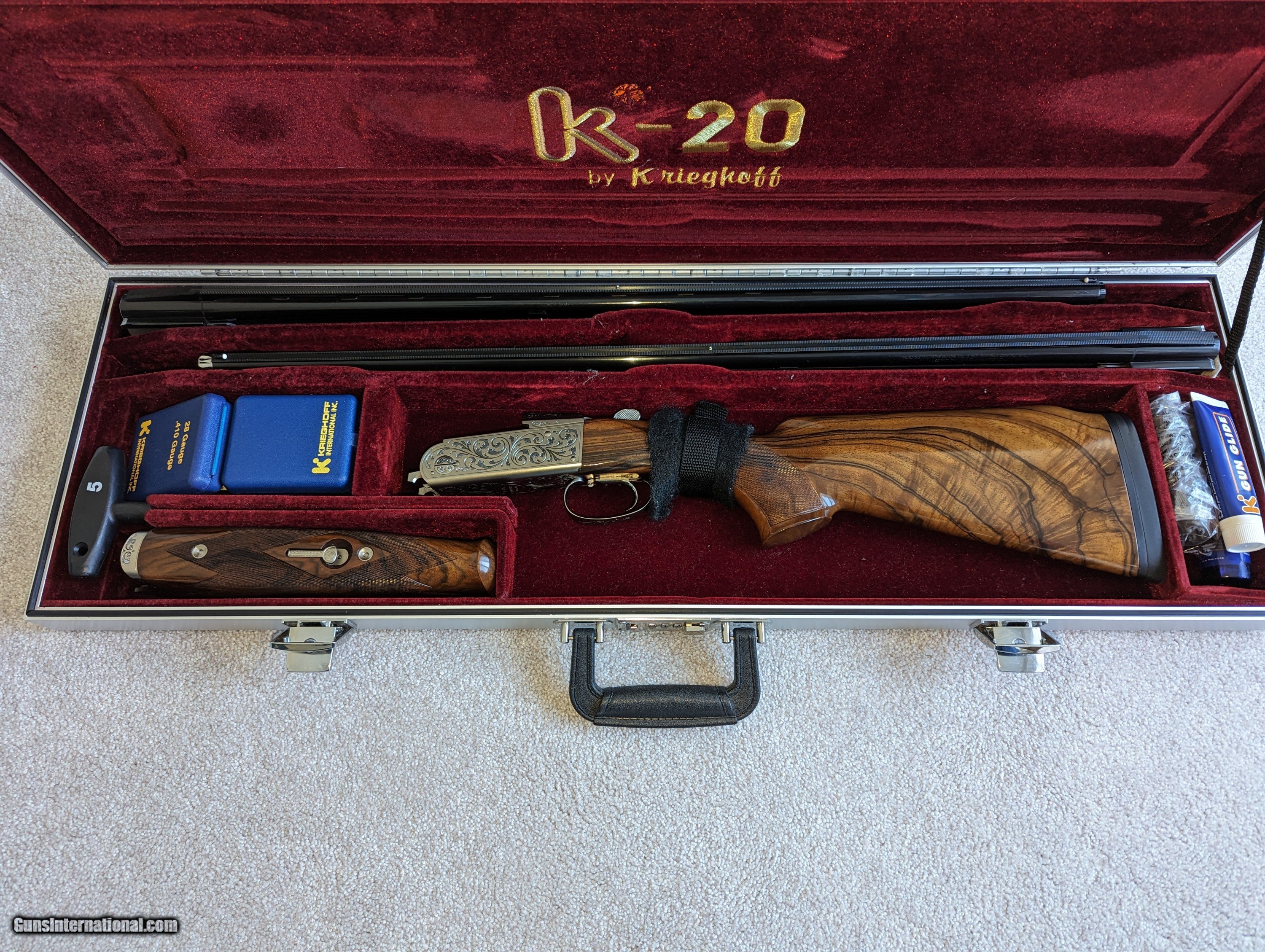 Description: Beautifull K20 20/28 gauge two barrel set for sale. - Super Standard engraving - Factory upgraded wood (cat004) - 30" barrels - Full set of chokes for each gauge - shot very little (hardly used) - as new condition SOLD Shotgun Gauge: 20 Gauge, 28 Gauge Manufacturer: Krieghoff Model: K20 Condition: Excellent++ Engraving: Super Standard |