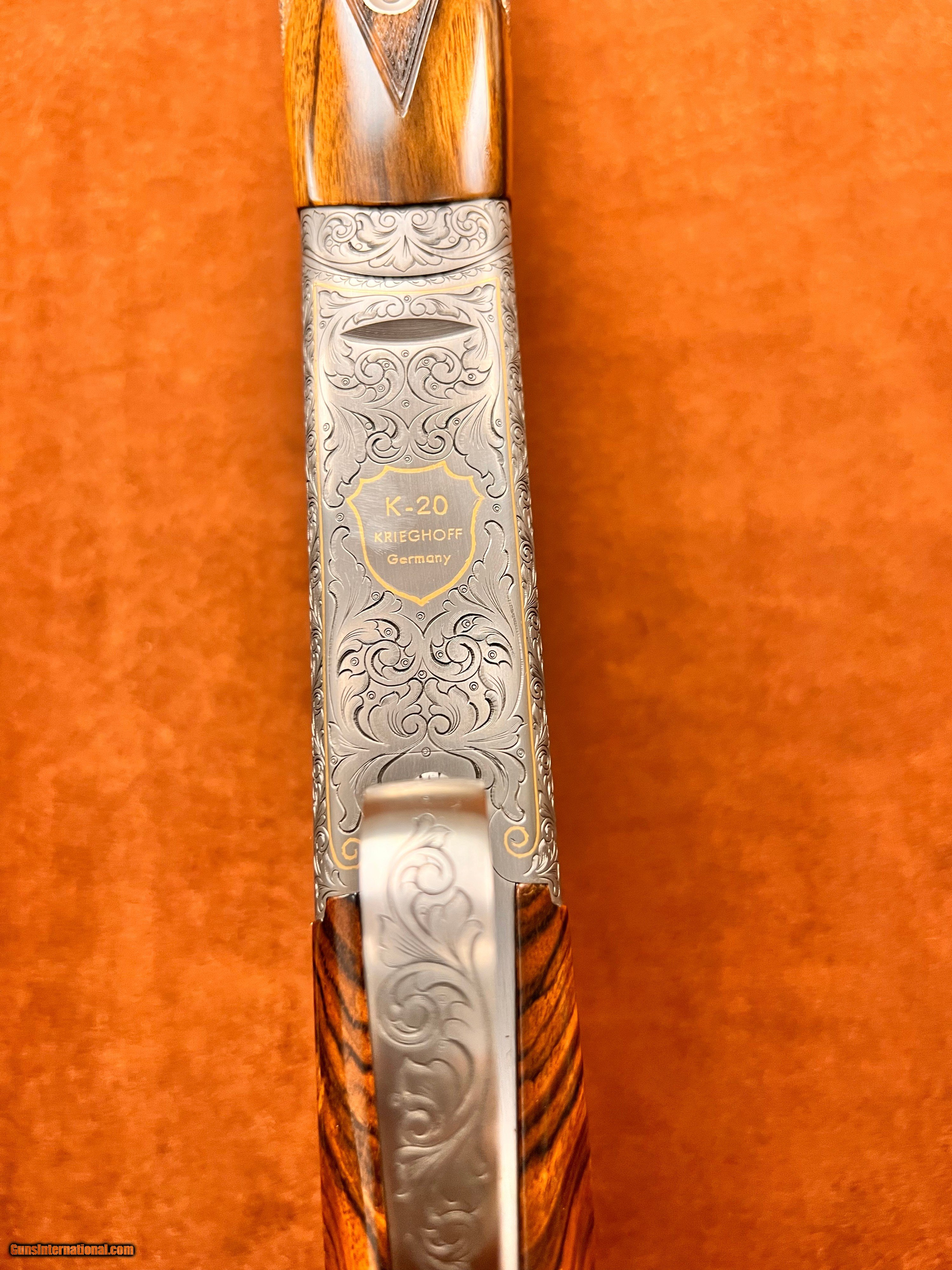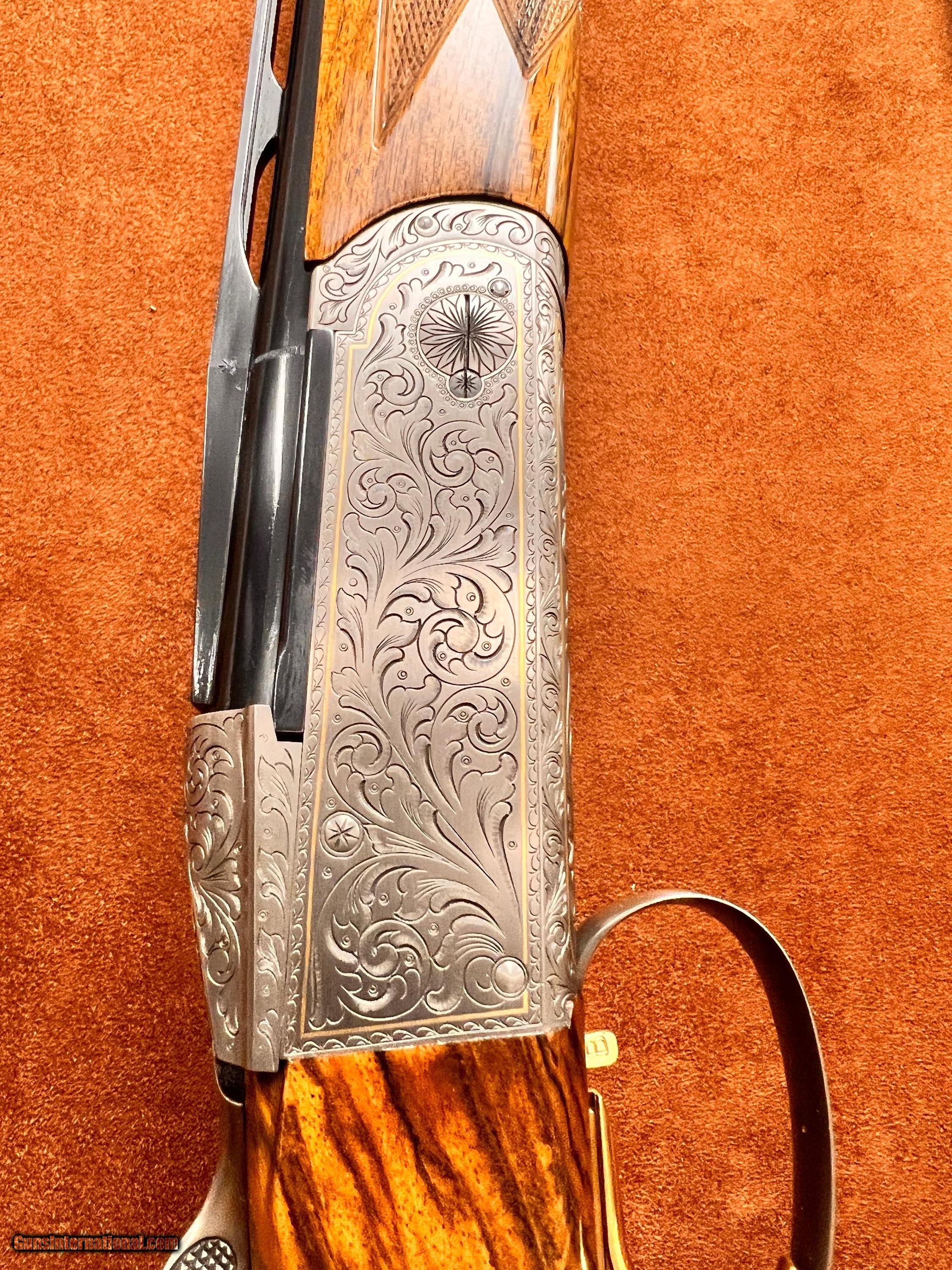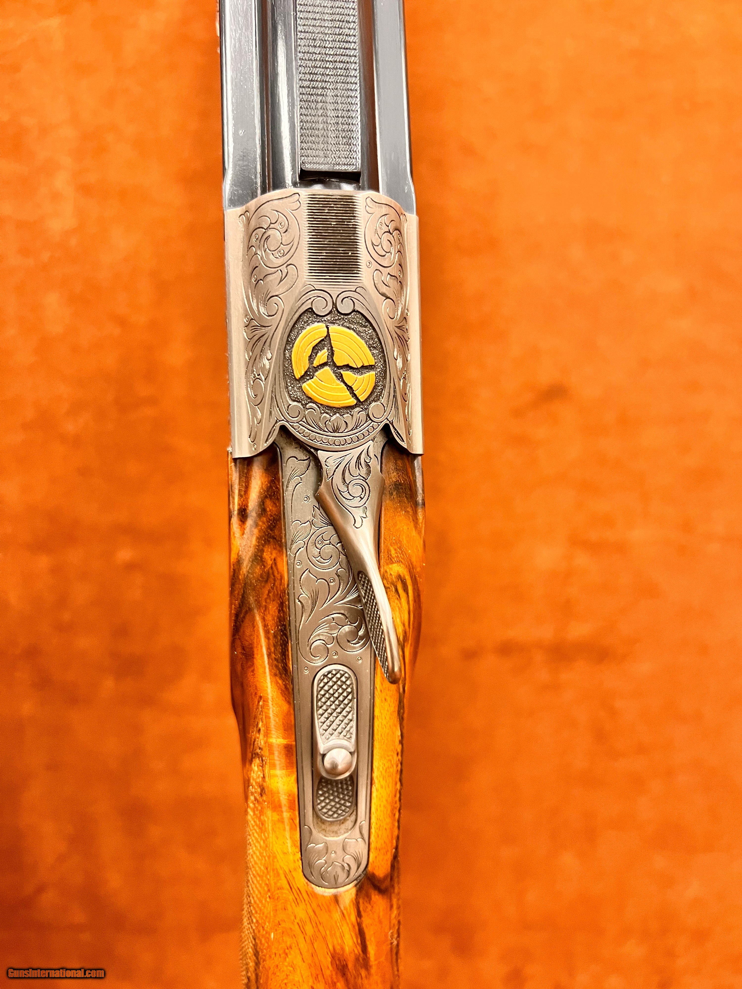 Description: JUST IN AT ROYAL SPORTING ARMS Krieghoff K20 Superscroll Gold 3 barrel set. Features 20ga, 28ga, and .410 factory choke tubed lively 32” barrels with 10mm x 6mm ramp taper ribs. Receiver features Gold Superscroll engraving showing highly detailed acanthous leaves and scroll beautifully adorned with 24kt gold borders by Master Engraver Kathrine Nonn. Highly figured Grade 3 right handed Sporting stock with Schnabel forend. Comes with Full Set of choke tubes for each barrel! Delivered in Highly desirable Americase travel case. This is the full package and at only 27,800 if you’re a competition shooter looking to upgrade your kit this is just the ticket but without paying the price of admission! This K-20 is a gun to own to shoot and to love making absolute puffballs out on the clays course and carrying beautifully out in the field! To purchase call us today -954-394-5134- replacement cost near $40,000! SOLD |