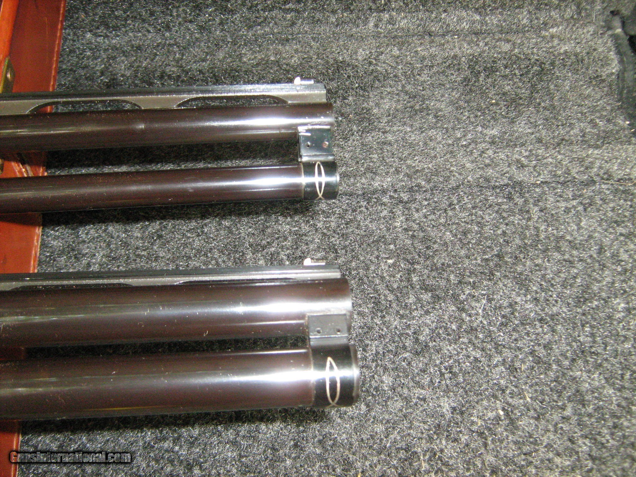Description: Offered for sale is a Krieghoff K-32 "Custom Crown Grade" four barrel skeet set. All four barrels are choked skeet/skeet. The set is in excellent condition with all numbers matching with the serial number range being 65XX. The set has had less then 125 rounds fired following a Krieghoff service visit. The set also sports a custom stock and forend, made of the finest English Walnut., and a unique checkeering pattern both on stock and forend. The stock is adjustable for length of pull. Included but not pictured is a Custom Krieghoff/Americase, with protective cordura covering, housing all four barrels and action comfortably and securely. Please take notice that all four barrels are engraved at the muzzle and the breach. Offered at $11,600.00 plus $165.00 to your FFL Dealer. Payment by certified bank check or personal check. The set will not be shipped until funds are actually in my account. SOLD Shotgun Gauge: 12 Gauge, 20 Gauge, 28 Gauge, .410 Gauge Manufacturer: Krieghoff Model: K-32 Crown Grade, four barrel skeet set Serial Number: 65xx Barrel Length: 28 Condition: 98% Metal Condition: As new Wood Condition: As new Bore Condition: bright and shinny Barrels: 28" O/U Action: O/U Triggers: single selective Stock: Skeet Stock Comb: 1 3/8 LOP: 13 3/4" to 14 3/4" adjustable Case: Factory four barrel case |