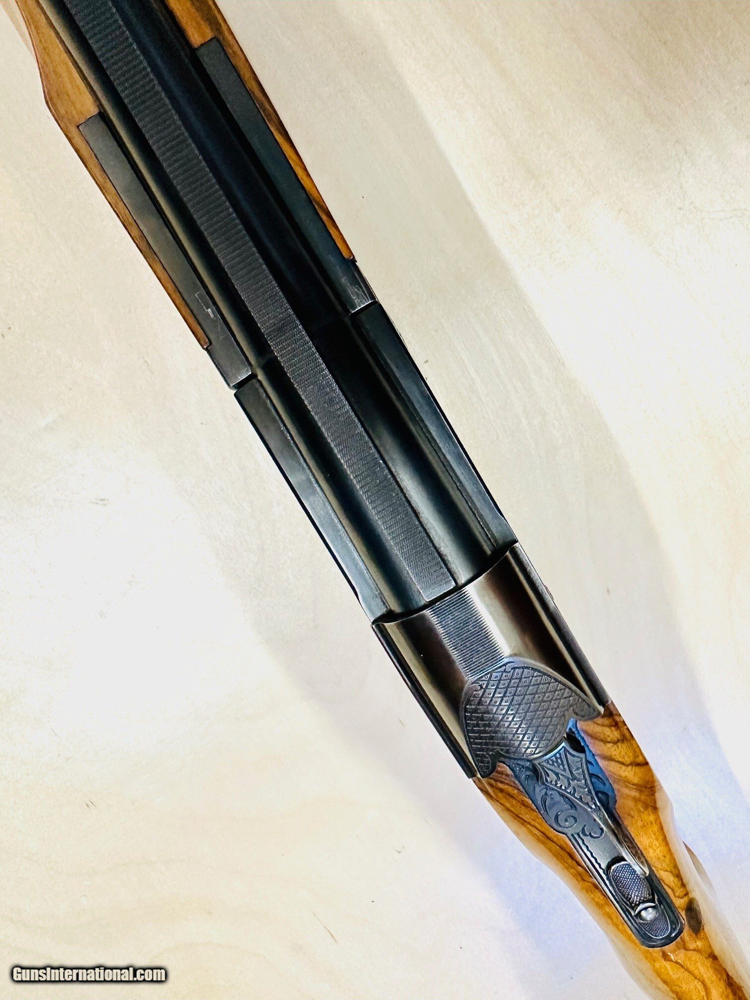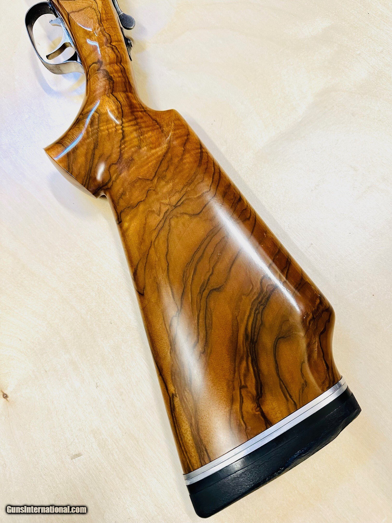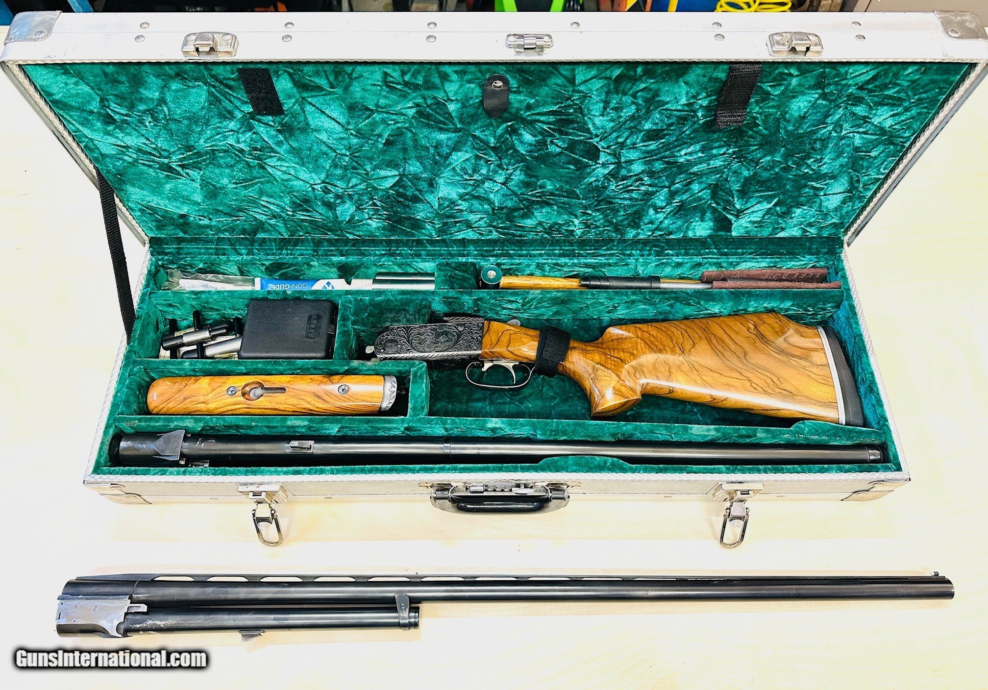 Description: BEAUTIFUL 1969 KRIEGHOFF K-32 SAN REMO 2 BARREL SET. 30" O/U AND 34" SINGLE BARREL. 2 SK, IC, LMOD, IMOD & FULL CHOKES BRILEY LIGHTWEIGHT TUBES WITH STRAIGHT RIFLING, WITH 12 SKEET CHOKES CLARO WALNUT STOCK SET BY WENIG. STOCK HAS A SLIGHT LEFT CAST AND PALM SWELL. NO CHEKERING. ADJUSTABLE BUTT PAD. NASCO CASE. SELLING MY BELOVED 1969 VINTAGE K-32 BECAUSE I CAN NO LONGER HANDLE IT WITH A TORN ROTATOR CUFF. I'VE OWNED THIS GUN FOR MORE THAN 30 YEARS AND THE WOOD WAS HAND PICKED AS A GIFT FROM MY WIFE FOR GETTING HER PREGNANT, THE O/U BARREL IS A REPLACEMENT THAT HAS HAD THE SERIAL NUMBER RESTAMPED TO MATCH. THE NEW BARREL AND TUBES WERE REFITTED BY A MASTER KRIEGHOFF GUNSMITH. THE TOP 20 GA TUBE REQUIRED SO MUCH MATERIAL REMOVED THAT THE EJECTOR NEEDS TO BE HAND INSTALLED, AS IT WON'T STAY IN THE GROVES. THE NASCO LOCK LATCH HAD TO BE CUT BECAUSE ONE OF MY SKEET SQUAD MEMBERS WAS AN ASSHOLE! LAST SERVICED BY KRIEGHOFF IN 2013, BUT I DON'T SHOOT MUCH, AS I STOPPED COMPETING IN THE EARLY 2000s. $7700.00 PLUS SHIPPING TO YOUR FFL. C/C ACCEPTED WITH 3% FEE A 20 GAUGE 28 INCH SKEET/SKEET BARREL IS AVAILABLE FOR AN ADDITIONAL $2300.00 PHOTOS AVAILABLE UPON REQUEST Shotgun Gauge: 12 Gauge Manufacturer: KRIEGHOFF Model: K-32 SAN REMO Serial Number: 4240 Barrel Length: 30 & 34 Bore Info: 12 GAUGE Ejectors: YES Condition: VERY GOOD Metal Condition: VERY GOOD Wood Condition: VERY GOOD/EXCELLENT Bore Condition: EXCELLENT Barrel Type: O/U Action: OVER UNDER Stock: WENIG Stock Cast: LEFT LOP: 14 1/4 Finish: BLUE Weight: 8 LBS 8 OZ Manufacture Date: 1969 Chokes: 18 TOTAL Engraving: YES Extras: BRILEY TUBES Case: NASCO Item Location: Arizona Price: $7,700.00 Contact Seller |